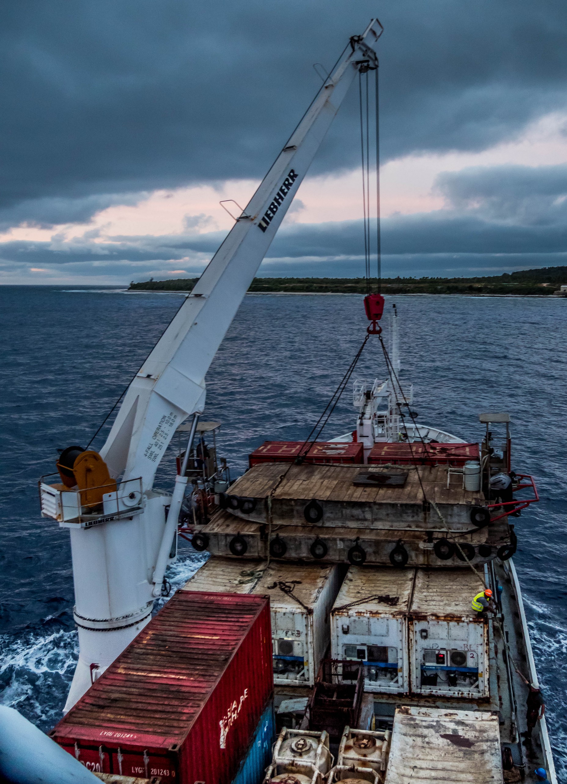 C’est pas qu’il me fait de l’oeil ce Tuha’a Pae IV, mais quasi 😀 Sans compter qu’à la vue des quelques taches de rouilles sur les conteneurs, j’ai l’impression qu’ils doivent avoir d’innombrables histoires à raconter 🙂