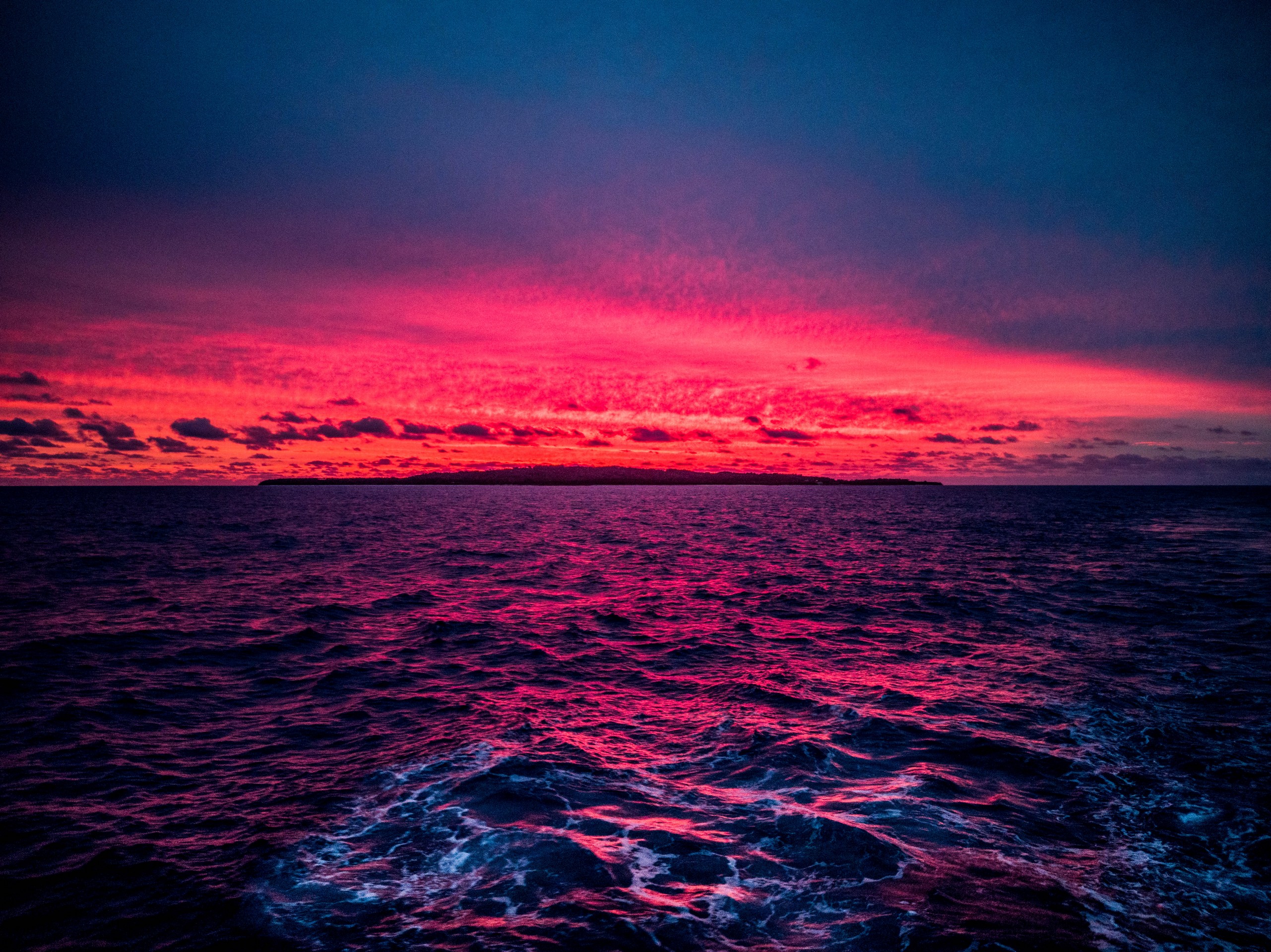 Mais Rimatara fera en sorte que cette brève rencontre restera toujours dans ma mémoire. Alors que je remonte avec mon ordi le bras, le soleil n’avait pas dit son dernier mot ! Par quelques petits trous dans les nuages, il lance ses rayons qui semblent partir de derrière l’île, lui donnant une aura mercurochrome qui éclaire l’océan devenu violet.