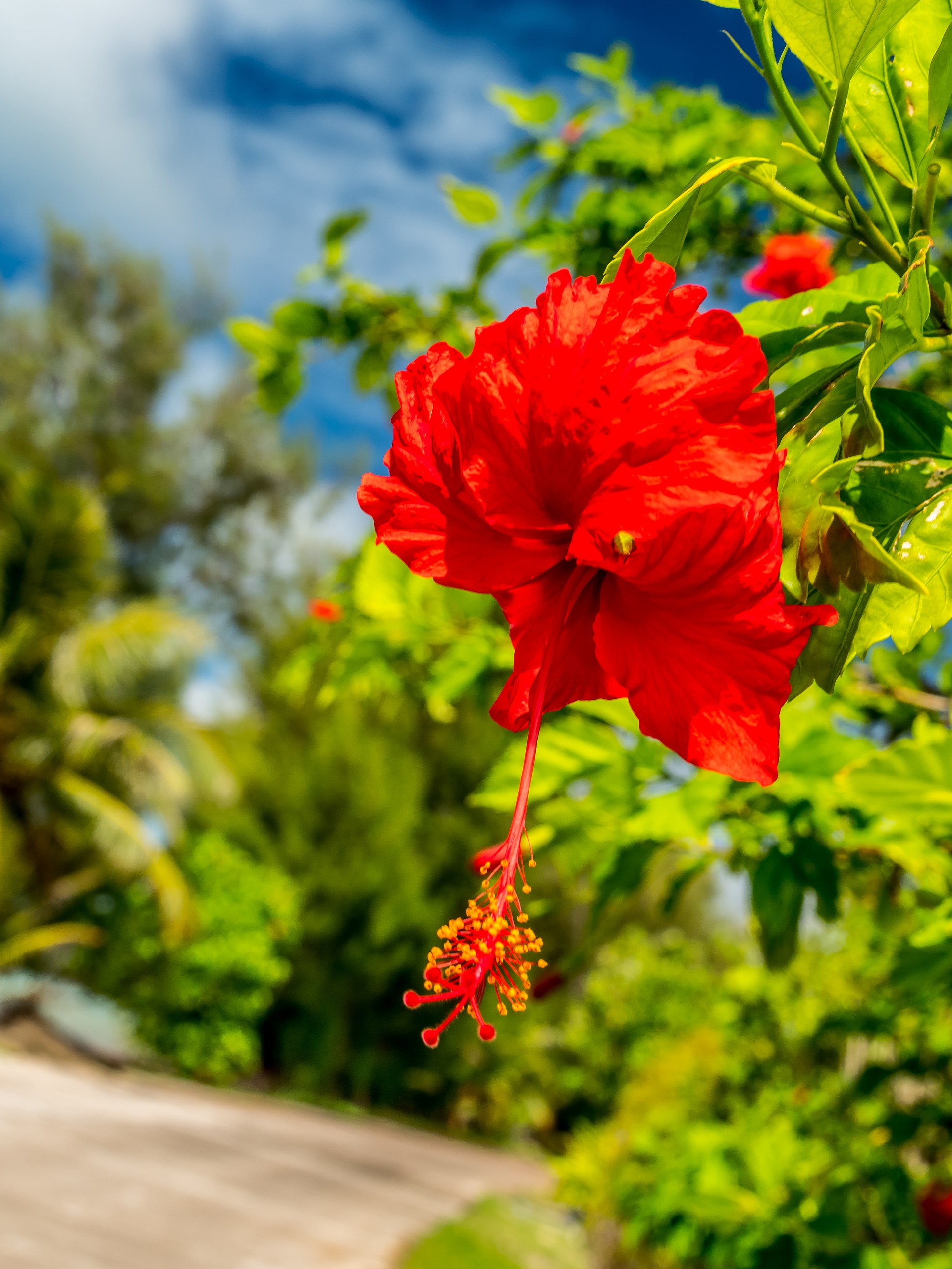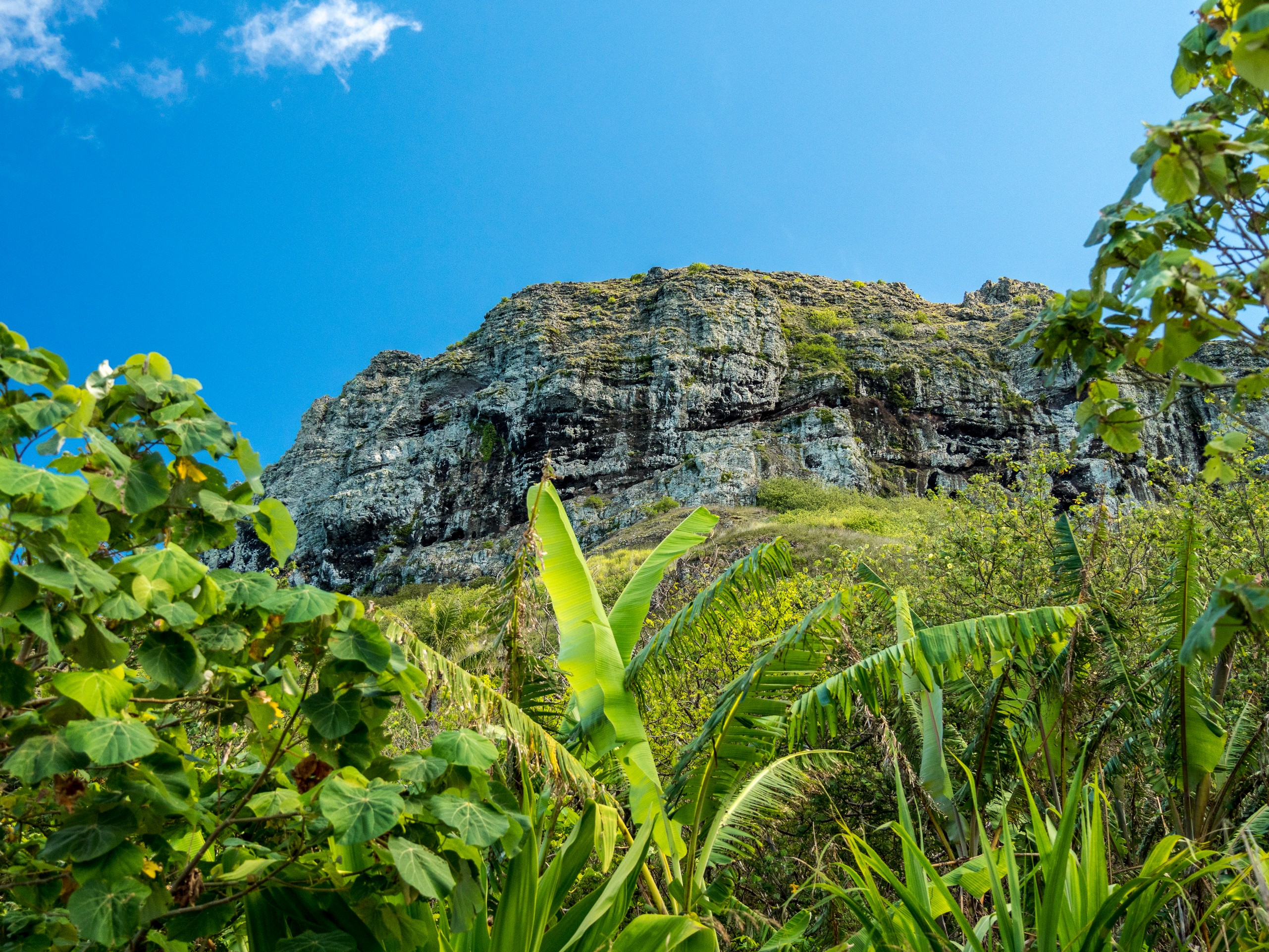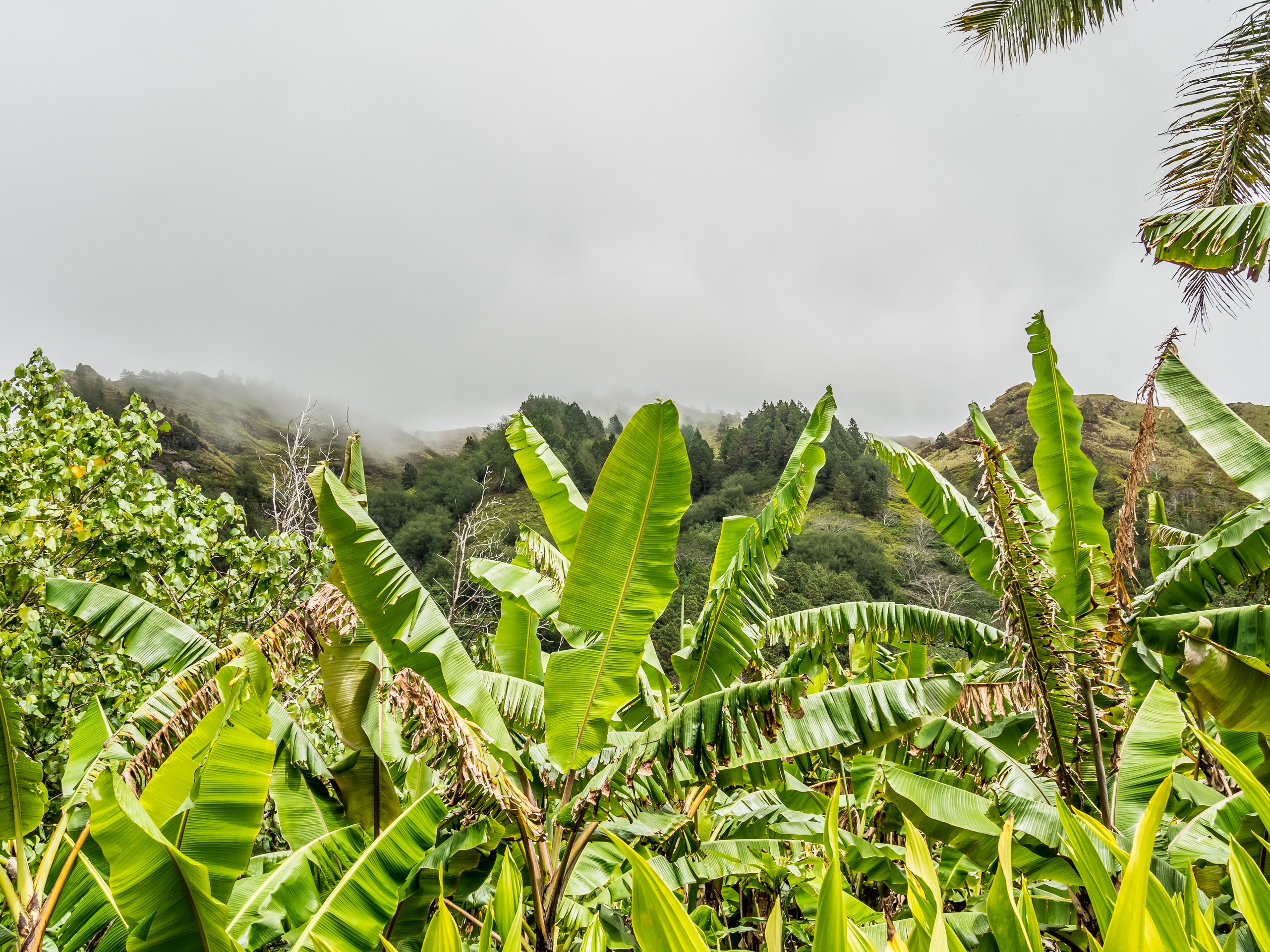 La beauté de Raivavae aussi va me manquer. Son air pur et cristallin qui fait ressortir tous les petits détails de son anatomie : tout son relief tourmenté et puissant, toutes les nuances possibles de son lagon, le bleu presque cobalt du ciel quand il ne pleut pas, les explosions de rouge, de rose et de jaune des hibiscus, le rose et le rouge des flamboyants, le blanc du tiaré et du frangipanier mais aussi, les cinquante nuances de vert de ses montagnes et de ses cultures. Du vert tendre de l’herbe au beau vert luisant du taro en passant par l’émeraude des bananiers et le vert sapin des aitos… Ils sont trop nombreux pour être nommés et rivalisent en nombre les bleus.