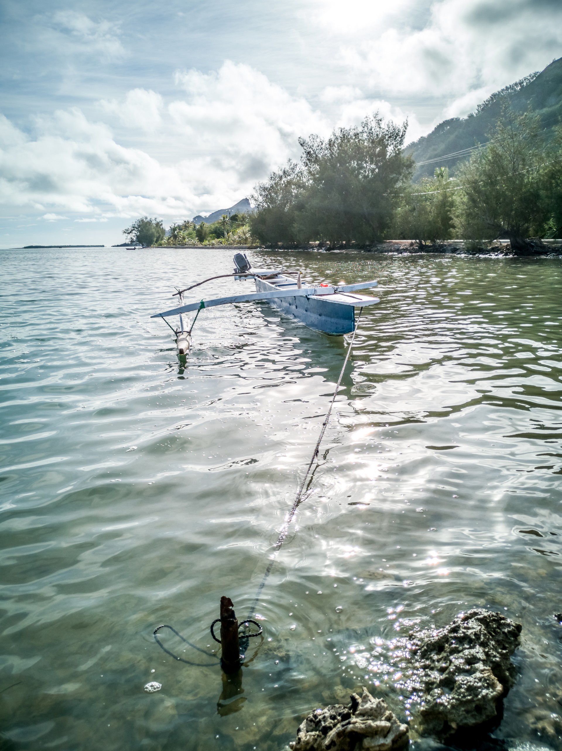 Après une bonne sieste, je pars à la découverte de mon environnement pour les 8 prochains jours, d’abords en allant faire une petite visite à la supérette, que les habitants ont surnommé le « Carrefour », car c’est la plus grande de l’île, avant de rebrousser chemin et de me diriger vers la pointe est. A part des enfants qui rentrent de l’école à pied ou à vélo et quelques voitures, ça ne se bouscule pas sur la route circulaire mais à chaque personne rencontrée, un salut, un bonsoir ou un « Ia Ora Na ». Ce n’est pas grand-chose, c’est peut-être aussi un automatisme de politesse mais je prends ces saluts comme une marque que l’on reconnaît l’autre en tant que personne. Nous ne sommes pas invisibles les uns aux autres. Ne fut-ce que quelques secondes, on se voit, mutuellement.