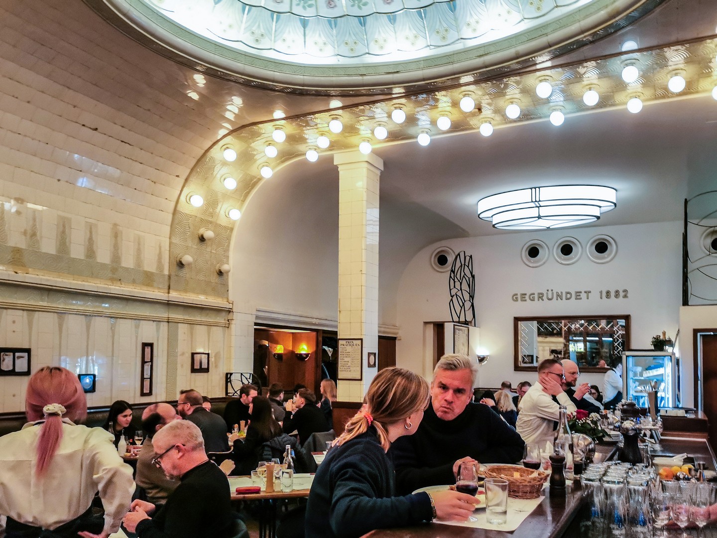 On a l’impression de retrouver le Paris de la grande époque dans ce café-brasserie qui mélange Art Nouveau et Art Déco. Lever les yeux et admirer les voûtes du plafond et céramique peinte. Spectaculaire et l’ambiance est souvent au rendez-vous ! L’endroit est très prisé le soir donc, n’espérez pas trop y manger sans réserver. Le menu est typiquement français : huitres, tartare de bœuf, croque-monsieur, escargots, bouillabaisse… Mais prenez place au comptoir pour un bon verre de vin ou une flûte de champagne, ça fait toujours plaisir pour bien commencer la soirée. Seul bémol : c’est un peu cher.