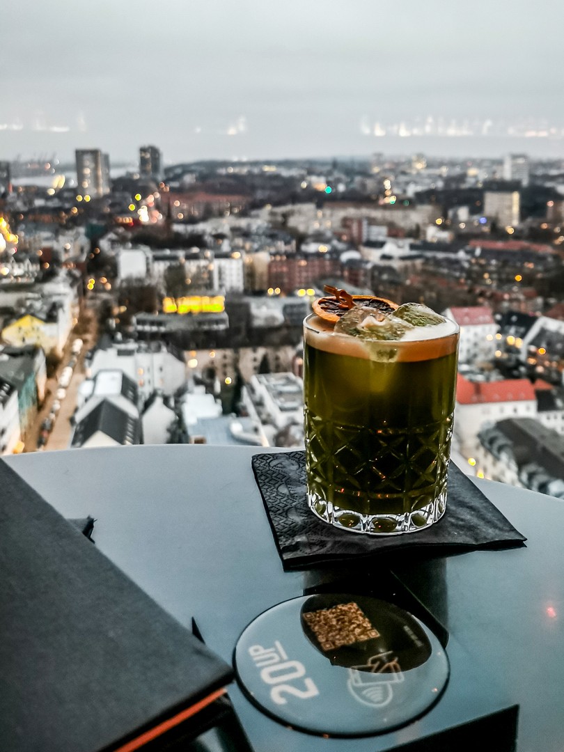 Au sommet de l’Empire Riverside Hotel Hamburg, dans le quartier de St Pauli, trône ce rooftop bar (sans terrasse, vu la météo capricieuse de la ville durant la majeure partie de l’année). Esprit lounge et sombre (murs noirs qui mettent bien en valeur le bar et ses nombreuses bouteilles toutes illuminées), tables hautes et immenses fenêtres qui offrent une vue de rêve sur l’Elbe et la ville. Attention, les meilleures places à l’arrière de la salle en face du fleuve sont à réserver si vous voulez être sûrs de les avoir néanmoins, si vous venez à l’ouverture, la bar est assez grand que pour avoir une table près de la fenêtre. Sinon, vous pouvez aussi vous asseoir à l’immense comptoir qui peut accueillir… 200 personnes ! Les cocktails sont assez inventifs et étonnement, les prix sont corrects (environ 15€ pour un cocktail « signature », 13€ pour un mocktail), étant donné le lieu.