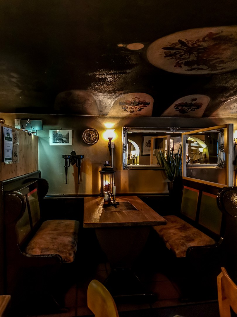 Hambourg ayant été copieusement bombardée par les Alliés, les souvenirs de la « ville d’avant » ne sont légion mais la Deichstrasse a miraculeusement survécu. Surtout quand on sait que les ruines de l’église Saint-Nicolas ne sont pas loin. Kartoffelkeller, c’est la « cave à patates » et avec un nom pareil, on ne s’étonnera pas que le menu soit consacré presqu’entièrement au divin tubercule adoré des Allemands. Toute une partie du menu lui est dédié (y compris de desserts), de quoi apprécier les nombreuses façons de l’accommoder (pensez aux recettes où les pommes de terre sont accompagnées de hareng, LE poisson emblématique de la ville). J’ai choisi une toute simple assiette de pommes de terre rissolées accompagnées de légumes grillés et comme souvent en Allemagne les portions sont généreuses. Le lieu en lui-même est charmant : une vraie cave, toute sombre mais cosy, faîtes de coins et recoins, meublée de bois. Parfait pour cette fin d’hiver où j’avais visité Hambourg ! Pour les claustrophobes ou pour les jours où il fait beau, il y a une jolie terrasse devant le restaurant et un jardin à l’arrière.