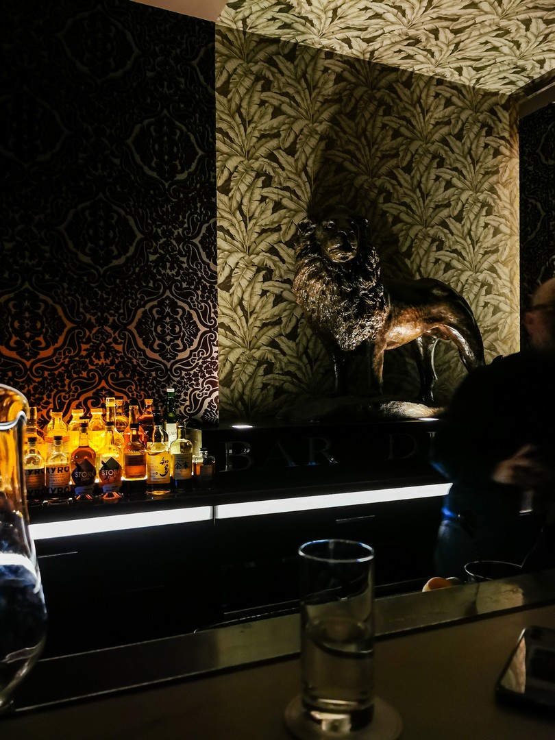 En poussant la porte discrète du Lion (non sans avoir sonné, façon speakeasy), on entre dans un autre monde. Ce petit bar à cocktails a la réputation d’être un des meilleurs d’Hambourg et en effet, le lieu est plein à craquer. A travers la clientèle, j’aperçois un intérieur très lounge, avec papier baroque, où tout est articulé autour du bar et du lion en bronze qui trône au milieu. C’est ici qu’arait été inventé le gin basil smash (un de mes préférés). Génial pour une fin de soirée !