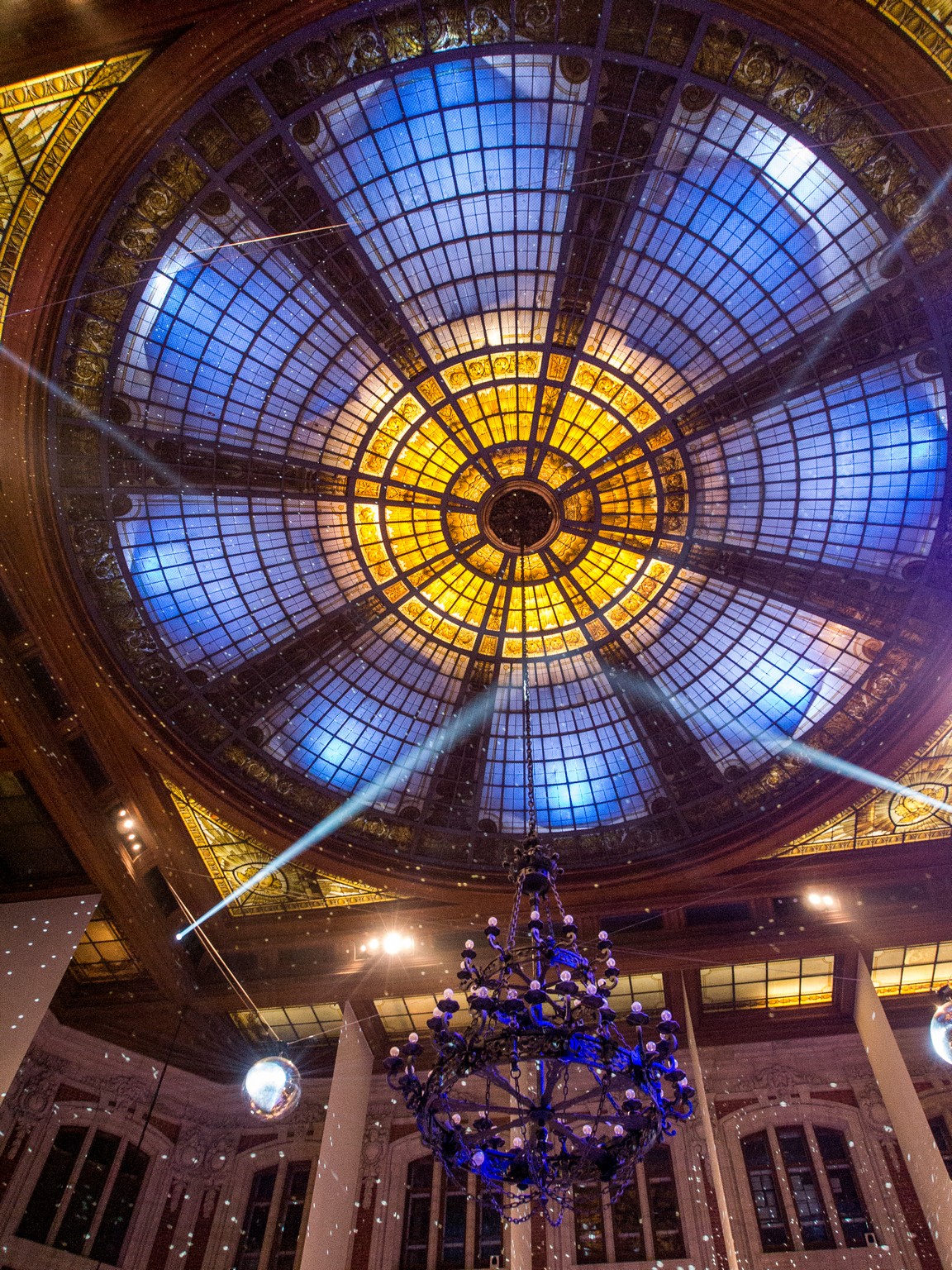 Un autre endroit magique des fêtes de Noël, c’est la patinoire qui est installée dans le hall d’accueil de la Chambre de commerce et d’industrie. La patinoire (synthétique) est petite mais le lieu est sublime. On glisse sous l’immense verrière de la CCI, avec des projections d’étoiles partout. Un vrai régal pour les petits et grands. Lauriane et moi y avons fait preuve d’une grâce et d’une élégance sans pareille !