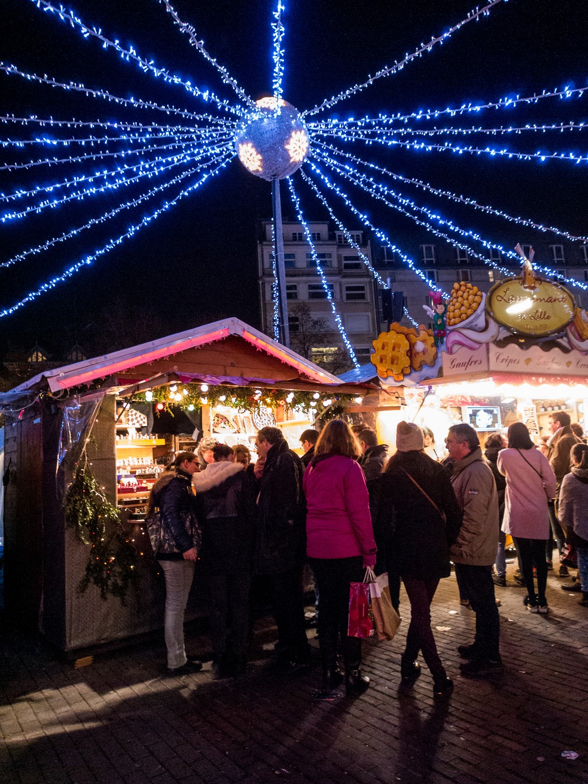 Le marche de Noël proprement dit est installé Place Rihours. Sous un véritable chapiteau lumineux, la foule se presse entre les stands de vin chaud, les chalets gastronomiques ou d’objets décoratifs et artisanaux. Prenez le temps de flâner. De toute façon, vous n’avancerez pas très vite. 😉