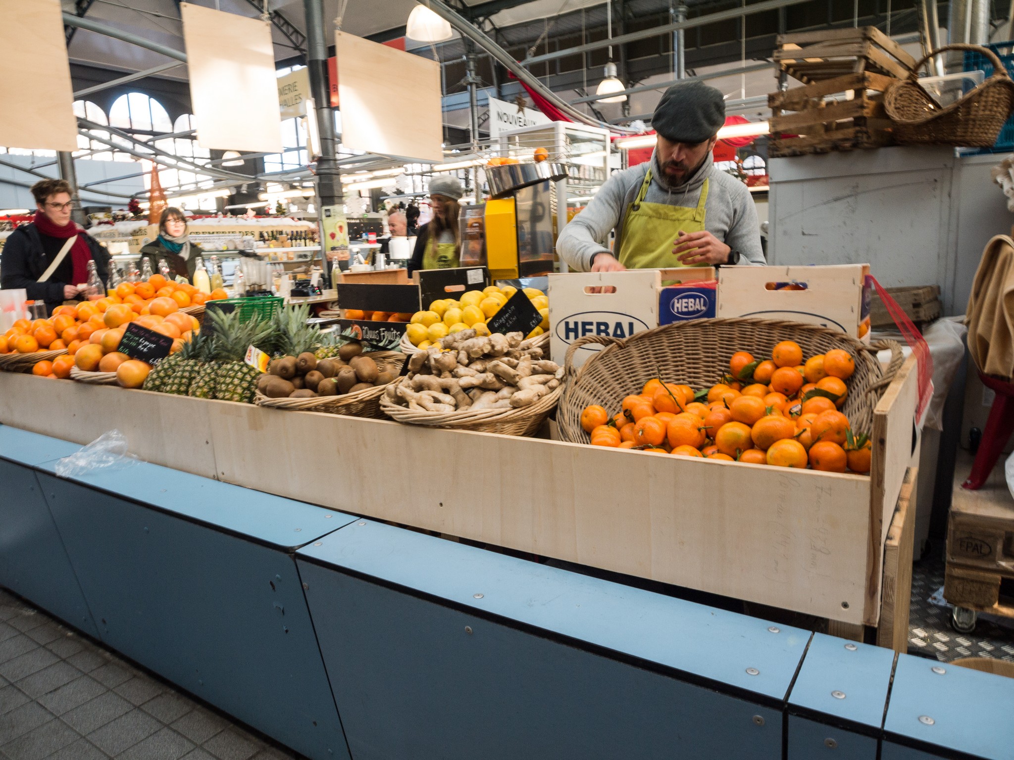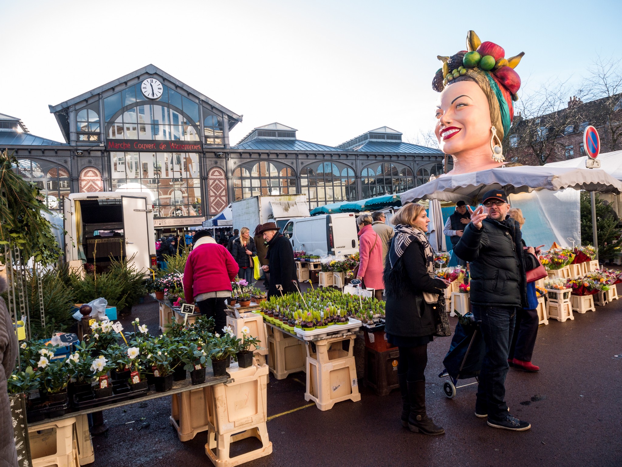 Le lendemain matin, je me lève avec le soleil. Pas un nuage dans le ciel lillois et comme nous sommes dimanche, c’est LE jour pour aller faire son marché et ça tombe plutôt bien : le Marché de Wazemmes est un des plus grands de France ! Je saute dans un métro pour m’y rendre et suis tout simplement la foule qui se presse. Ce grand marché s’est développé autour des Halles construites aux XIXème et on y trouve de tout : chaussures, légumes, parfums, vêtements, fleurs… A l’intérieur des Halles, on trouvera plus des commerces de bouche comme des boulangeries, boucheries et poissonneries qui donnent l’eau à la bouche. Une bien belle manière de démarrer son dimanche. Et pour l’après-marché, il y a une foule des petits cafés autour des Halles. J’ai décidé de me reprendre une bonne dose de caféine, je pousse la porte de La Brûlerie, un spécialiste du café… et quand je vois le monde qui y est, je me dis que je suis à une bonne adresse : l’odeur du café fraîchement moulu est enivrante. J’arrive à me dégoter une petite place et attends qu’on vienne me servir mon cappuccino en écoutant les morceaux de jazz diffusé par les hauts-parleurs. Ça incite vraiment à la paresse ! Mais on avait bien dit « Slow Travel », non ? Pour ceux qui n’aiment pas le café, il y aussi une foule de thés et plein de smoothies dont l’énoncé a suffi à me faire saliver. Il faudra pourtant s’arracher de là pour continuer la promenade.