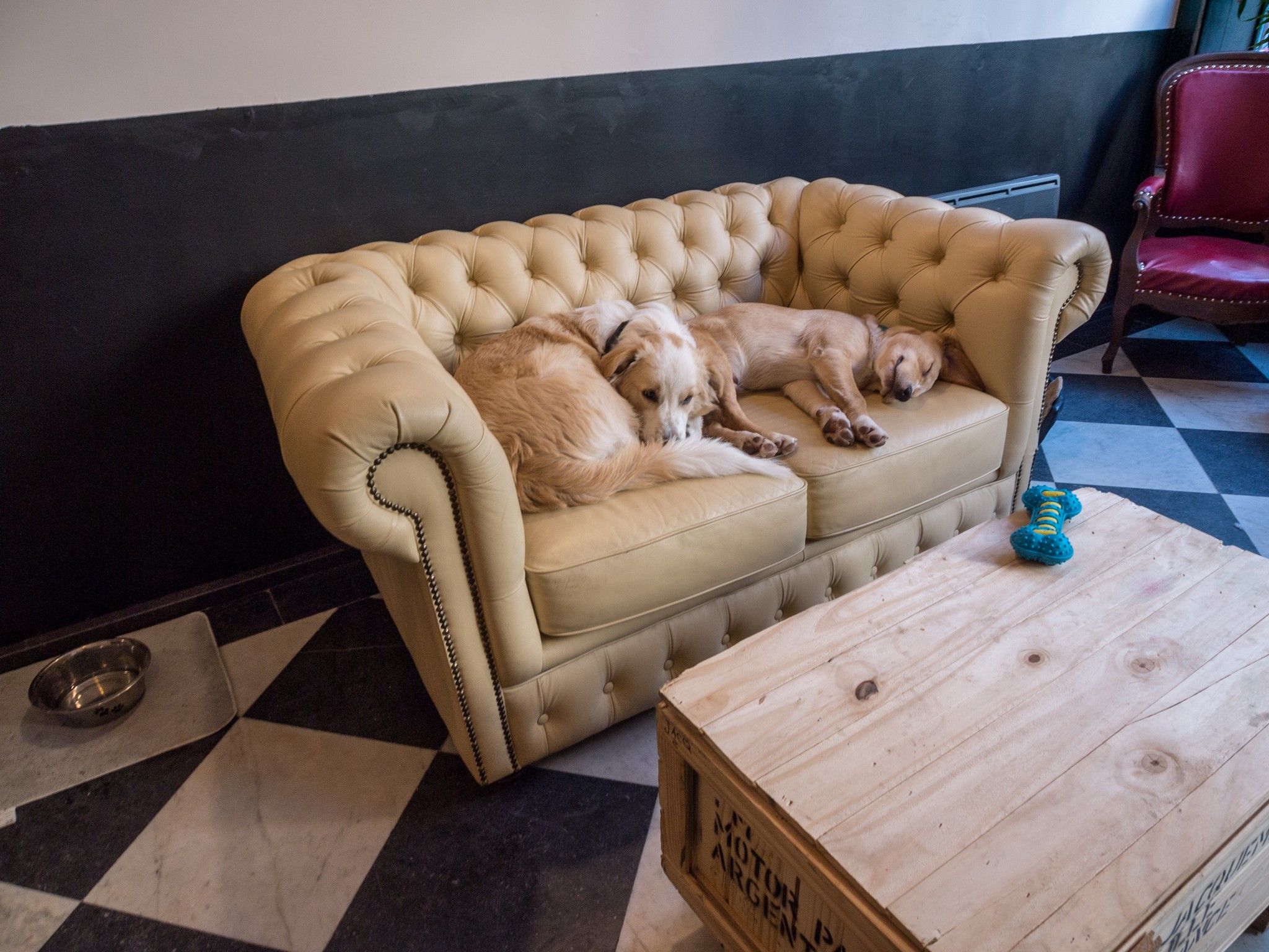 Sur le chemin, je vais m’arrêter dans un lieu un peu spécial… un café à chiens. Et le premier de France en plus : le Waf. Il vient à peine d’ouvrir, en plus. Le principe est le même que les Cafés à chats : on paie un forfait à partir de 4 Euros la demi-heure (et on peut se servir autant de thé qu’on veut) et on fait de grosses caresses aux 9 pensionnaires qui habitent le café. Certains sont les chiens de la propriétaire, les autres viennent de refuges et sont adoptables. Le lieu est vraiment spacieux (il faut de la place pour les toutous), convivial et chaleureux. On s’y sent tout de suite bien et je vais donc prendre place sur un canapé. Il ne faudra pas longtemps avant que je me fasse alpaguer par deux des plus petits chiens du Café : Kiki et Nanou qui insistent pour recevoir grattouilles et caresses. Avant de craquer, je quitte les lieux remplie d’affection canine pour me perdre un peu dans les petites rues du Vieux Lille, entourées de briques.