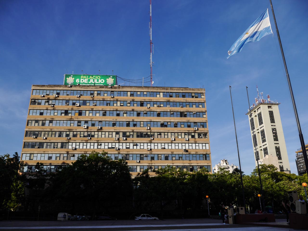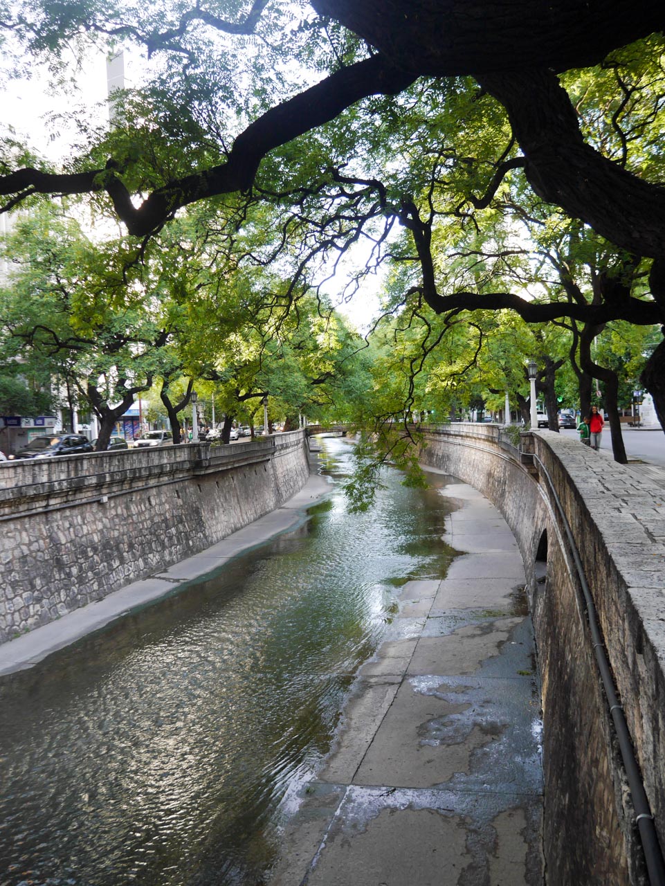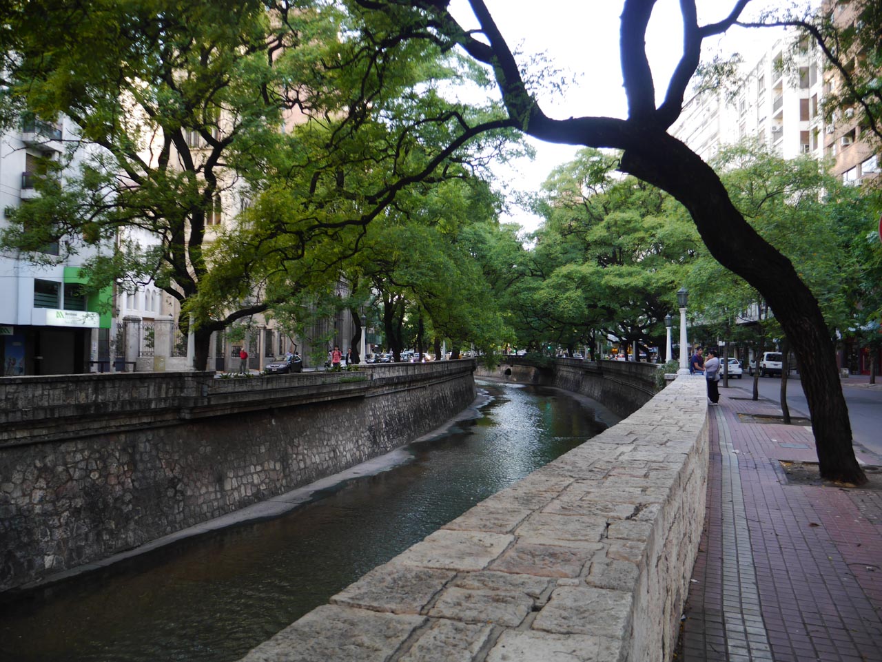 Comme la soirée est magnifique, je me dépêche de défaire mes affaires, me rafraîchir et d’aller me promener dans cette ville qui selon tous les guides, à une réputation d’être très agréables. Mais voilà… je l’ai déjà dit, il en va de ville ou de pays comme des personnes. Certaines vous reviennent tout de suite, vous séduisent d’emblée et d’autre, moins. Malgré le grand soleil et le berges arborées du canal qui traverse la ville, j’ai du mal à appréhender cette cité. Dans le quartier de Tribunales, là où se trouve l’immense Palais de Justice de la province, se trouve également la mairie de Córdoba. Un bâtiment d’une laideur affreuse qui me fait penser à ce que Ceaușescu aurait pu faire construire à Bucarest. Pourtant, Córdoba est ancienne, et même très ancienne pour une ville d’Amérique latine ! Elle est née à la moitié du 16e siècle et c’est dans le Microcentro, autour de la Plaza San Martin, qu’on trouve ce qui subsiste de cette histoire avec la « Manzana Jesuitica », le Quartier jésuite.