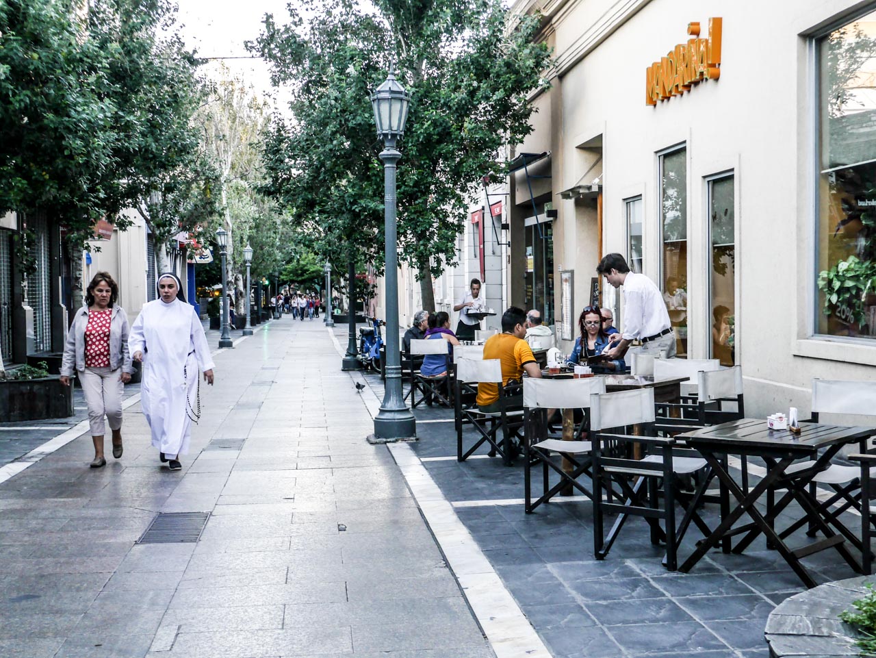 A l’arrière de la Manzana, on trouve la Calle Dean-Funes, une jolie rue pavée remplie de boutiques et des restaurants invite le promeneur à s’y attarder… sauf que nous sommes le premier janvier. Tous les magasins sont fermés et la moitié des bars=restaurants aussi. Je fini par en trouver un… et j’ai très, très envie de manger quelque chose de pas typique du tout : une pizza. Je commande et le serveur me fait un grand sourire : « Vous voyagez seule ? C’est votre première fois à Córdoba ? Benvenida, votre espagnol n’est pas mal.» (vil flatteur, je bafouille et n’ai jamais appris) car si il est une chose pour lequel le Cordobès est connu, c’est sa gentillesse et sa chaleur. Et aussi sa capacité à faire la fête.