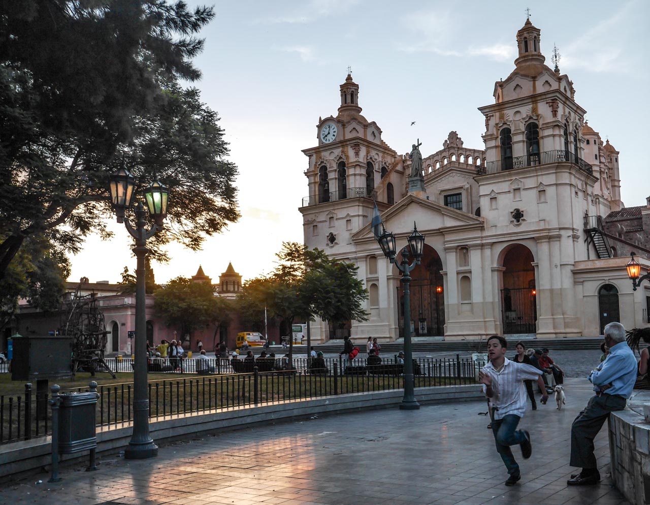 Tout à côté, on trouve la cathédrale et la grande Plaza San Martin, le cœur du Microcentro de Córdoba. Comme toutes les places majeures argentines, c’est un grand carré rempli d’arbres et de bancs qui ne désemplissent pas du matin jusqu’à très tard le soir. Il y a toujours quelque chose qui se passe Plaza san Martin! On vient y déguster une glace à l’ombre, admirer une démonstration de tango, regarder un spectacle de rue le soir au pied du Cabildo, l’ancienne mairie de l’époque coloniale et même à près de minuit, des familles entières s’y promènent ou viennent papoter.