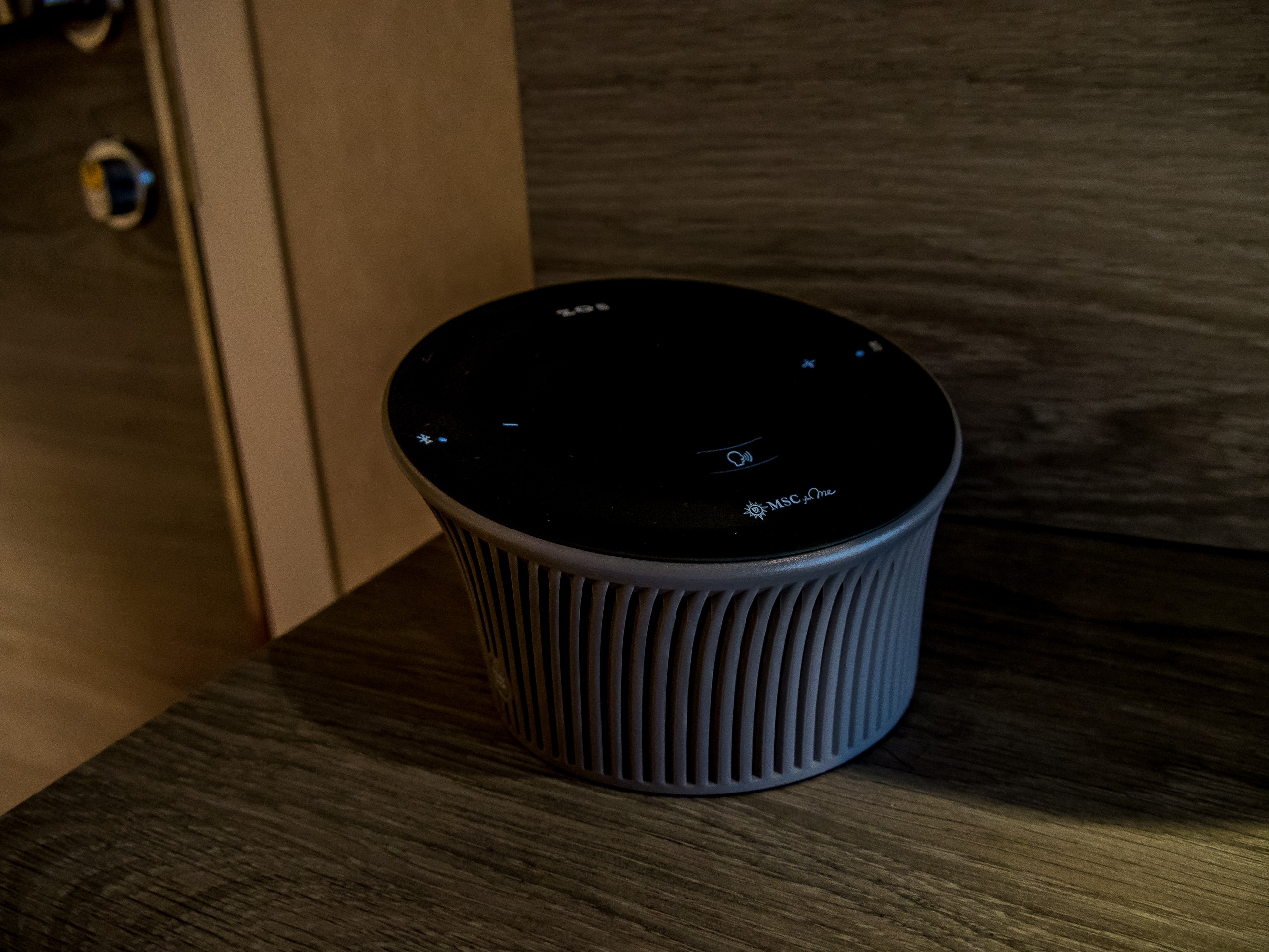Une des nouveautés dans la cabine, c'est Zoé, une assistante virtuelle qui peut vous renseigner sur le bateau, ses activités, la météo mais aussi allumer la télé par exemple. C'est assez amusant mais l'outil est encore jeune et manque encore de fonctionnalités mais c'est assez prometteur.