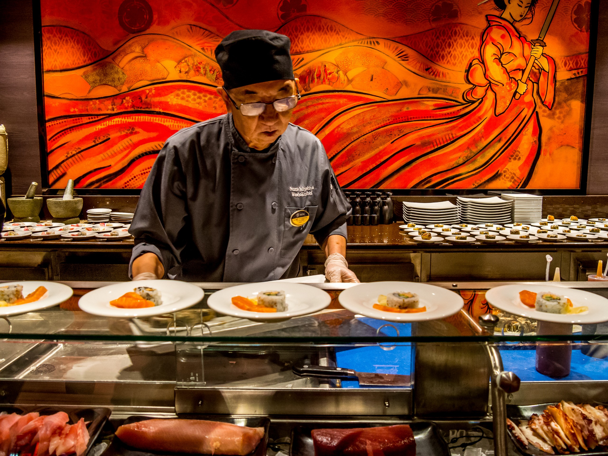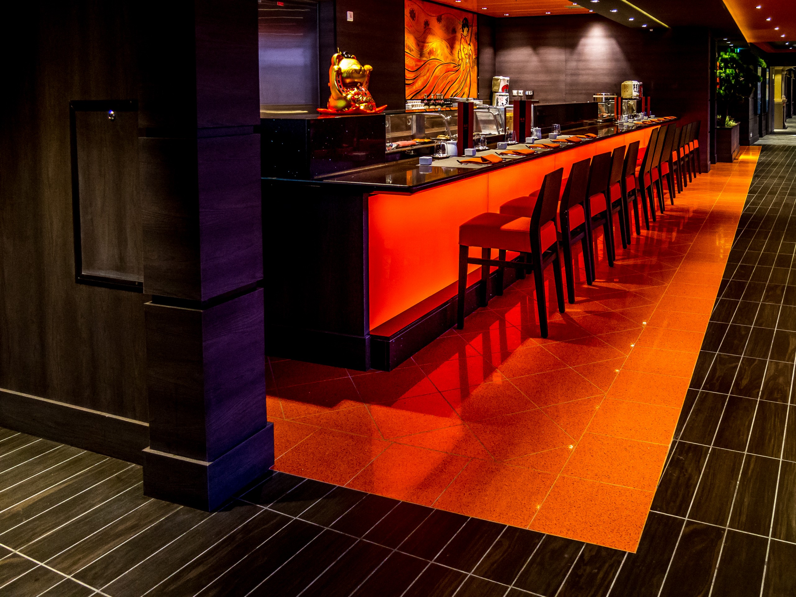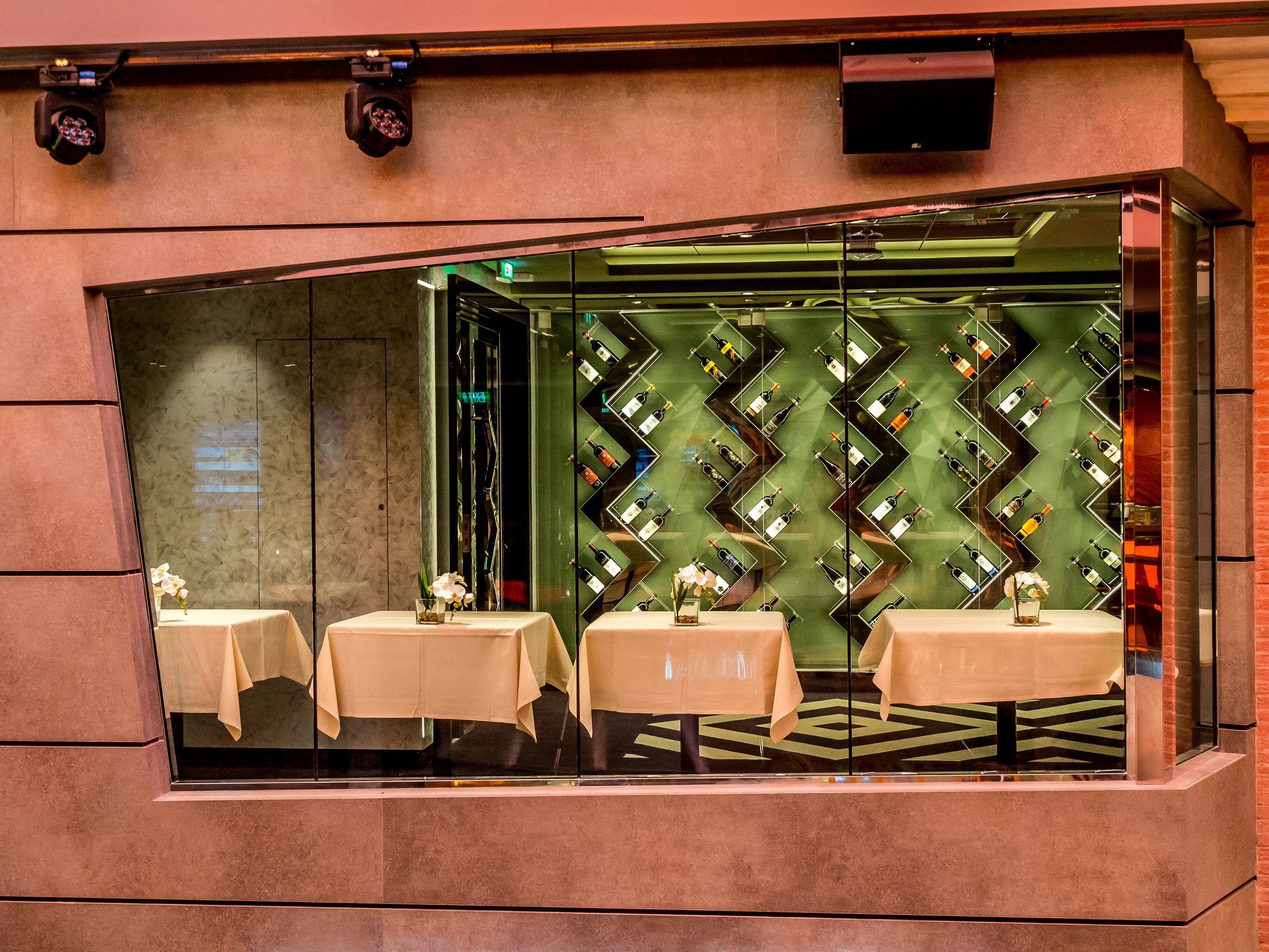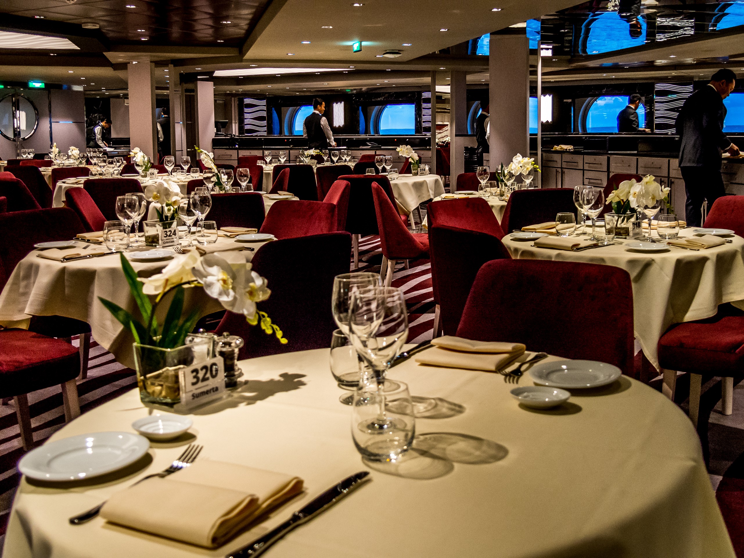 Il y a ensuite 4 restaurants spécialisés (en supplément) : l'Atelier Bistro (cuisine française), HOLA ! Tapas bar du chef espagnol doublement étoilé Ramon Freixa (à la bonne franquette avec ses grosses barriques qui servent de tables), Kaito Teppanyaki et Sushi Bar (avec un côté « bar a sushi » à déguster sans attendre et le côté restaurant pour profiter) et le Butcher's Cut (steak house à l'américaine dont la cave met l'accent sur les vins d'Argentine et du Chili).