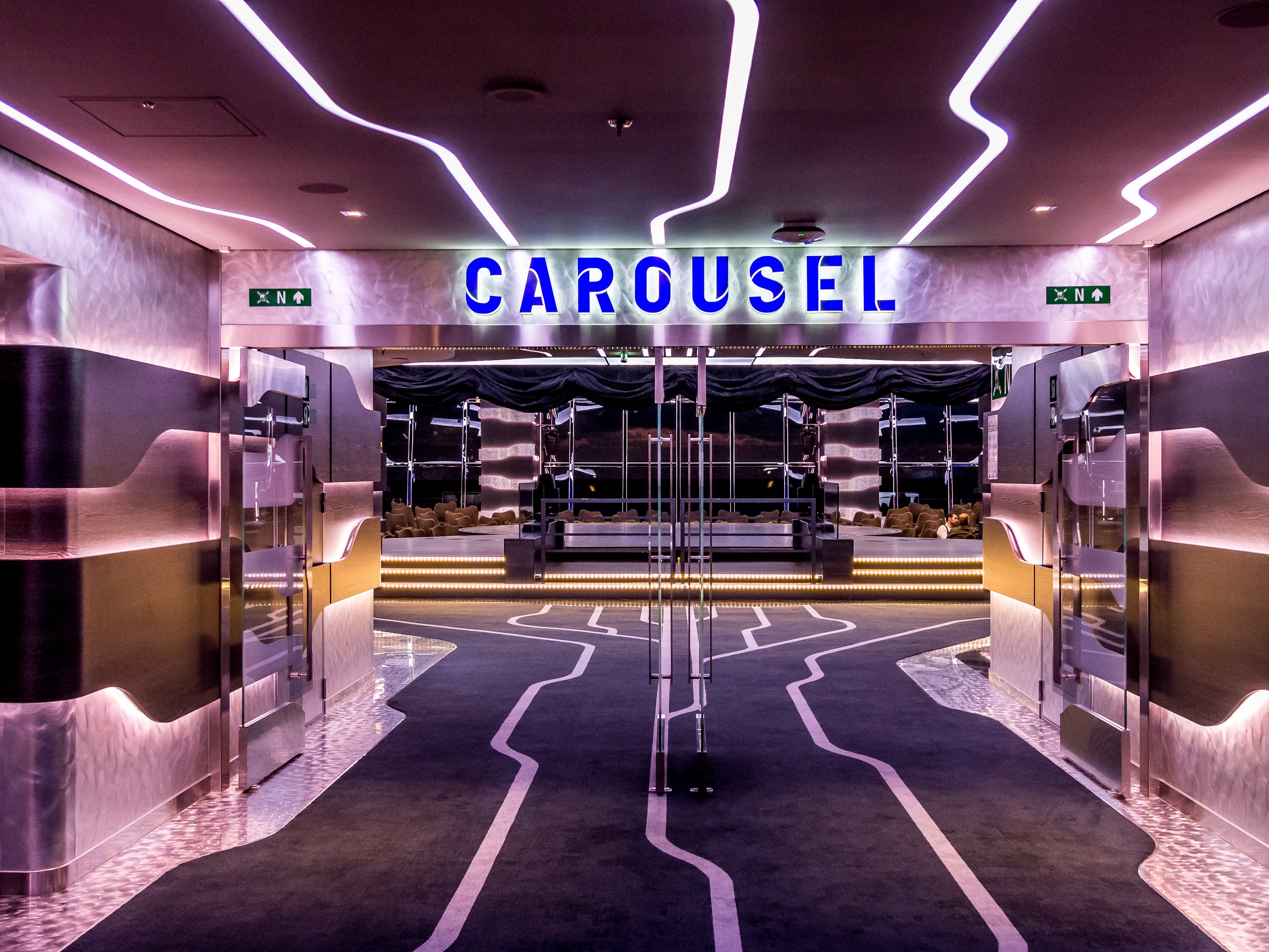 Mais le Grandiosa a d'autres atouts qui lui sont spécifiques comme un spectacle du Cirque du Soleil dans un lounge dédié (le Carousel lounge) lors de chaque croisières.