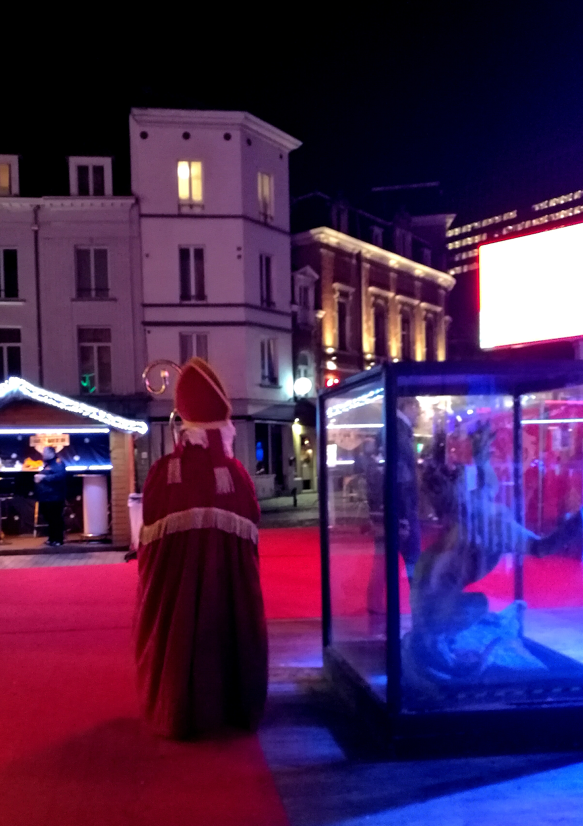A Bruxelles, il est aussi facile de trouver des traces de Saint-Nicolas ! Premièrement, il y a l’église, à côté de la Grand-Place. Quatrième église de la ville et construite au XIIème siècle, elle fut maintes fois remaniée. Quand on voit sa façade, reconstruite dans les années 50, elle ne donne pas spécialement envie d’y entrer mais quand on passe le pas de la porte, l’intérieur, surtout le chœur, valent le coup d’œil.