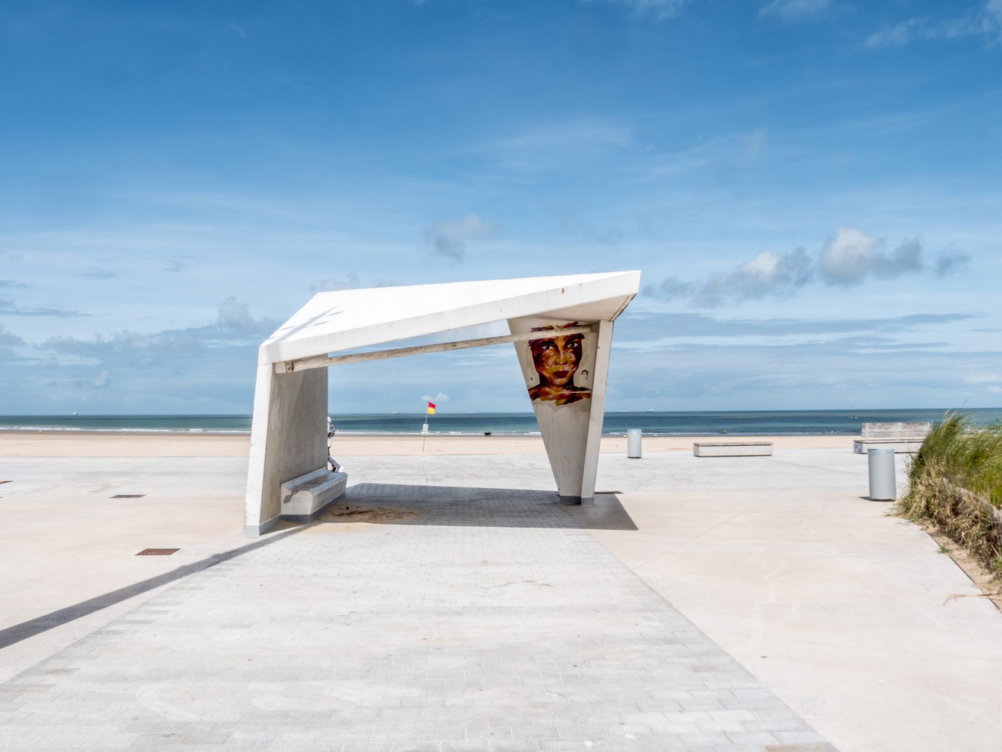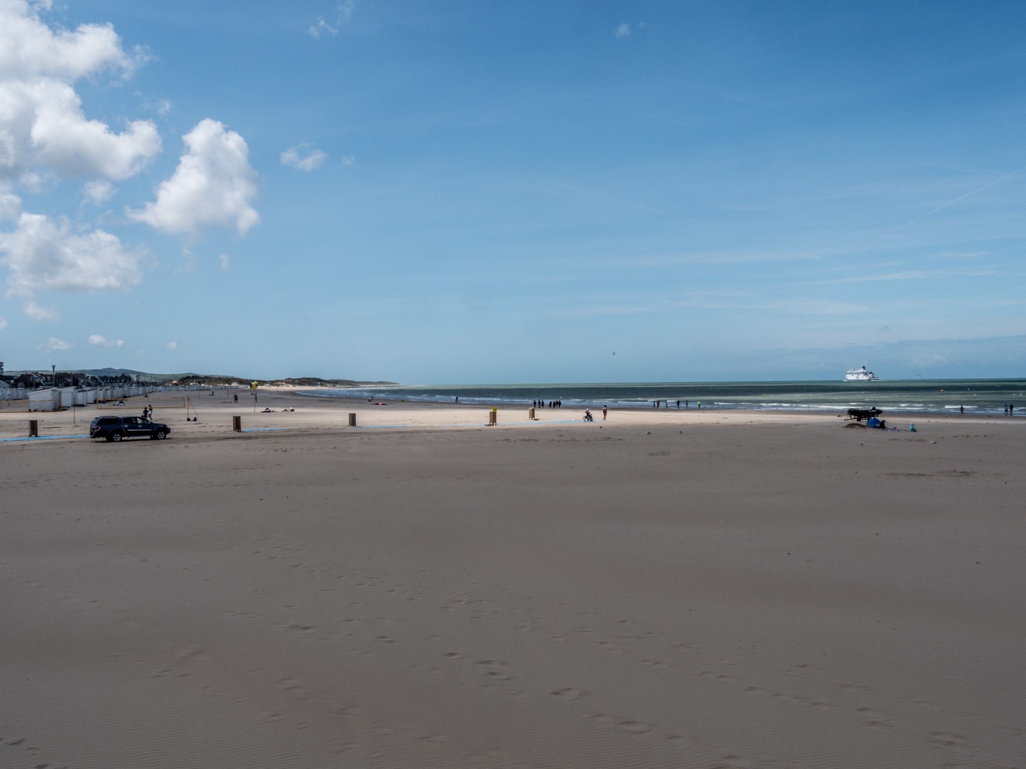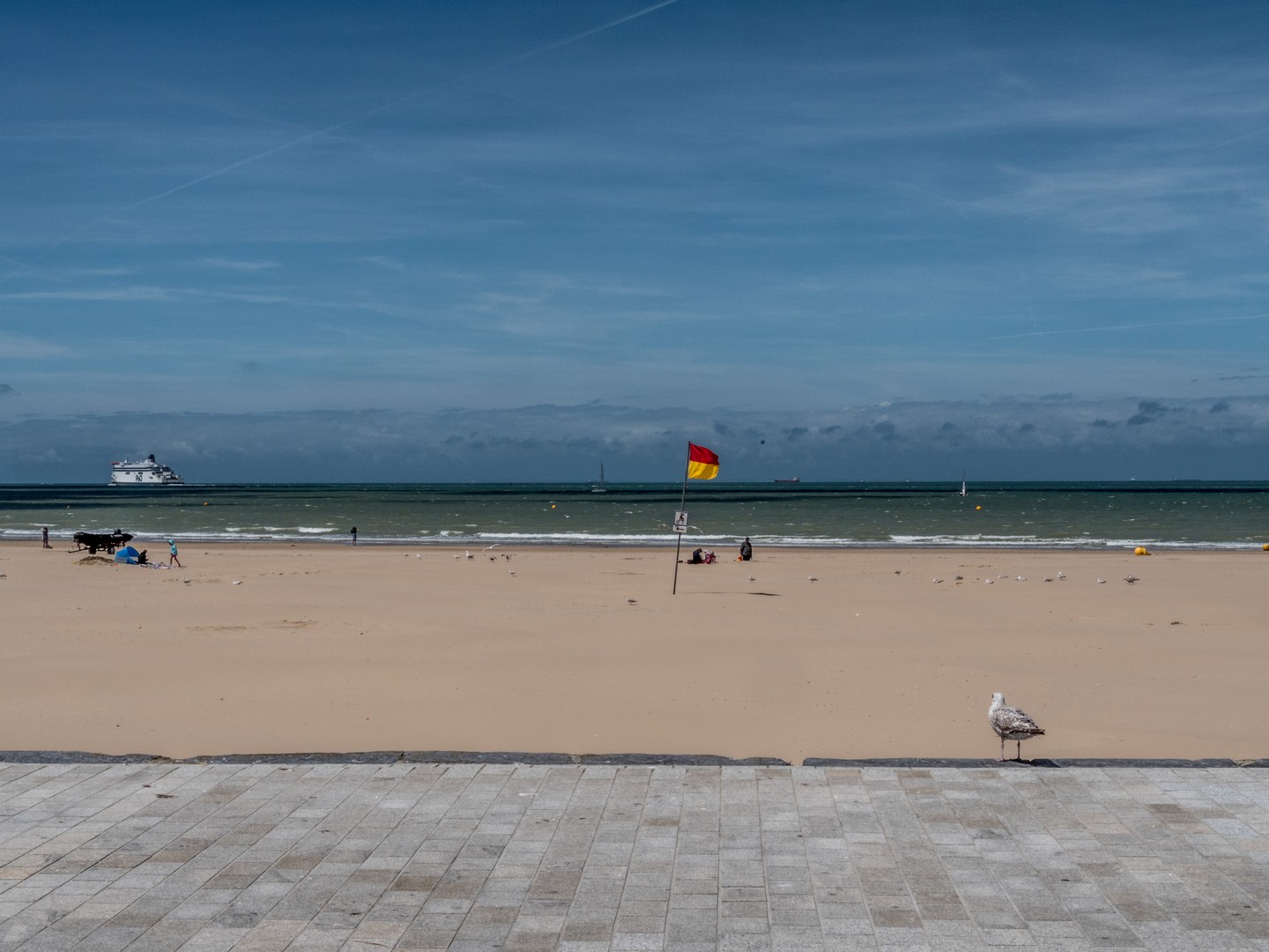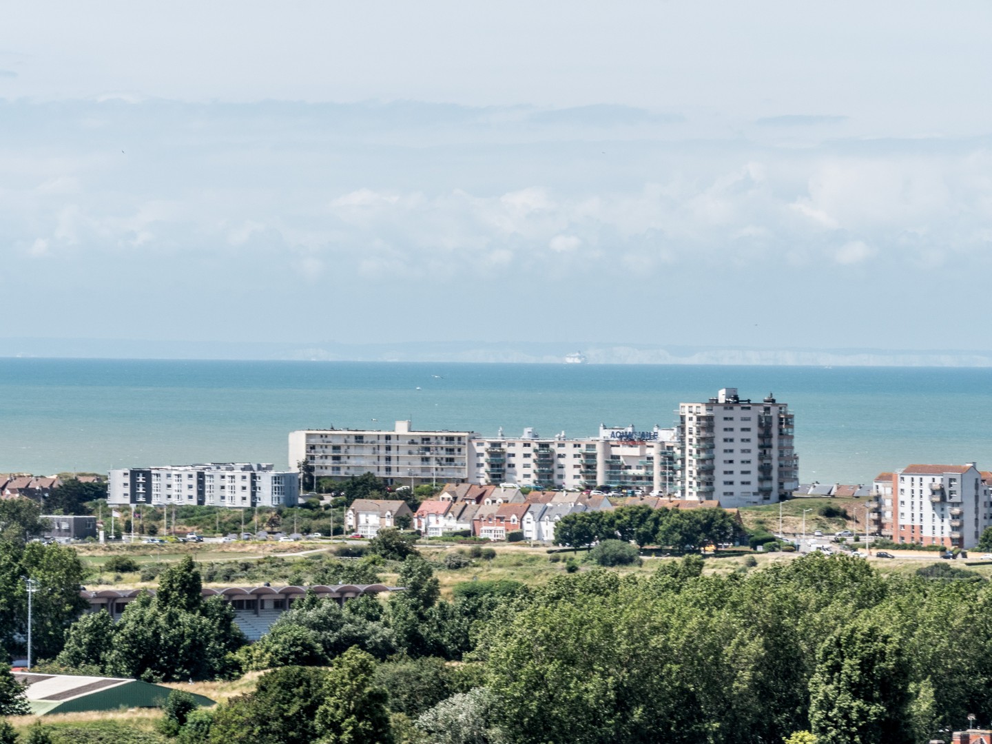 Calais, historiquement, c’est un port. Le point le plus proche de l’Angleterre, la grande ville de la Côte d’Opale. Si proche qu’on peut voir les blanches falaises d’Albion depuis les sables de sa plage. Evidemment, il fallait qu’on aille voir ce front de mer et comme la journée est belle, les conditions sont idéales pour les observer. Il y a comme un petit air de vacances qui flotte dans l’air. De gros nuages paresseux créent des jeux d’ombre et de lumière sur la plage et sur le Manche qui oscille entre le vert et le marine. On pourrait passer des heures à regarder les ferries et cargos faire la traversée. C’est l’autre vibration qui ressort de la plage de Calais, cette excitation des arrivées et des départs, quelque chose dans l’air qui sent autant l’aventure que l’iode.