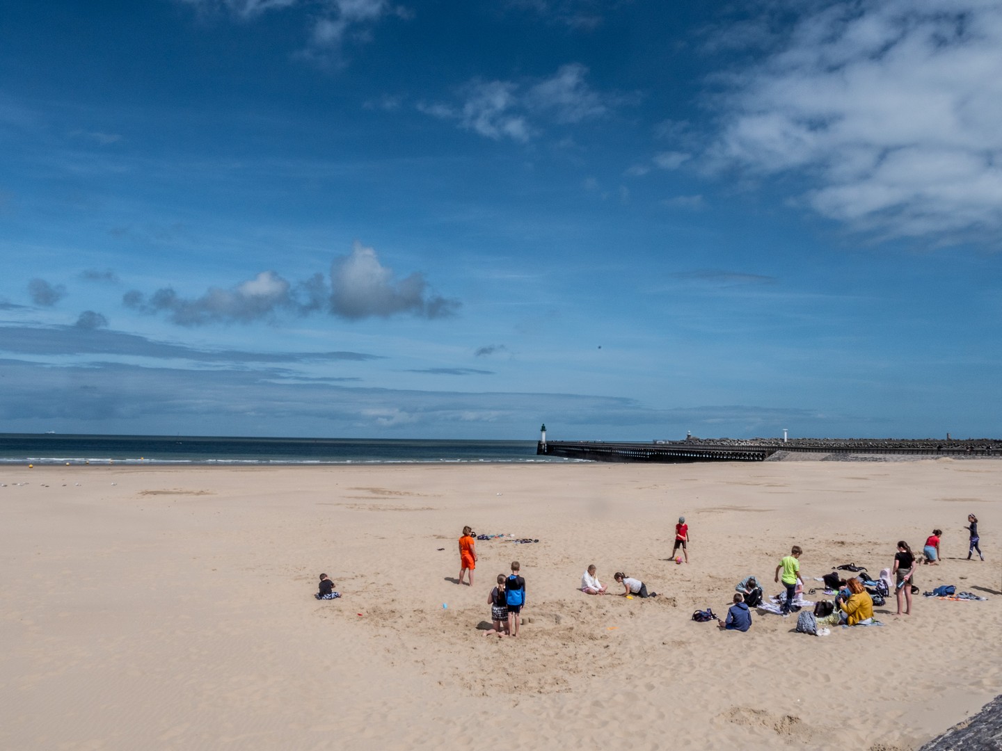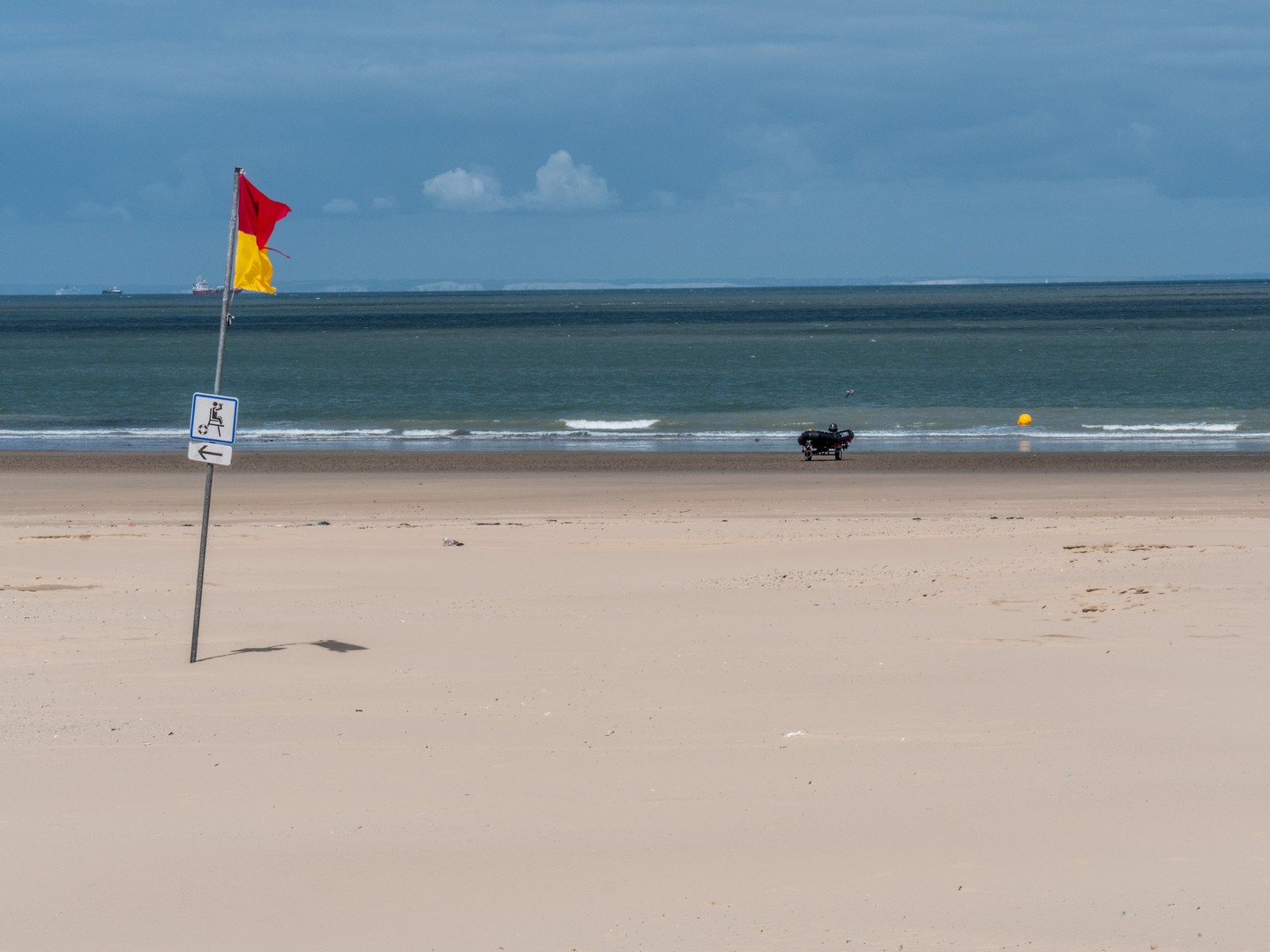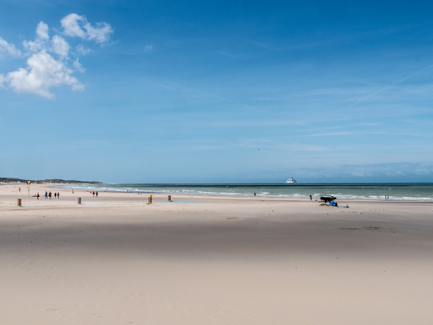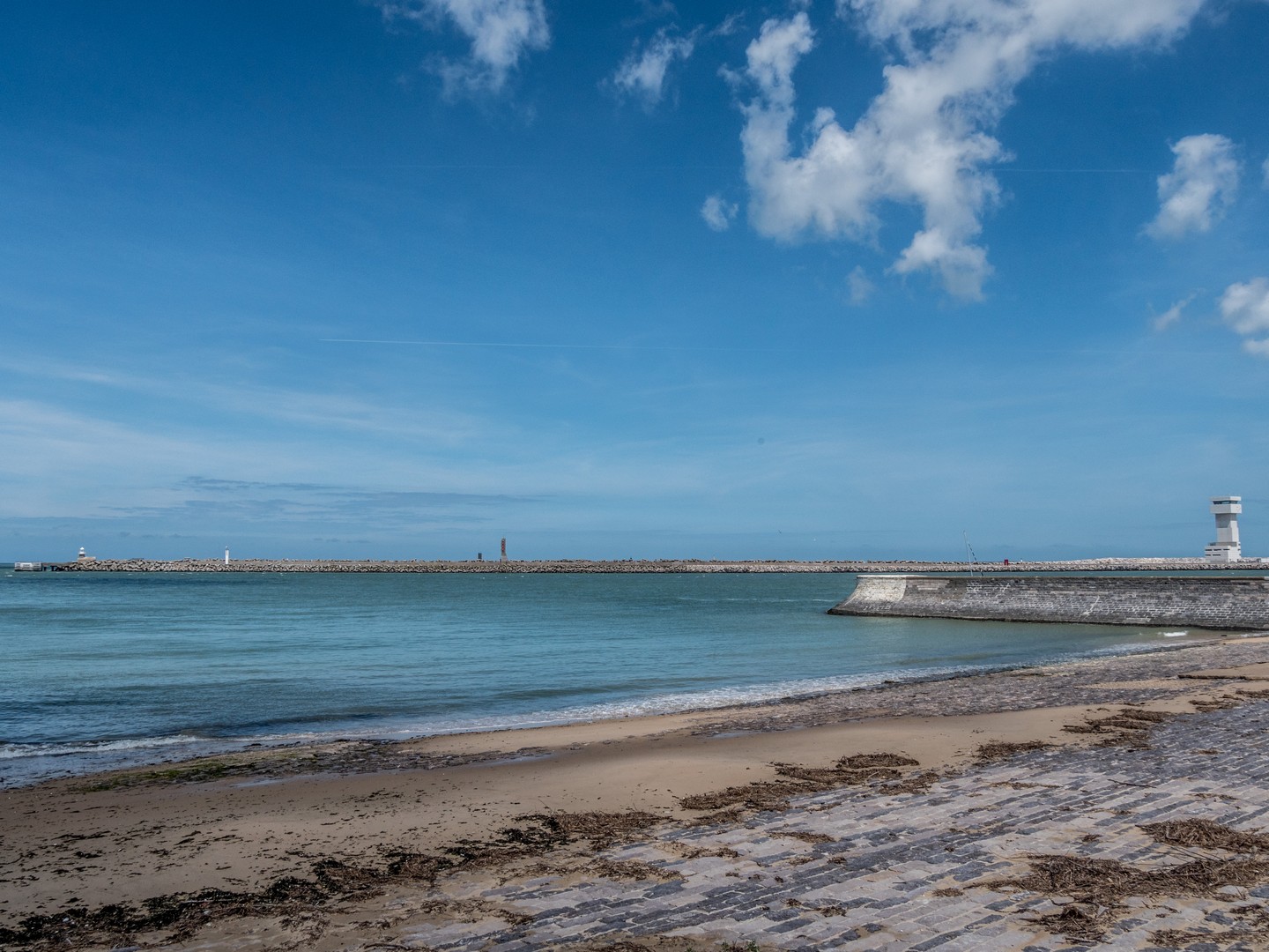 Calais, historiquement, c’est un port. Le point le plus proche de l’Angleterre, la grande ville de la Côte d’Opale. Si proche qu’on peut voir les blanches falaises d’Albion depuis les sables de sa plage. Evidemment, il fallait qu’on aille voir ce front de mer et comme la journée est belle, les conditions sont idéales pour les observer. Il y a comme un petit air de vacances qui flotte dans l’air. De gros nuages paresseux créent des jeux d’ombre et de lumière sur la plage et sur le Manche qui oscille entre le vert et le marine. On pourrait passer des heures à regarder les ferries et cargos faire la traversée. C’est l’autre vibration qui ressort de la plage de Calais, cette excitation des arrivées et des départs, quelque chose dans l’air qui sent autant l’aventure que l’iode.