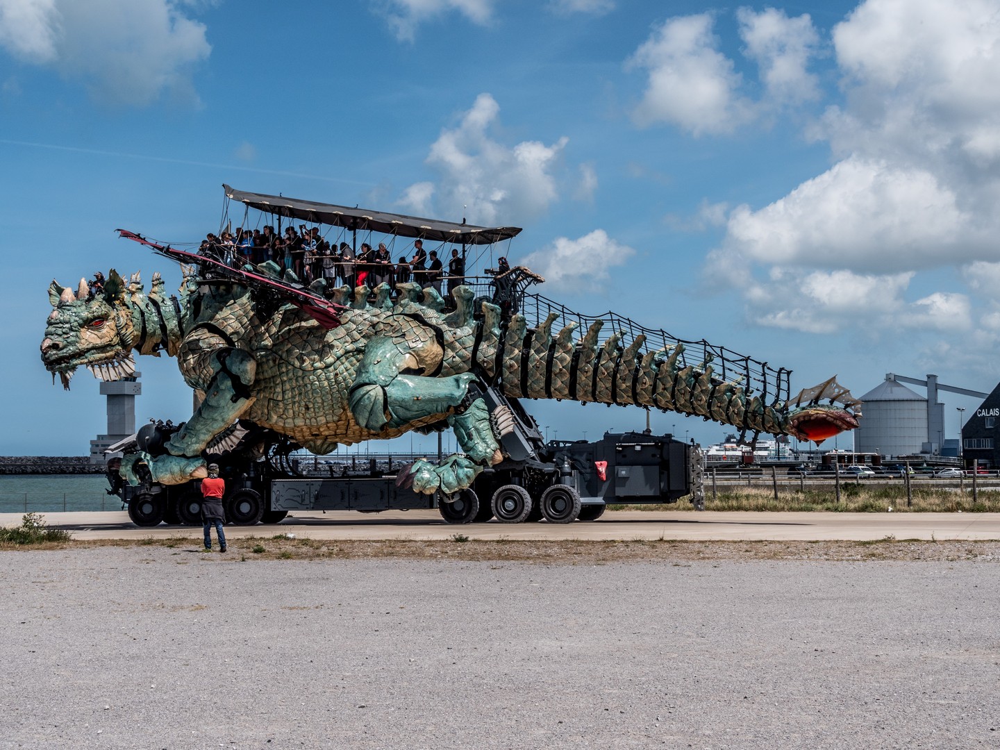 Calais, la plage, son dragon…