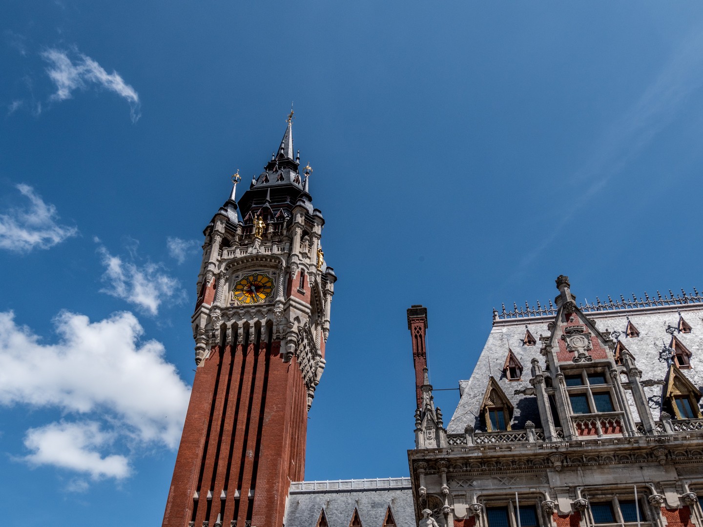 L’un des monuments les plus importants de Calais, c’est son Hôtel de ville, doublé d’un beffroi qui, comme tous les beffrois de France et de Belgique, est inscrit au patrimoine de l’UNESCO. Comme celui de Lille, c’est un beffroi essentiellement construit pendant l’entre-deux-guerres et qui mélange style régionaliste flamand, style Renaissance, avec une légère touche d’Art déco. Si sa structure est de béton armé, il est recouvert de briques de parement rouges pour lui donner sa couleur locale.