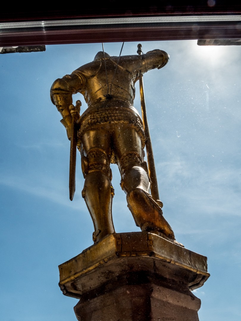 Le clou de la visite, c’est que l’on peut grimper tout en haut du beffroi, et par ascenseur, en plus ! En compagnie de Nicolas, notre guide, nous allons en apprendre plus sur le tissu urbain de Calais qu’on peut mieux appréhender depuis là-haut. Et c’est aussi l’opportunité de faire de chouettes photos, avec les 4 chevaliers dorés posés aux 4 coins cardinaux en guest-stars.