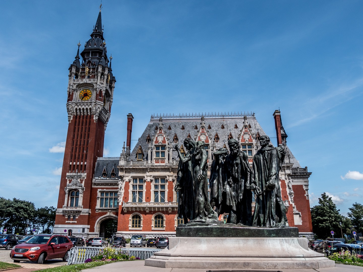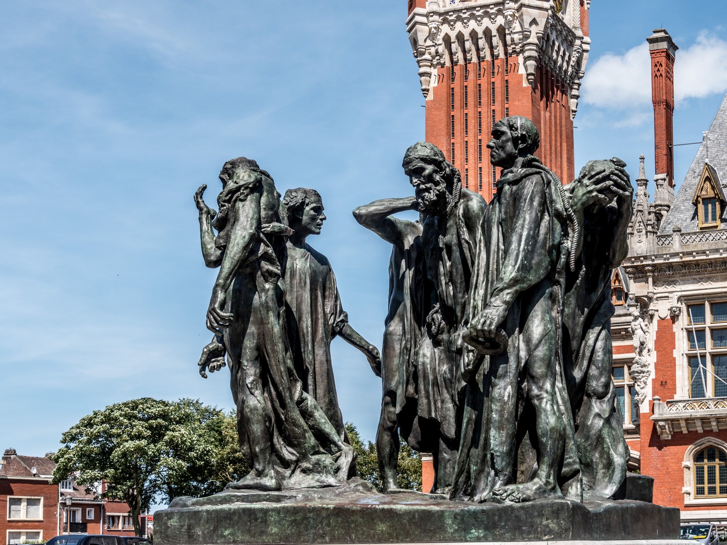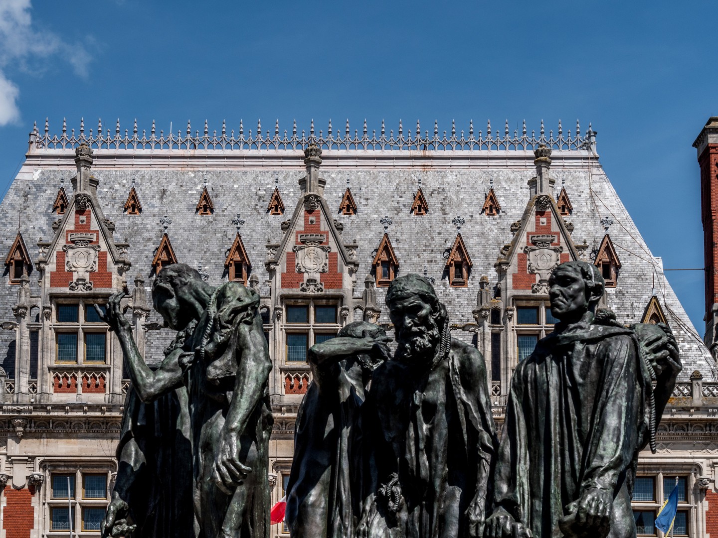 Enfin, avant de quitter la ville, nous allons saluer le plus bel ornement de l’Hôtel de ville : le groupe de statues en bronze des Bourgeois de Calais par Auguste Rodin.