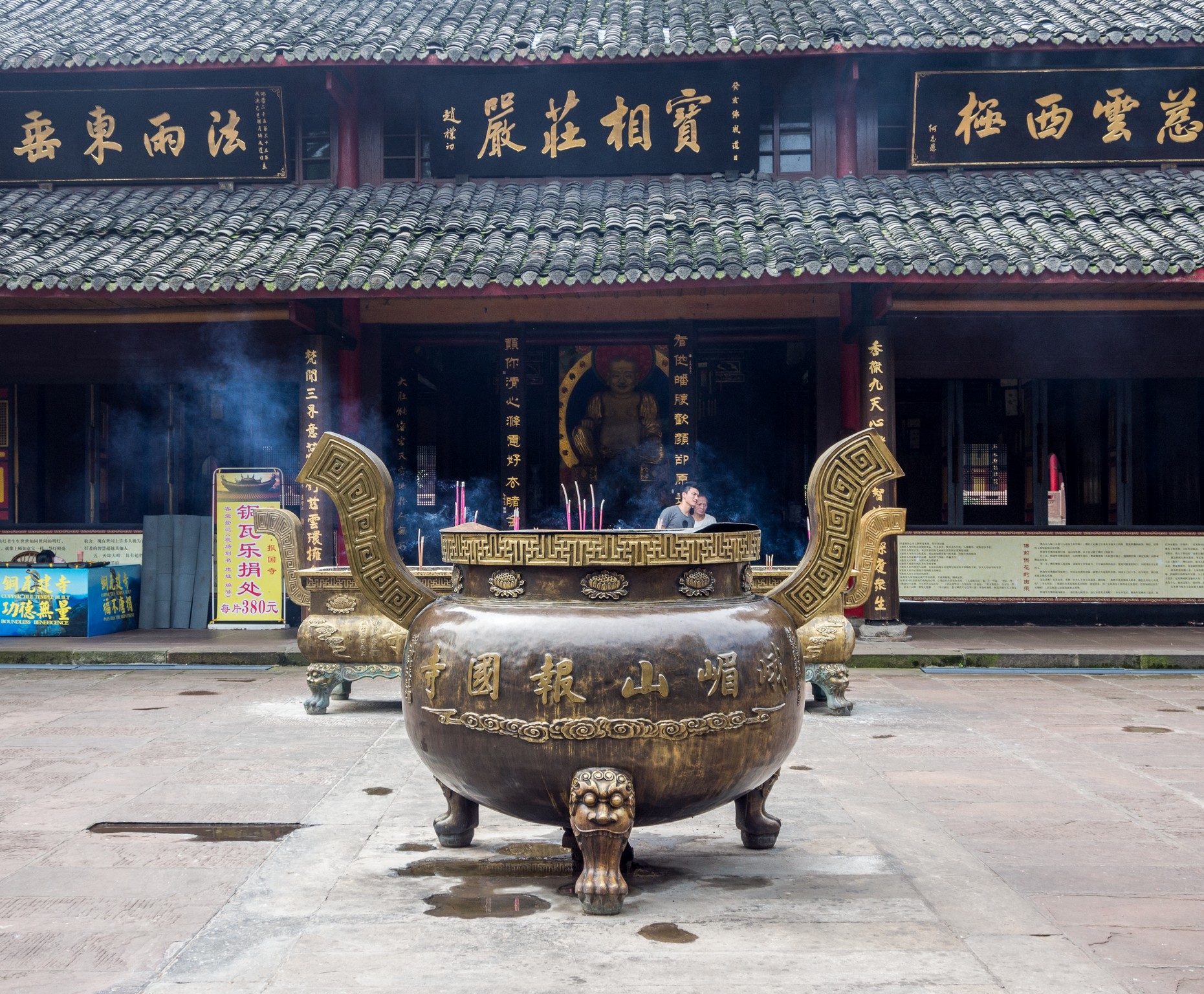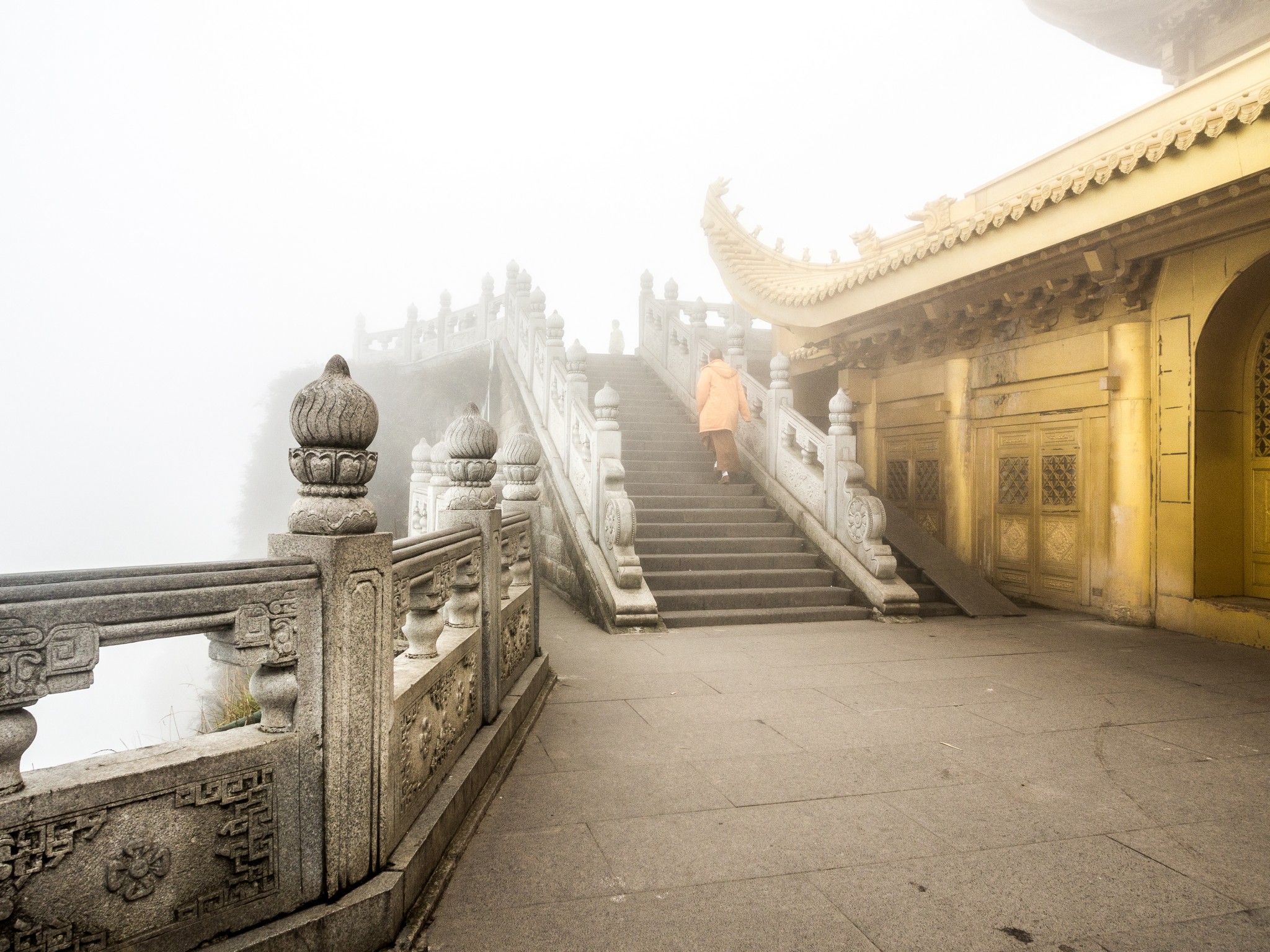Le Mont Emei (Emei shân en chinois) est l’une des quatre montagnes sacrées du bouddhisme et est inscrite au patrimoine de l’UNESCO. Elle est associée à l’éveil du boddhisatsva Samantabhadra (connu sous le nom de Pǔxián Púsà en Chine) et compte une cinquantaine de temples répartis depuis la base de la montagne, jusqu’à son sommet à plus de 3000 mètres.