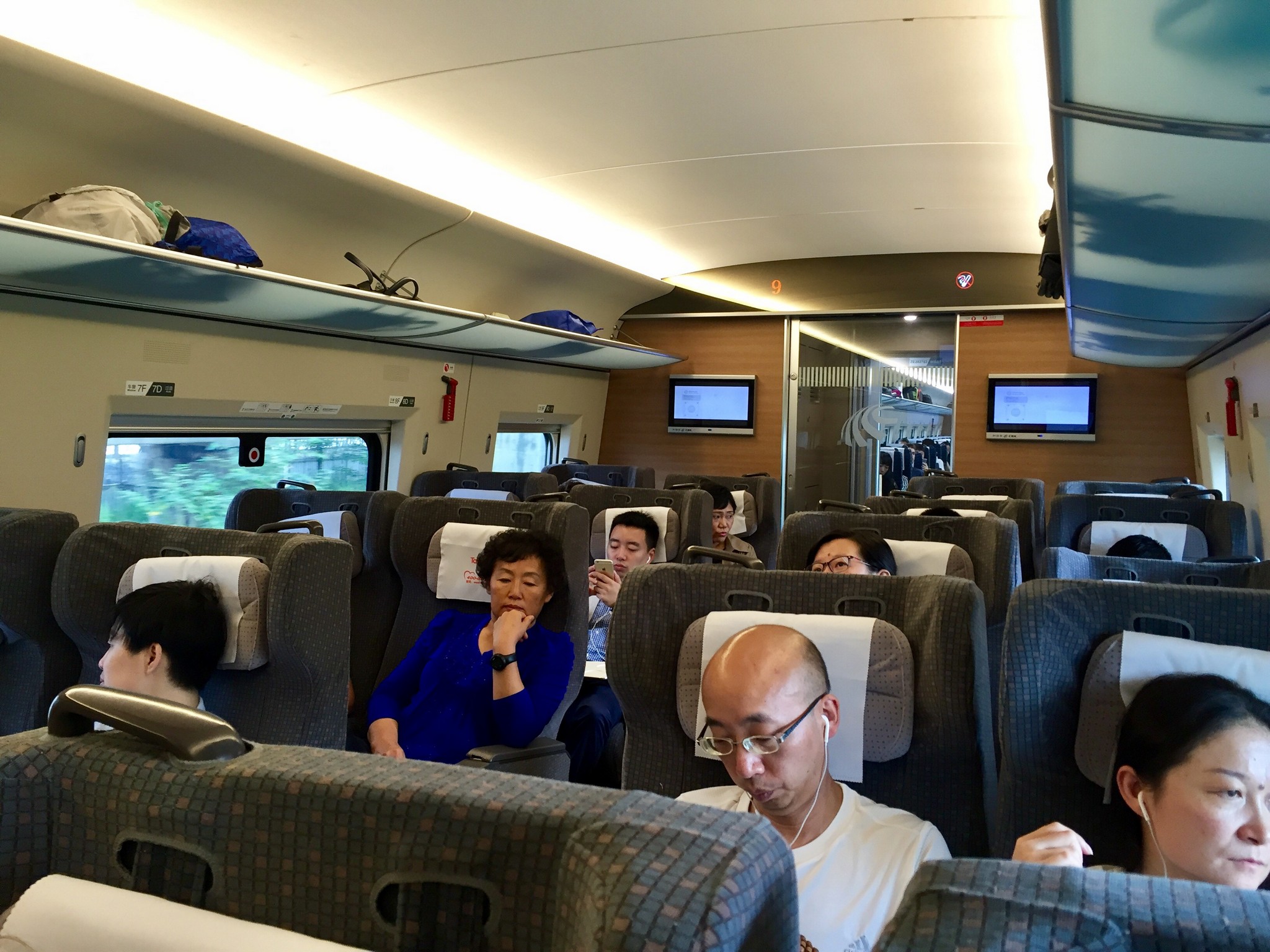 Attention, ce train nécessite une réservation et je conseille vivement de le faire bien à l’avance car ces trains se remplissent vite, surtout les trains du matin et du soir. Vous pouvez le faire à la gare (en n’oubliant surtout pas votre passeport, vous en aurez besoin pour faire votre réservation), soit en ligne (ce que nous avons fait avec https://www.travelchinaguide.com, billets livré en 48 heures en Chine. Un aller en 1ère classe vous coûtera environ 11 Euros, un billet de seconde classe, environ 10 Euros. Attention, les contrôles pour entrer dans les gares chinoises sont extrêmement poussés (un peu comme dans un aéroport)
