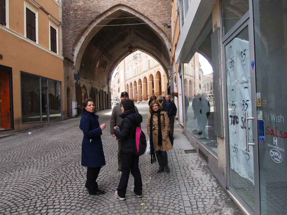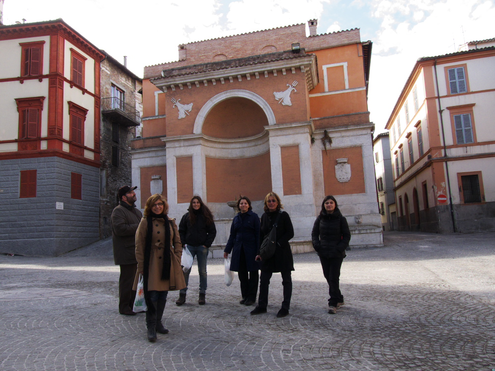 C’est ici que nos chemins se séparent. Le groupe se scinde en deux : le groupe sport et aventures quitte Fabriano, le mien, le groupe « culture » ira explorer la ville. Il se compose de Beatrice, tour operator pour une agence organisant des circuits à bicyclettes, Germa, une tour operator hollandaise qui habite en Émilie-Romagne et Camilla, une Danoise qui habite à Florence et organise des voyages basés sur la découverte des artisanats locaux.