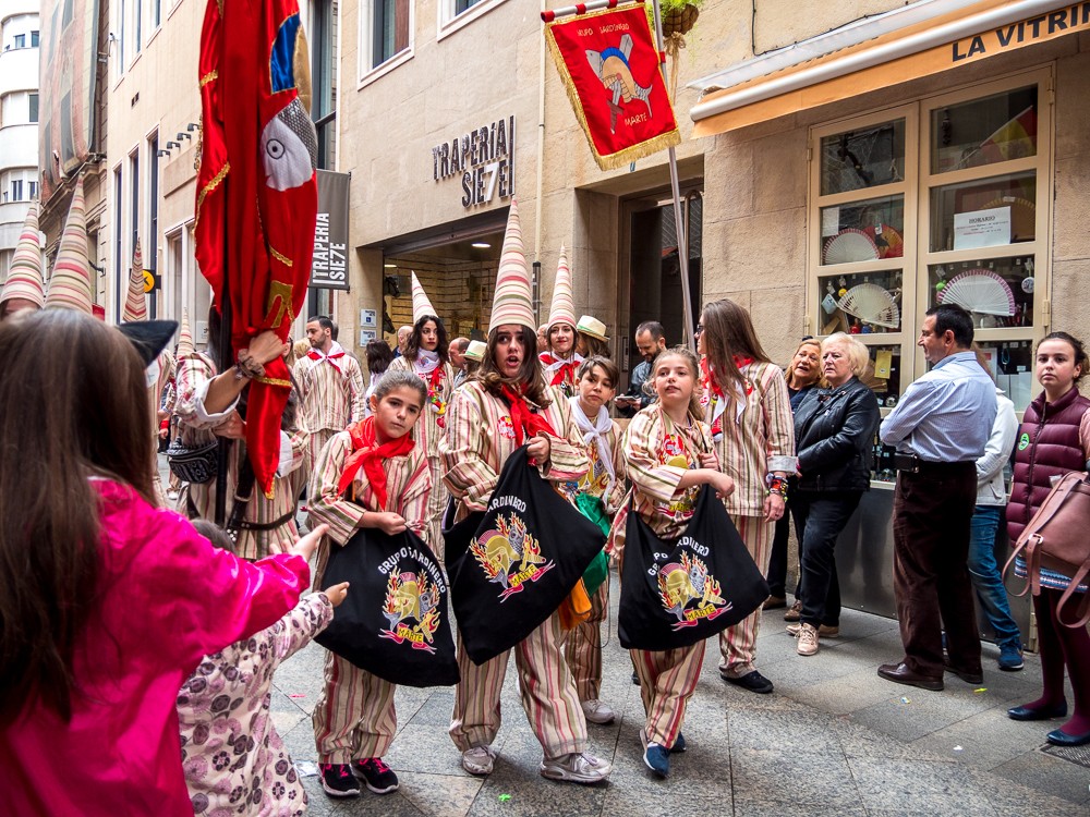 Pendant toute l’année, les confréries de sardineros et sardineras préparent la grande fête. Tous portent des noms de divinités mythologiques ou de personnages fictifs (Ulysse, Mars, Odin, Bacchus, Céres, etc…), symbolisant le caractère non-religieux de l’événement. On reconnaît facilement les sardineros et sardineras à leurs chemises bouffantes en satin de couleurs vives. Ce sont eux, les principaux acteurs. Ils sont accompagnés des hachoneros et hachoneras, des personnages habillés de tunique rayées, d’un chapeau conique et pourtant un foulard servant à dissimuler leurs traits. On les verra souvent porter des flambeaux lors des nombreux défilés. Sans doute une petite référence aux pénitents masqués qui défilent en cortège dans différents coins d’Espagne avant la Semaine Sainte ?