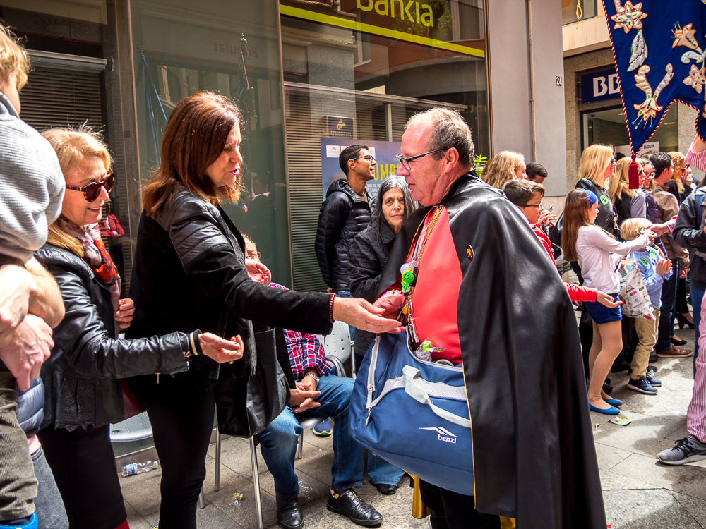C’est le jeudi que démarrent réellement les festivités avec l’arrivée de la sardine en ville, à laquelle je n’ai pas assisté. Chaque année, la sardine est « offerte » à Murcia par une autre ville de la région et son entrée en ville accompagnée des confréries est le grand signal que la fête peut commencer.