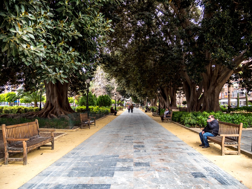 Pour rejoindre le Centre depuis l’hôtel, on prend d’abord plaisir à traverser les jardins de Floridablanca, un agréable parc rempli de figuiers centenaires avant de rejoindre le Puente de los Peligros. C’est le plus vieux pont de la ville mais pas le seul à enjamber la Segura, le petit fleuve qui traverse Murcia. Et dans la rivière, les bateaux sont de sorties, pour le plaisir, et aussi pour s’approcher du monument à la Sardine.