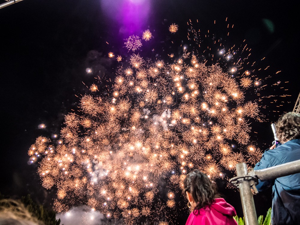 Le dernier char passé, tout le monde se dépêche d’atteindre les environs du Catafalque pour l’apothéose : l’incinération de la Sardine. Tout à coup, différents pétards sont déclenchés sur toute la hauteur du catafalque et le feu est bouté immédiatement. La structure en papier mâché, est engouffrée dans les flammes. Même à bonne distance, je peux sentir la chaleur d’un feu ardent sur mes joues. Pendant que l’hymne de la Sardine résonne sur la place, son image finit par être consumée et des braises et morceaux de papiers incandescents volent dans la nuit comme autant de luciole. Quand la sardine est brûlée, les pompiers interviennent et une fois le feu éteint, on rend à la Sardine son tout dernier hommage sous la forme d’un immense feu d’artifice (ça fera trois en un peu plus de 24 heures, pas mal !).