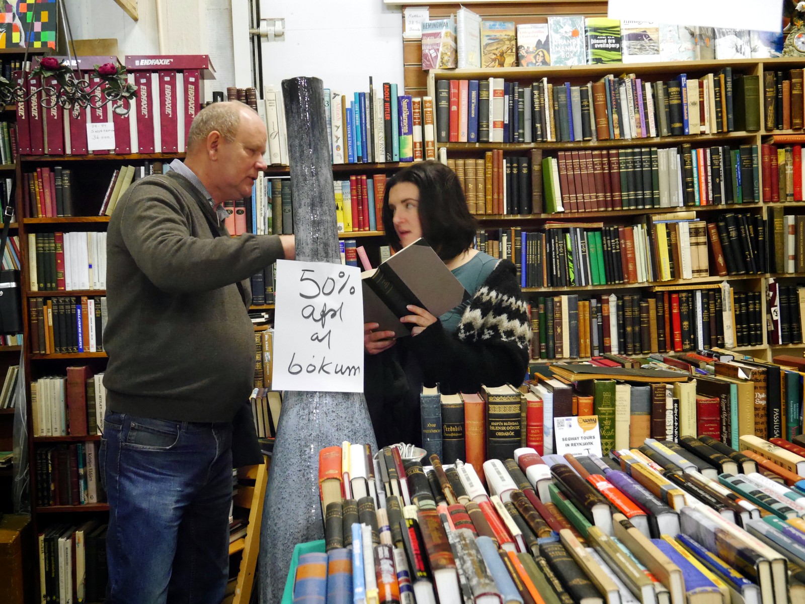 C’est dans ce grand marché couvert que se retrouve tout Reykjavík, sans distinction d’âge ou de classe (même si la société islandaise est plutôt très égalitaire à la base). La crise bancaire de 2008 a encore augmenté sa popularité. On y trouve de tout : matériel électronique d’occasion, vaisselle, livres, objets de déco, vêtements et surtout : les fameux pulls en laine ! C’est ici que Sophie vient se rhabiller mais même si les prix sont négociables, n’espérez pas descendre en dessous de 80 €. Sophie, qui apprend l’islandais, s’attarde au rayon des livres, à la recherche d’un ouvrage facile à lire.