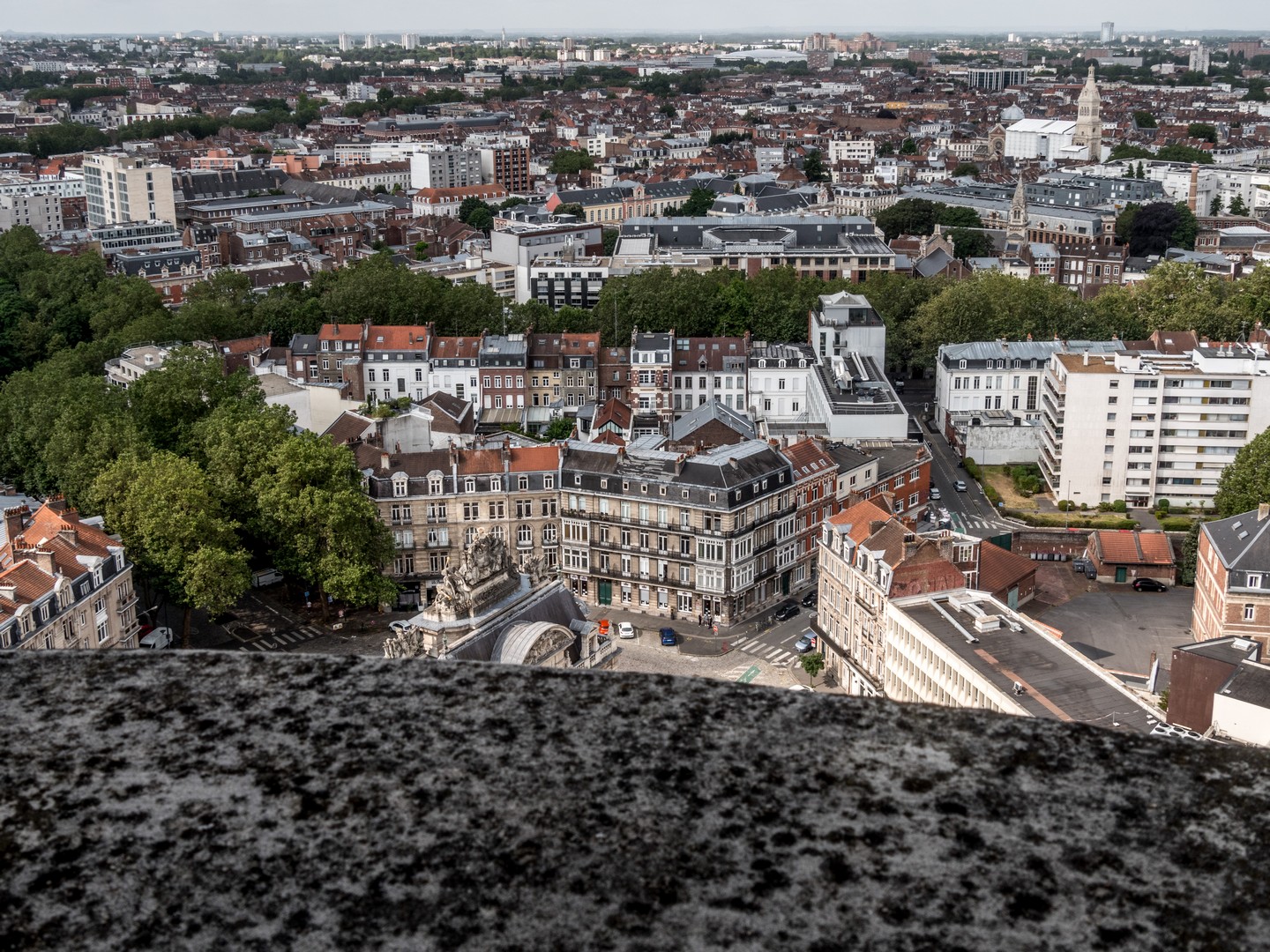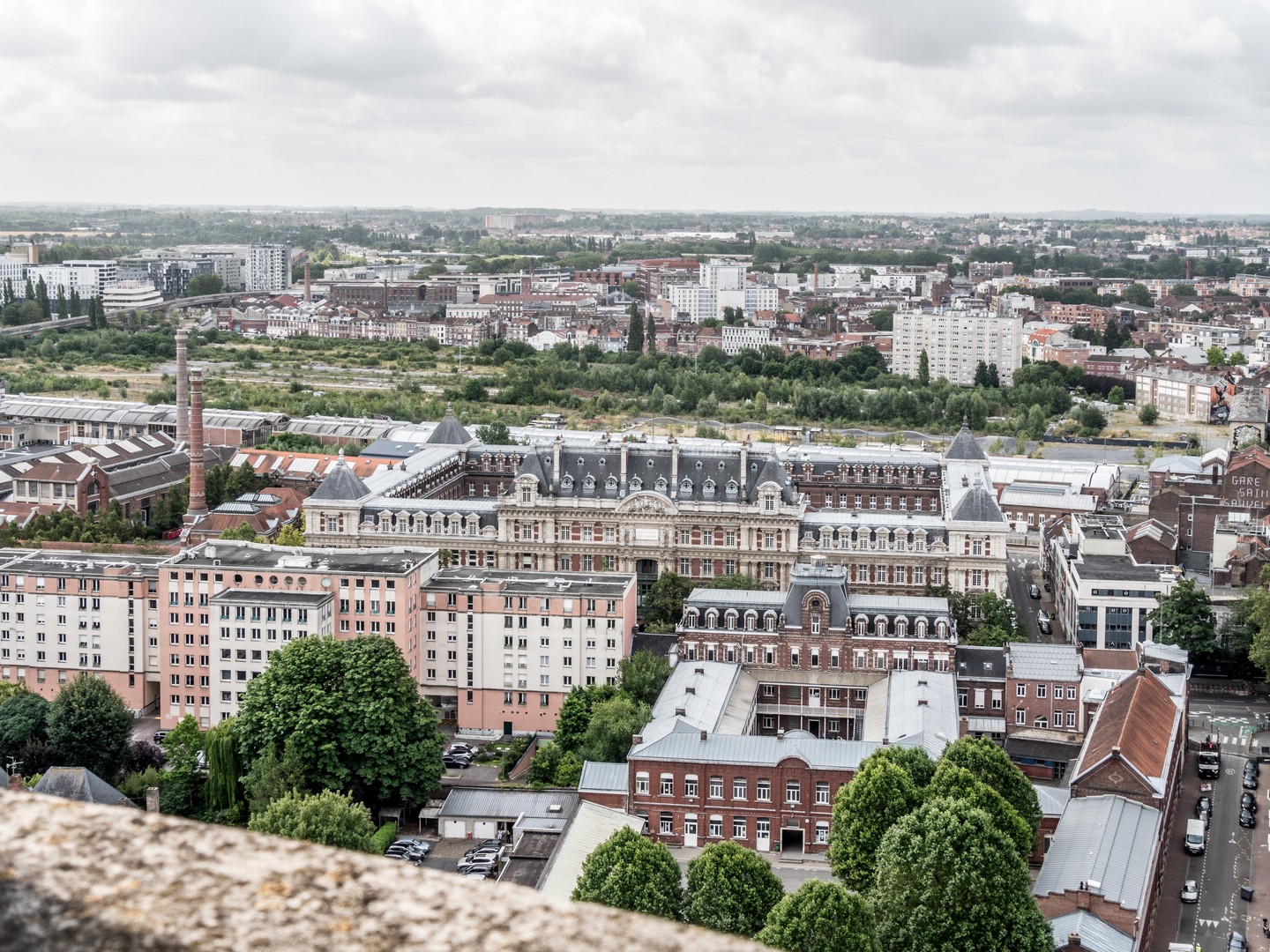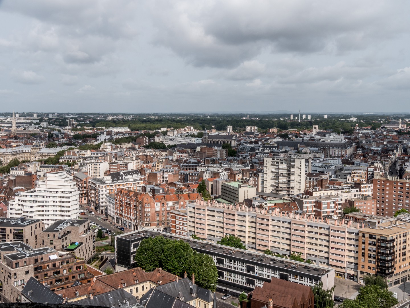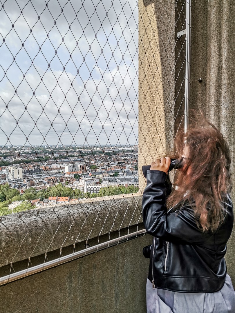 Les plus sportives et sportifs pourront monter les escaliers à pied. Heureusement, vous pourrez profiter des paliers explicatifs sur la construction du beffroi, l’Art déco, etc. pour faire une pause. Heureusement, pour les feignasses comme nous, il y a un ascenseur ! La vue est évidemment époustouflante depuis le sommet. On peut admirer le Quartier Saint-Sauveur, tout proche l’élégante Porte de Paris, le tissu urbain du Vieux-Lille, la quartier d’Eura-Lille et au loin, des collines qui me semblent être des terrils à première vue.