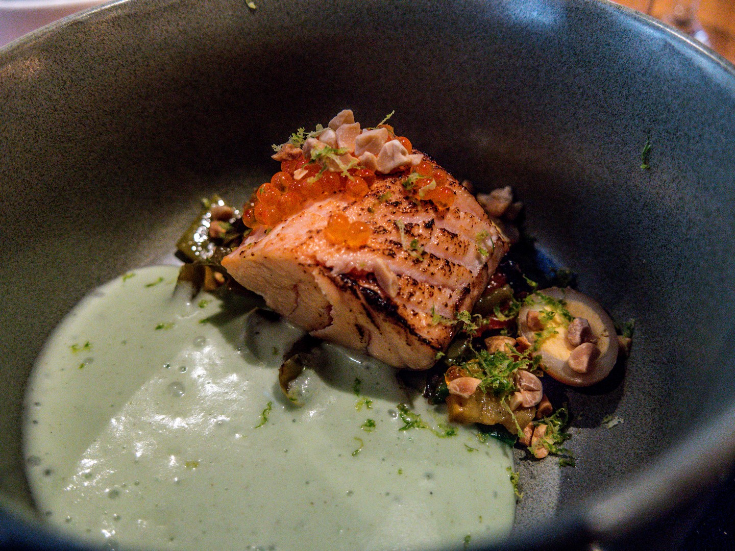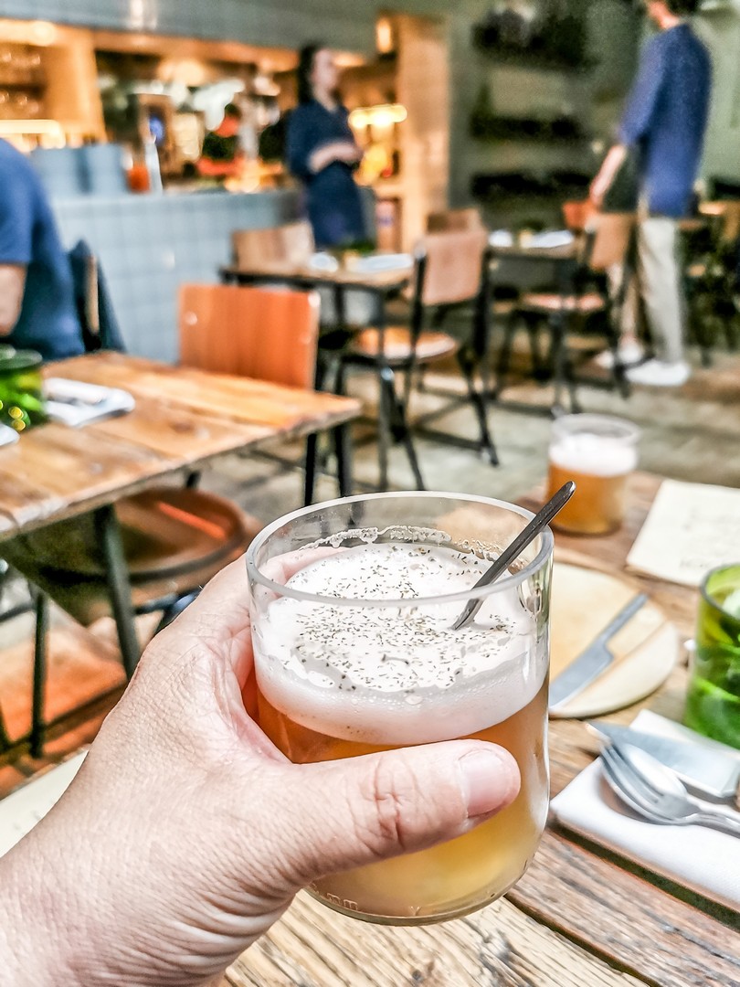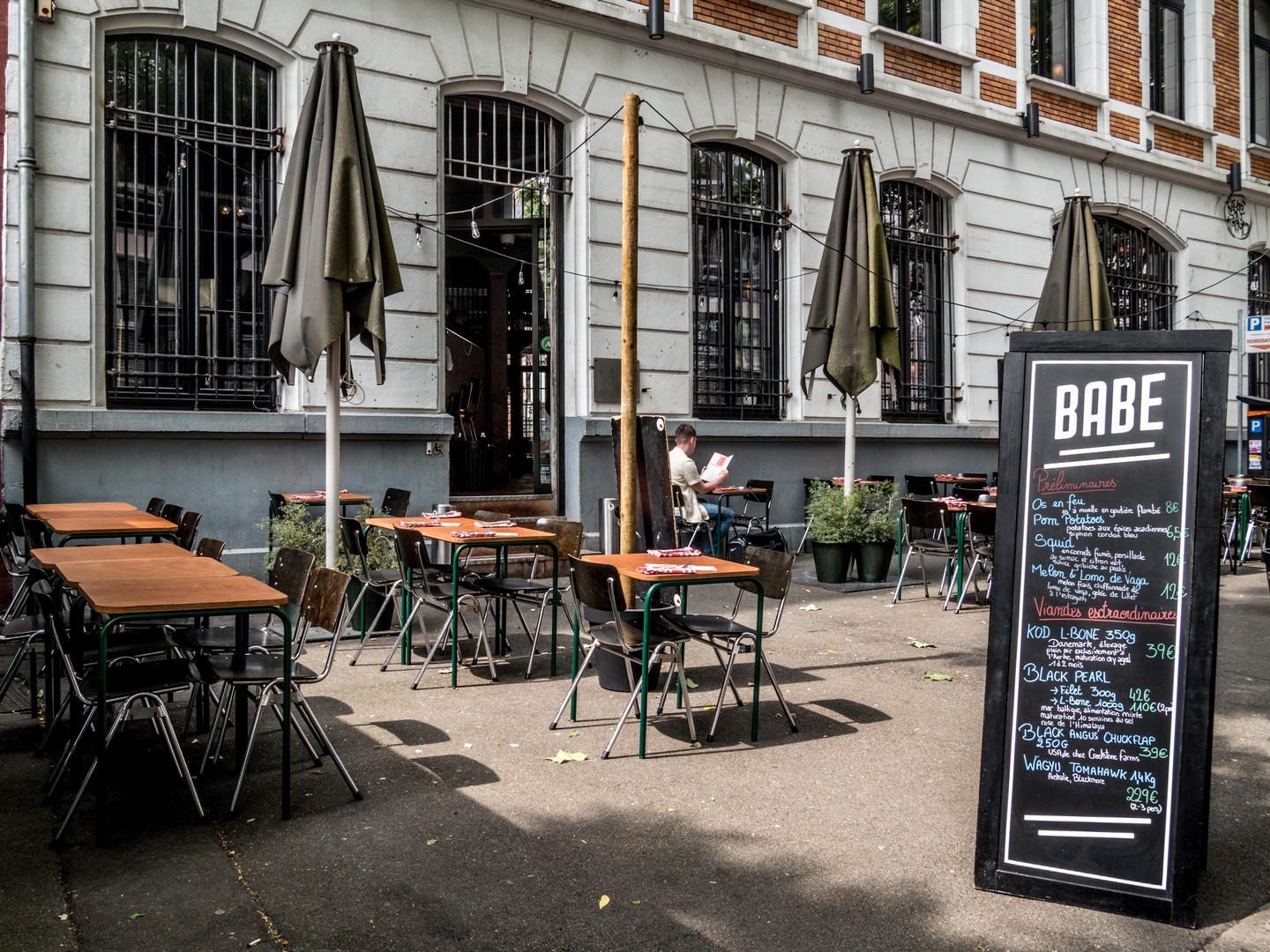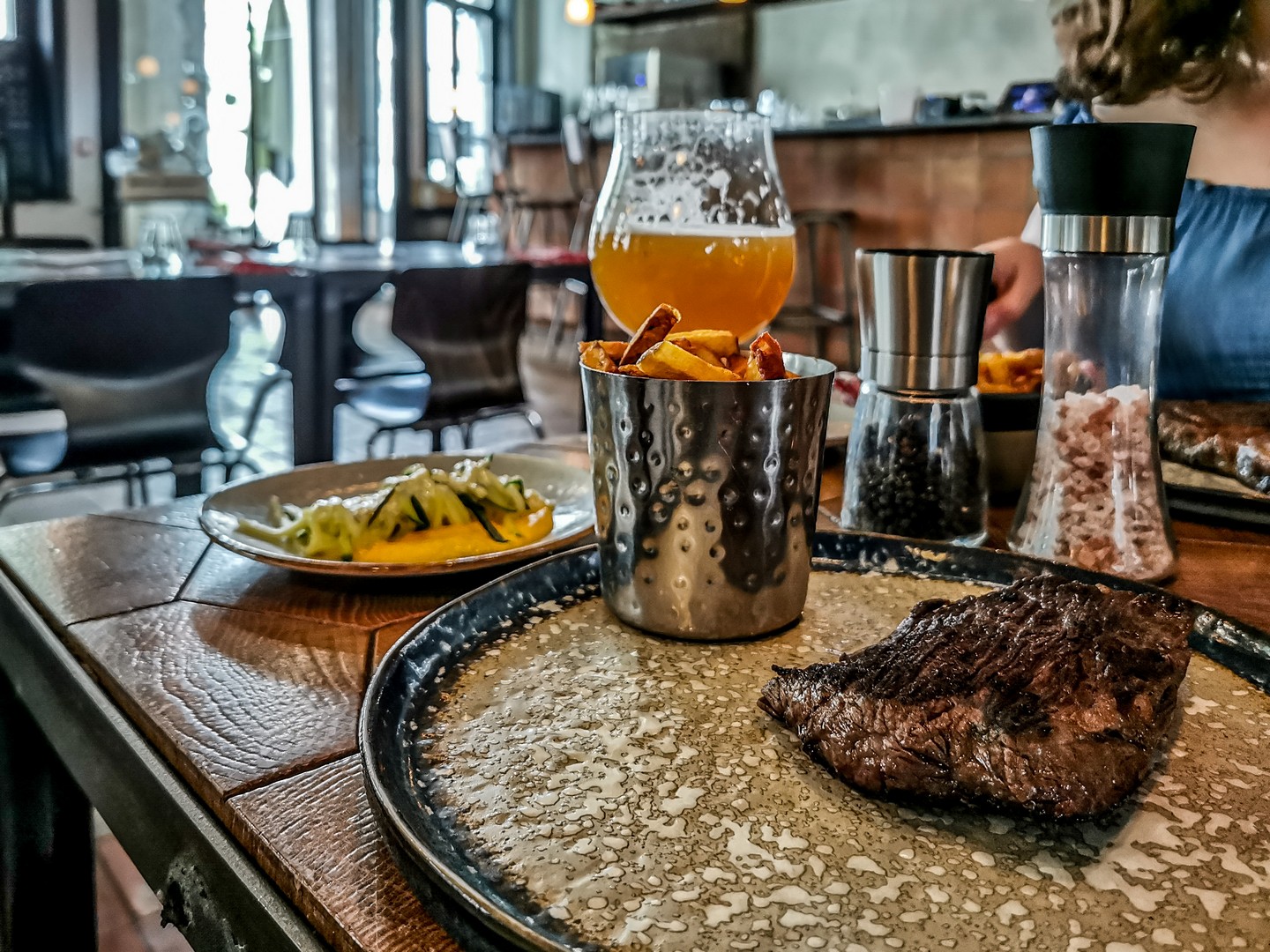 Amoureux de la viande, Babe est votre repère. Ici, le bœuf de races nobles est mis en avant. Entrecôte d’Angus, tomahawk de Wagyu, L-bone de 𝐊ø𝐝 (une race danoise)… La déco impressionne aussi : la salle est très grande avec de hauts plafonds, rythmée par des piliers. Le carrelage de tuiles vernissées semble être fait de cuir. Et même les tables sont carrelées. J’ai opté pour la bavette de Wagyu (qui était la proposition du jour) et le résultat était conforme à mes attentes : cuit à la perfection, avec un bon goût de grillé, tendre comme du beurre… Miam ! Comme la devise du Babe est « Boire. Manger », je n’étais pas étonnée d’y trouver une longue liste de bières artisanales, dont une grosse partie au fut donc, si la viande ne vous tente pas, vous pourrez toujours y boire un verre !