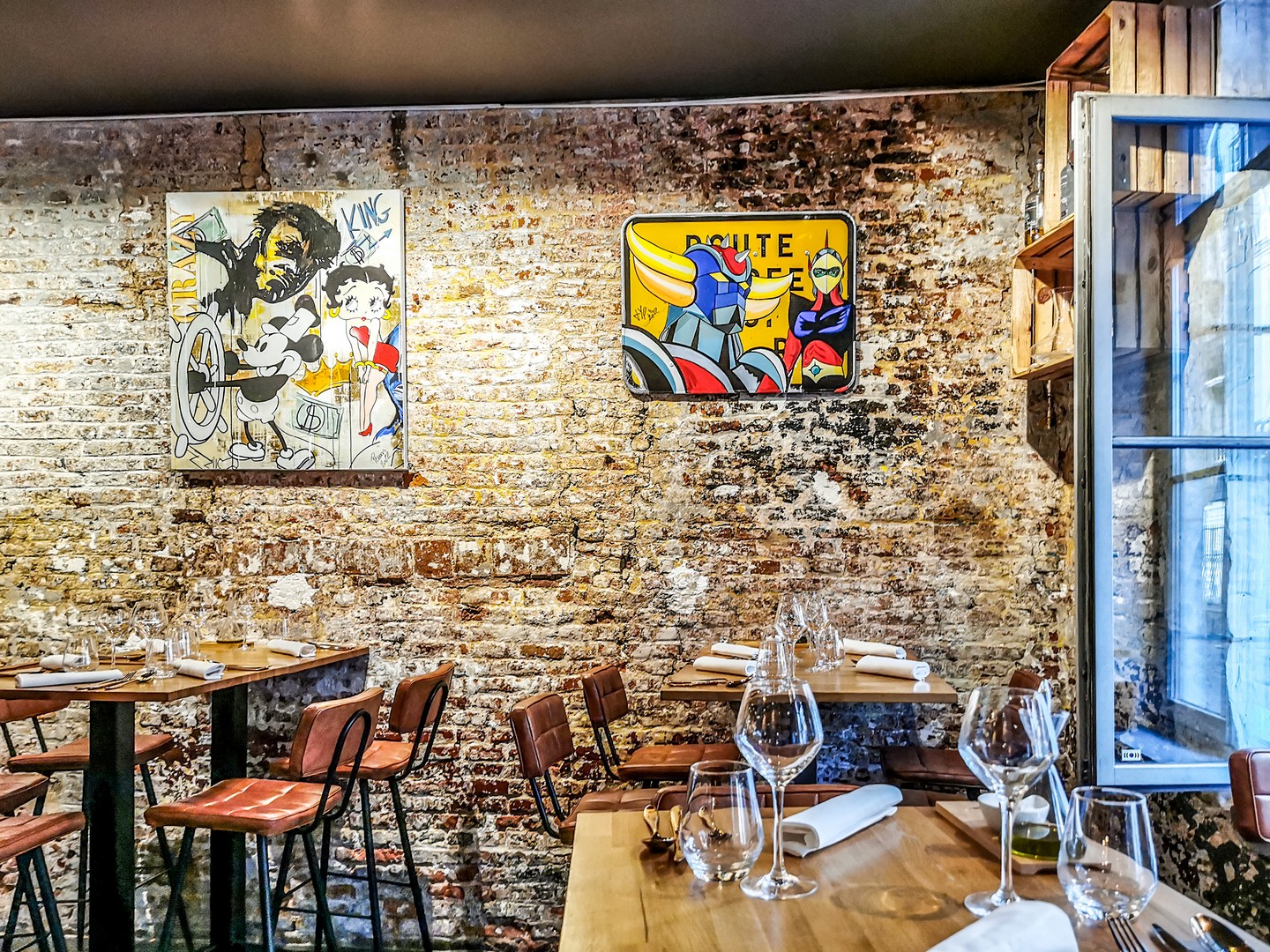 Restaurant bistronomique dans la même rue que le Bloempot, Chez Brigitte est un endroit qui ne se prend pas la tête avec son look entre le speakeasy et la caverne de GeXer nostalgique (coucou, Goldorak qui pend au mur).