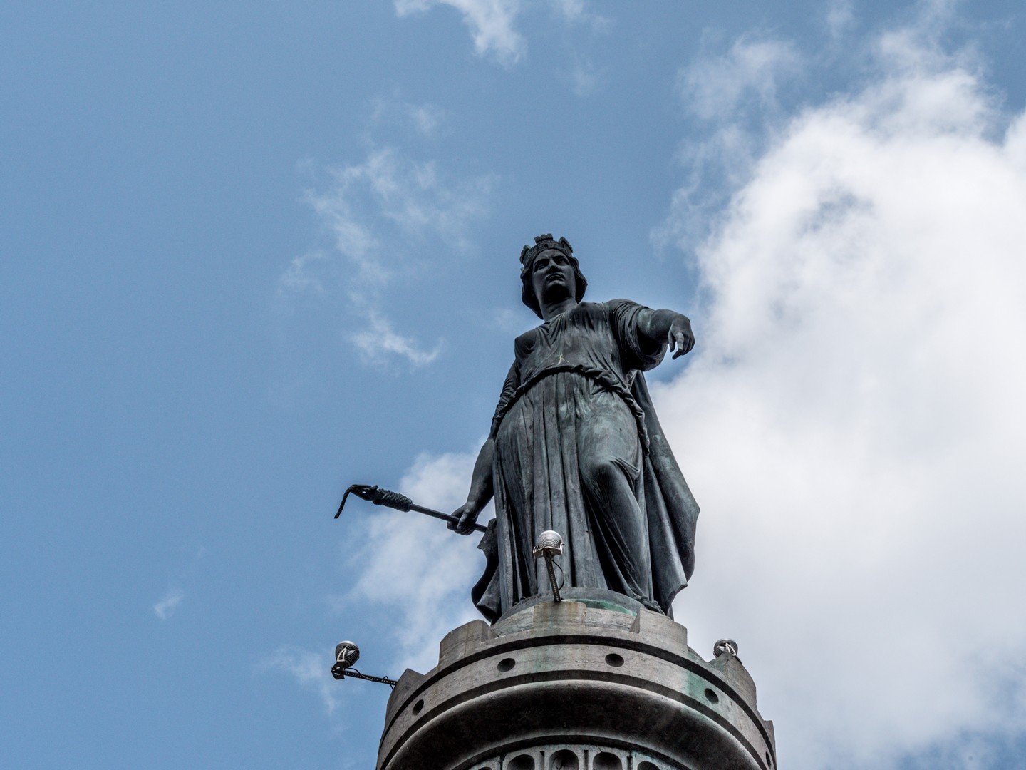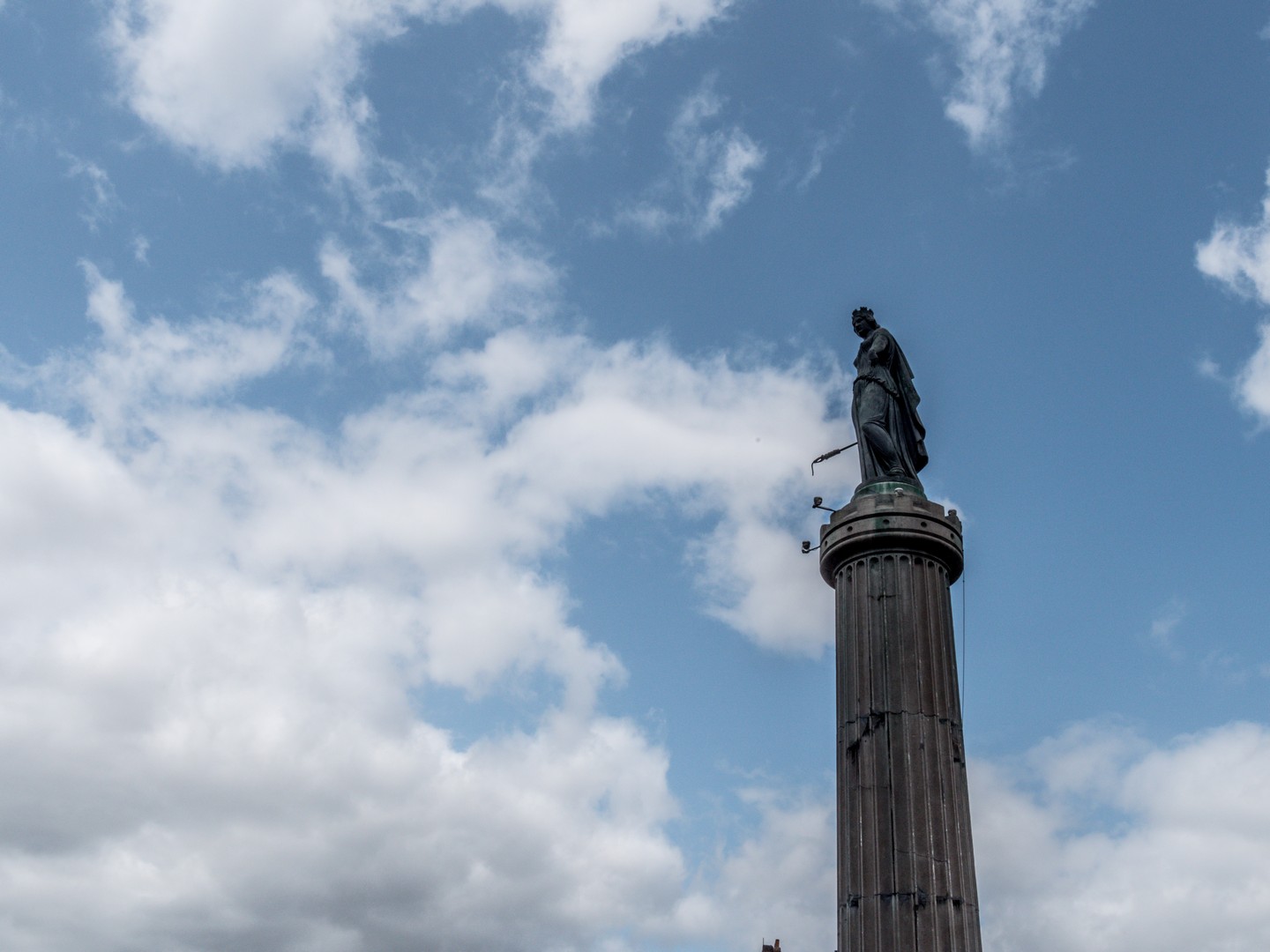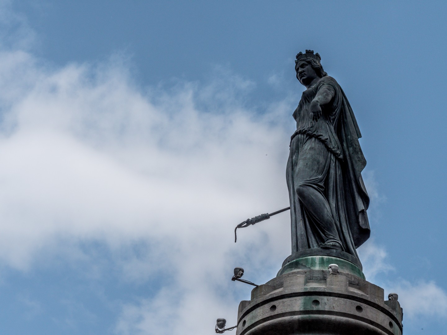 Après avoir traversé la Place Rihour, nous voilà sur celle qui est officiellement la « Place Charles de Gaule » mais que personne n’arrive à appeler autrement que la Grand’Place. Ce large rectangle pavé est entouré de bâtiments plus ou moins anciens et en son centre, trône La Déesse sur sa colonne, une allégorie de la Ville de Lille a l’air particulièrement martiale. Si vous zoomez avec votre appareil photo, vous verrez qu’elle n’a pas l’air contente et porte à bout de bras un boute-feu. Cette statue de Théophile Bra, sculpteur douaisien, est un hommage à l’héroïsme des Lillois lors du siège de Lille de 1792 par les armées impériales autrichiennes.
