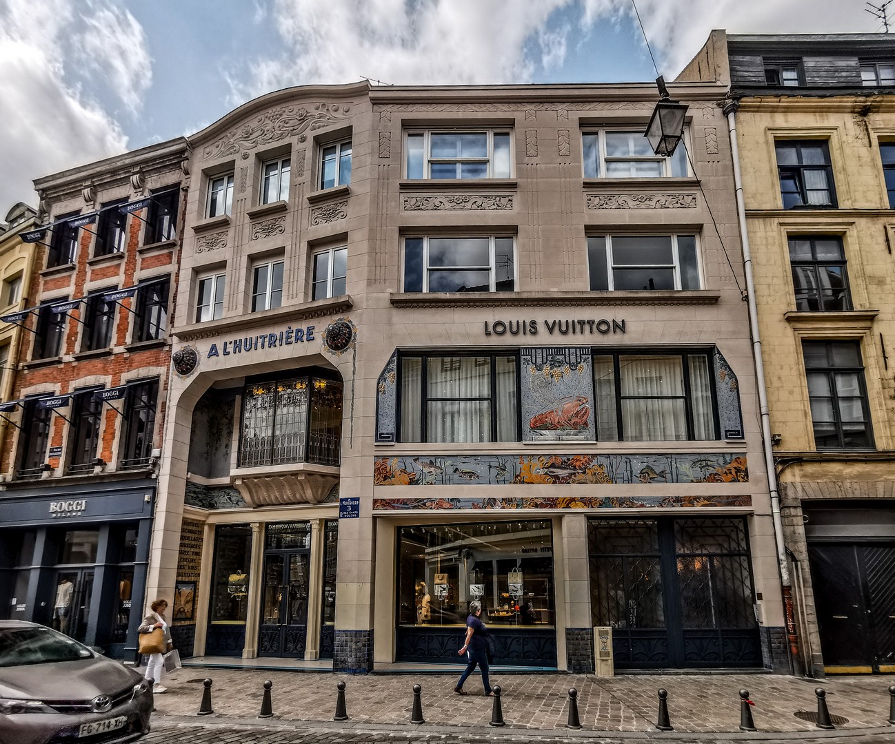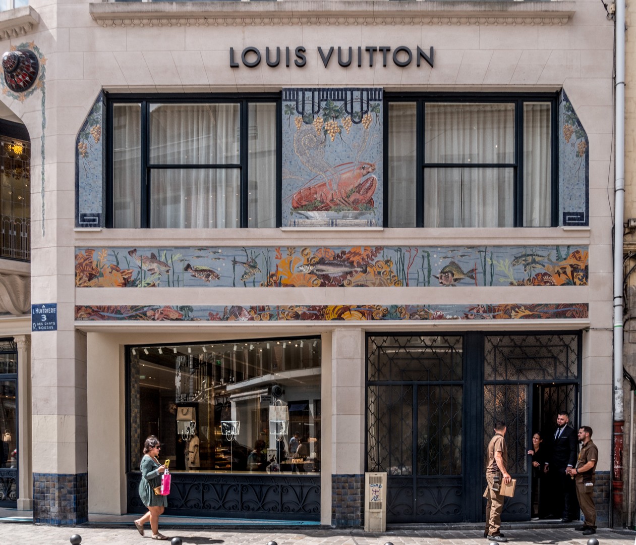Pas très loin de là, arrêtez-vous un instant pour admirer la superbe façade Art déco de la boutique Louis Vuitton. Le bâtiment était sans aucun doute une poissonnerie.