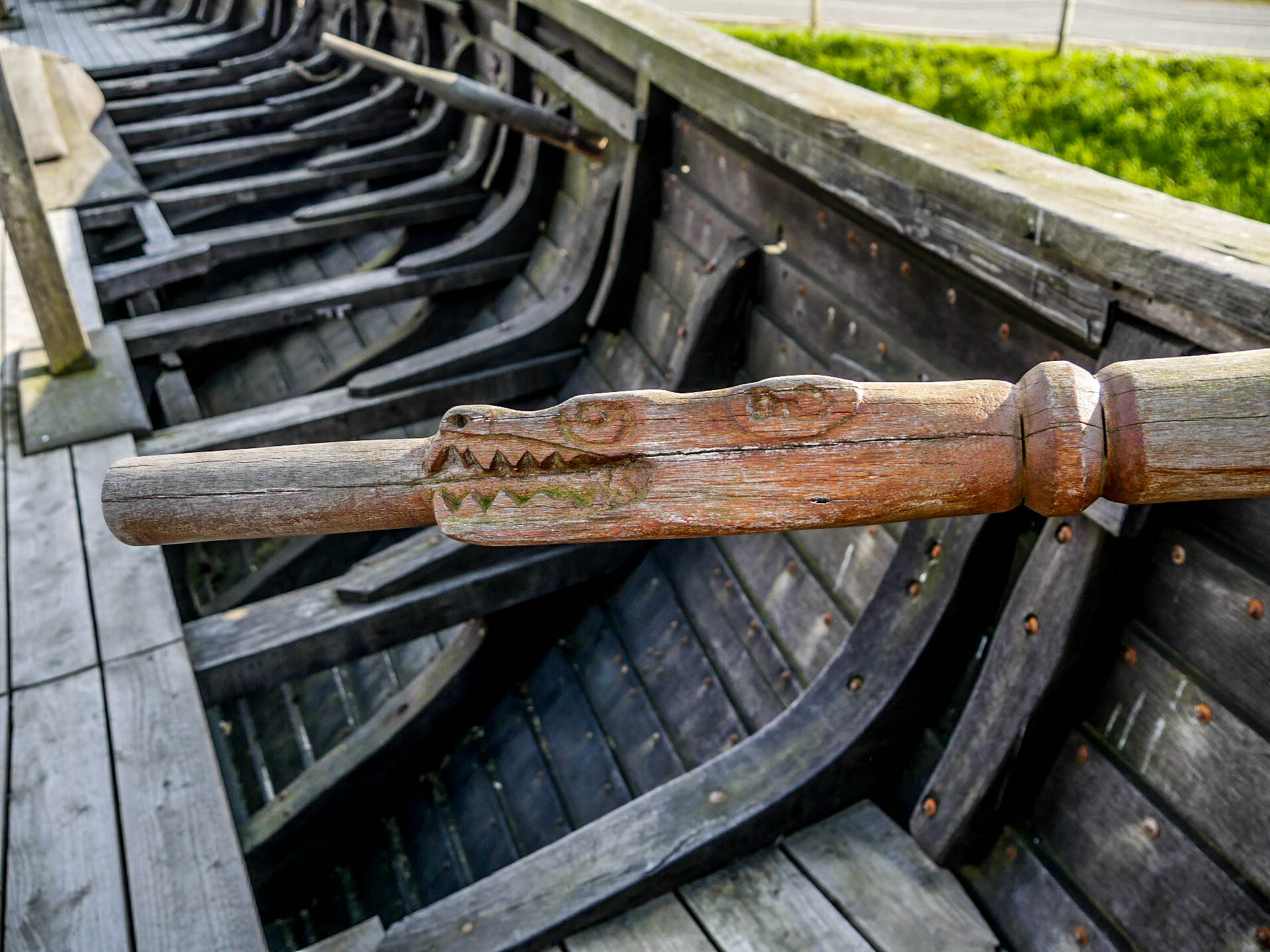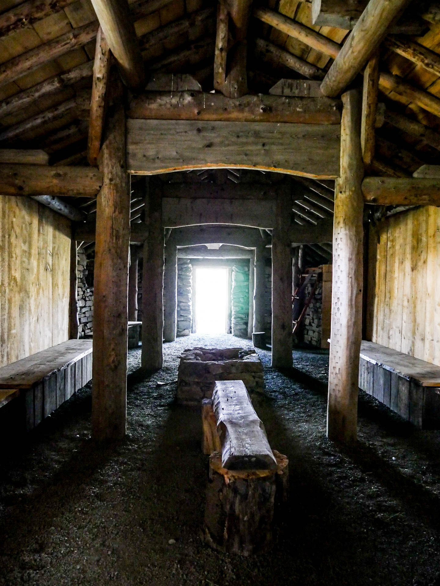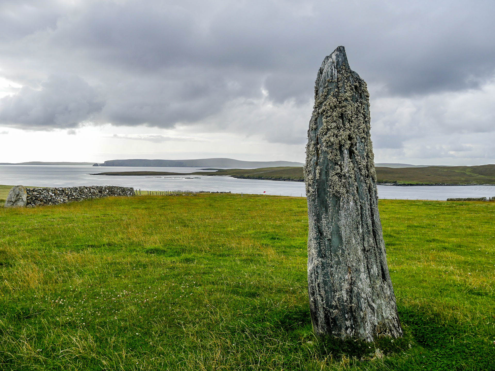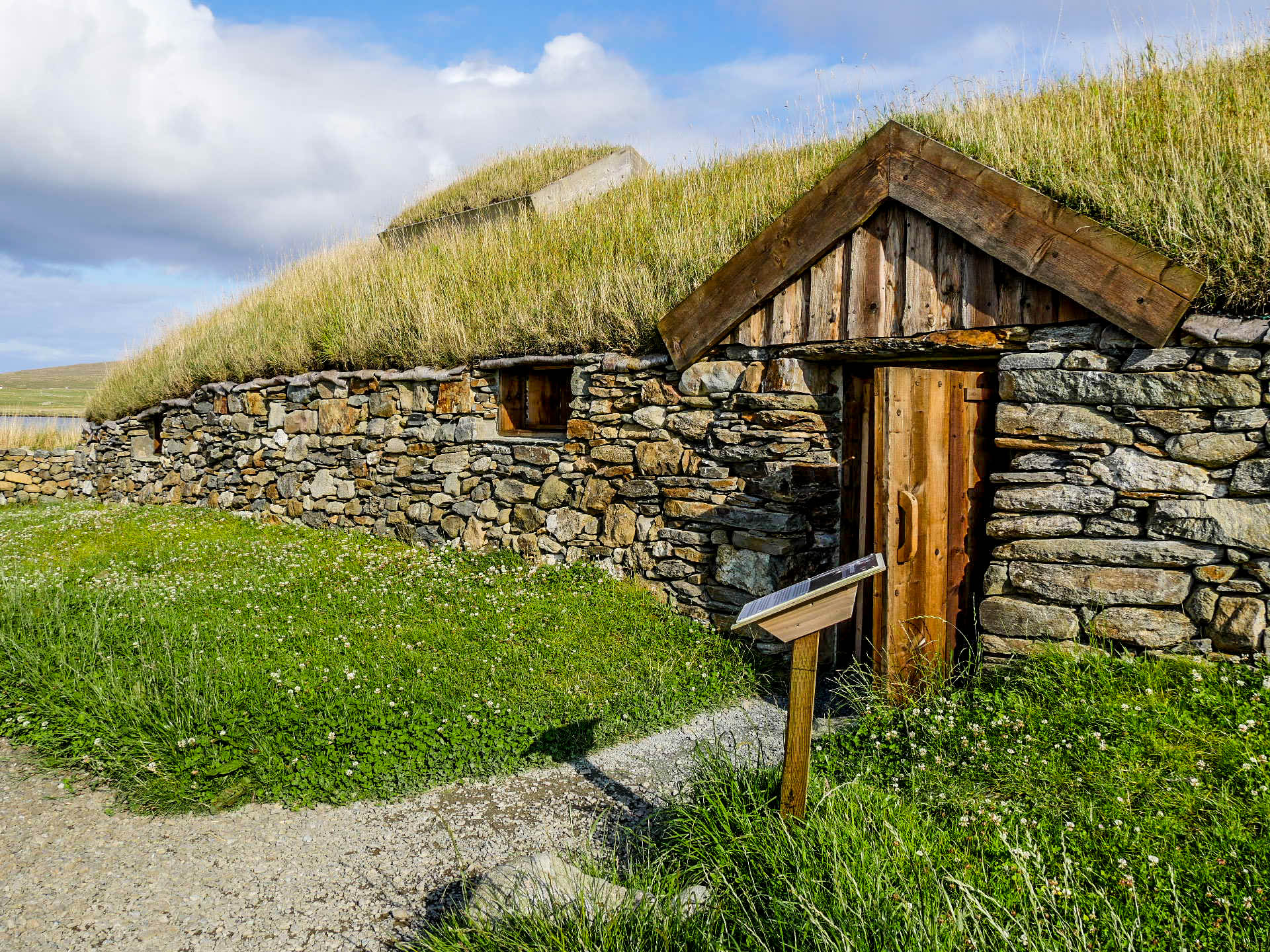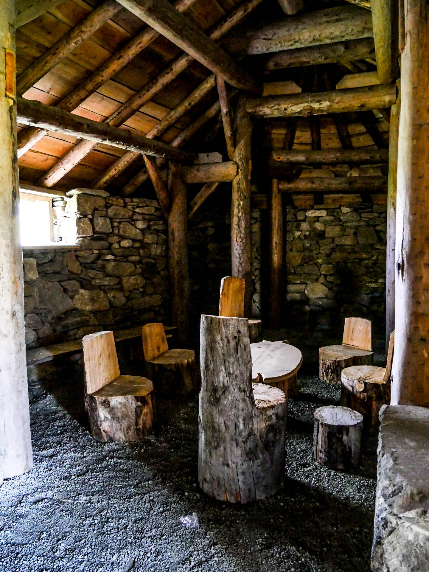 De l’autre côté de la petite baie, un bateau viking se tient à quai : c’est le Unst Viking Project, une reconstitution non seulement d’un navire, un skidbladner, mais aussi, d’une « longhouse », ces grandes maisons typiques de cette culture : mur de pierres, toit végétal, table et chaises découpée dans le bois… C’est assez agréable. Le concept du hygge était-il déjà présent à l’époque ? Je ne m’aventurerai pas jusque-là mais le grand mérite du Viking Project, c’est de donner une meilleure vision de l’environnement et le mode de vie viking que de simples ruines. On pourra même un peu jouer à se prendre pour d’intrépides marins, prêtes à découvrir de nouvelles terres et aller en piller d’autres.