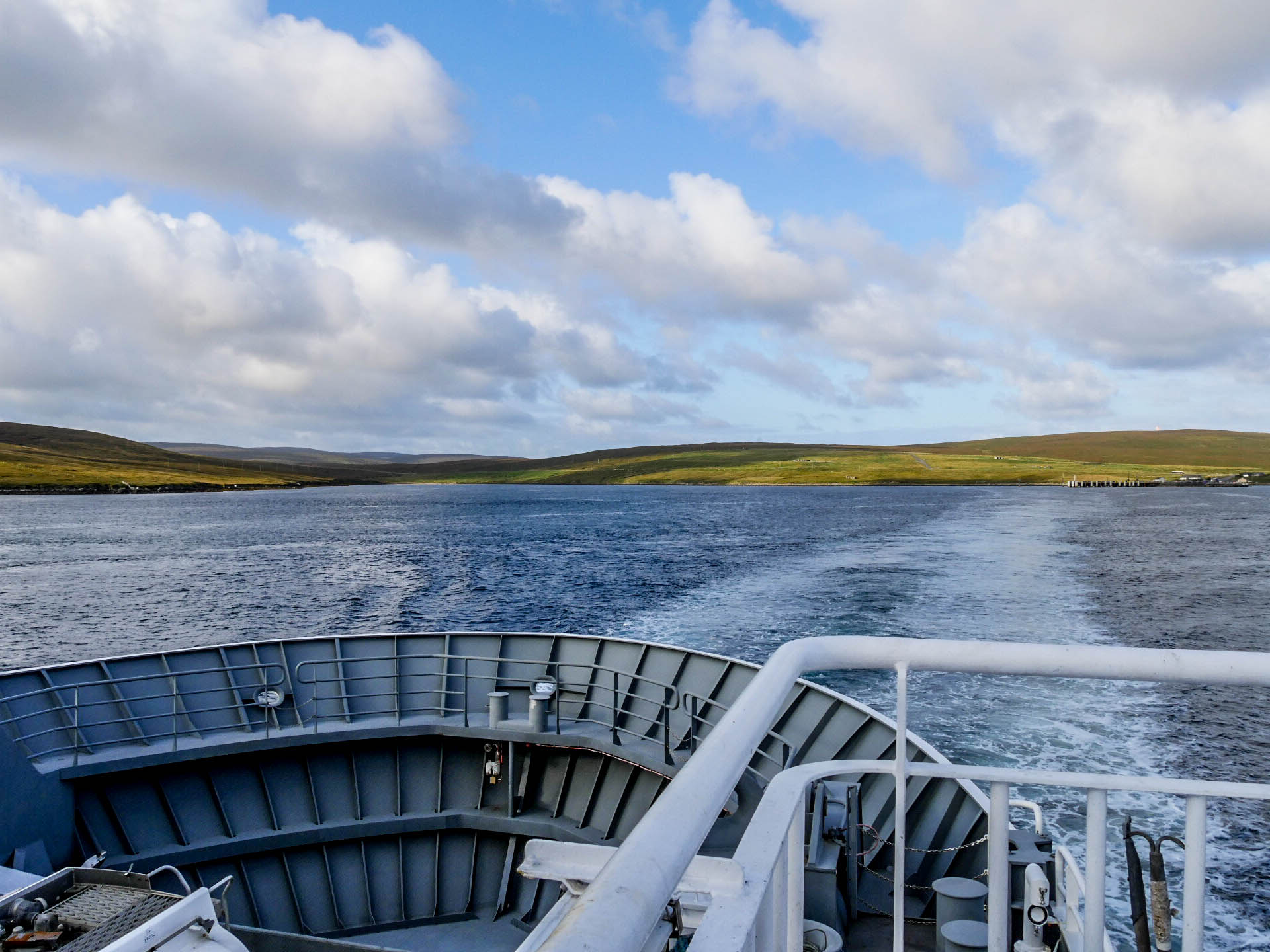 Le retour vers Yell et Lerwick se fait à 7h54 depuis Baltasound.