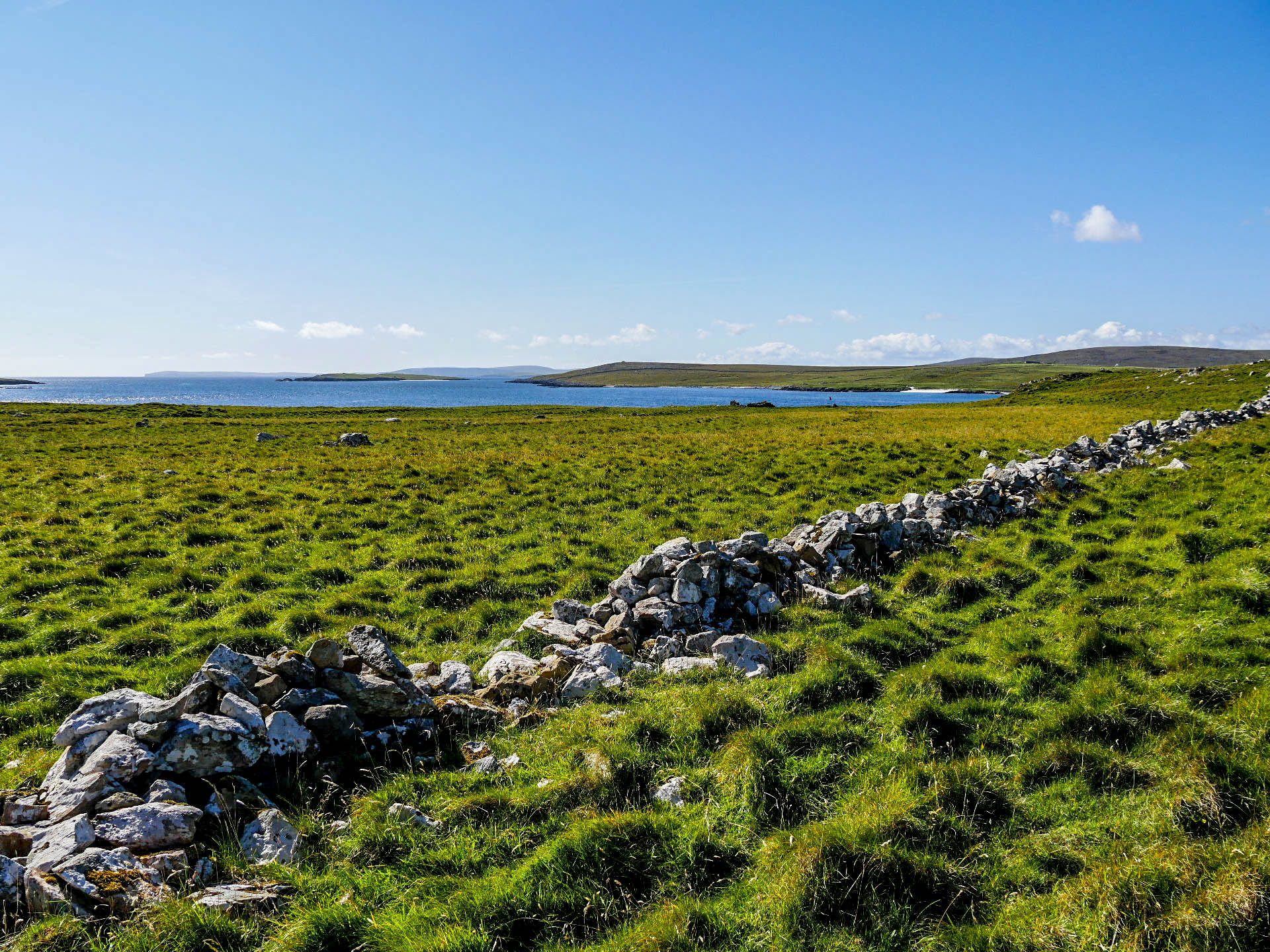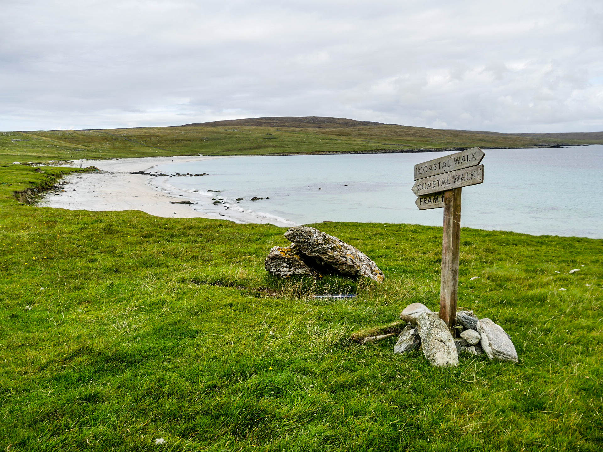 Comme nous sommes dans le coin, nous allons en profiter pour passer voir Sandwick Beach, le point de départ d’une randonnée le long de la côte où se trouvent quelques ruines viking,