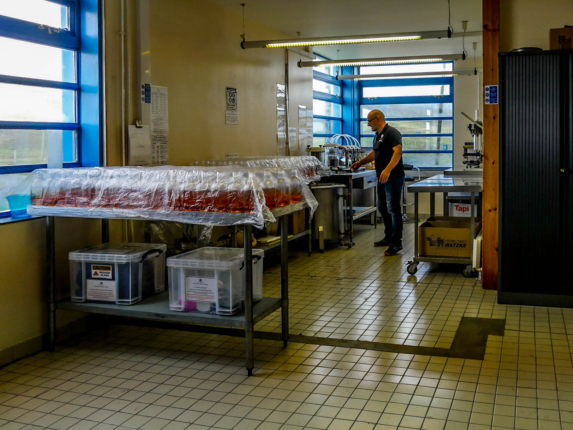 Nous allons devoir reprendre la route puisque nous avons rendez-vous à l’heure de l’apéro dans l’unique distillerie à gin des Shetland : Shetland Reel. Reel a la particularité d’utiliser de botanicals natives de l’île. Comme par exemple un certain type d’algue ou de la menthe à feuille ronde, une menthe sauvage très douce. On aura l’occasion de tout goûter (avec une extrême modération, même si je me réjouis de ne pas savoir conduire). Une petite production qui remporte pas mal de succès et un goût un peu iodé surprenant pour l’édition faite avec de l’algue, qui traduit bien ce que sont les Shetland. Un des seuls moments aussi où nous nous sommes retrouvées avec d’autres touristes. La visite se fait en toute décontraction et si vous aimez le gin, c’est le moment de rapporter quelques bouteilles. La distillerie s’est aussi mise récemment à produite du whisky.