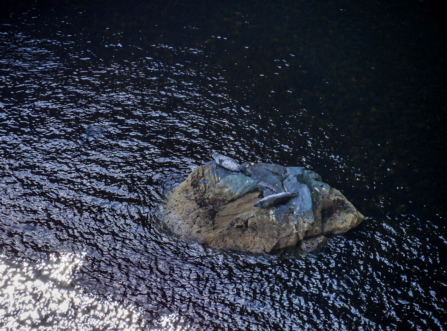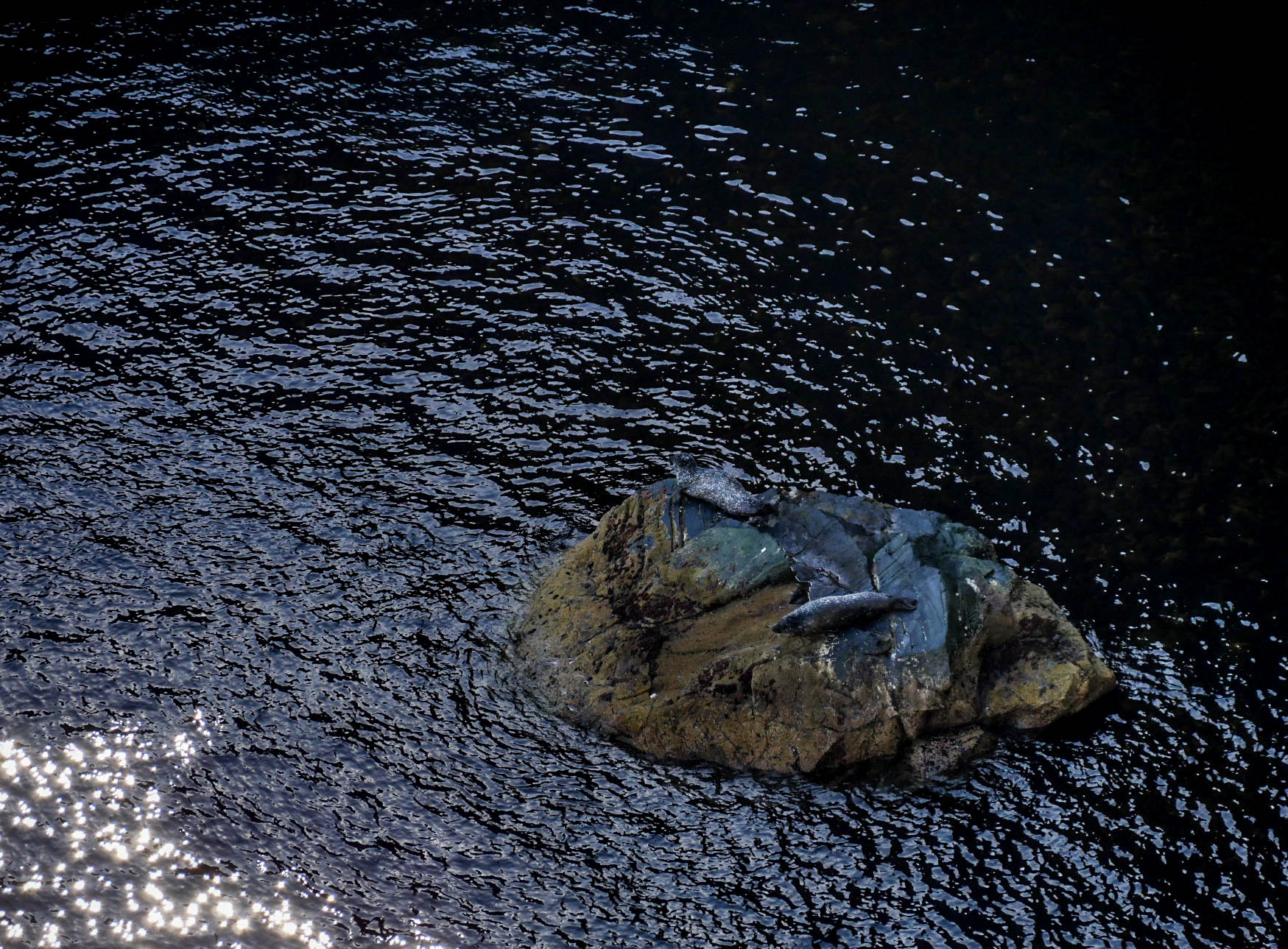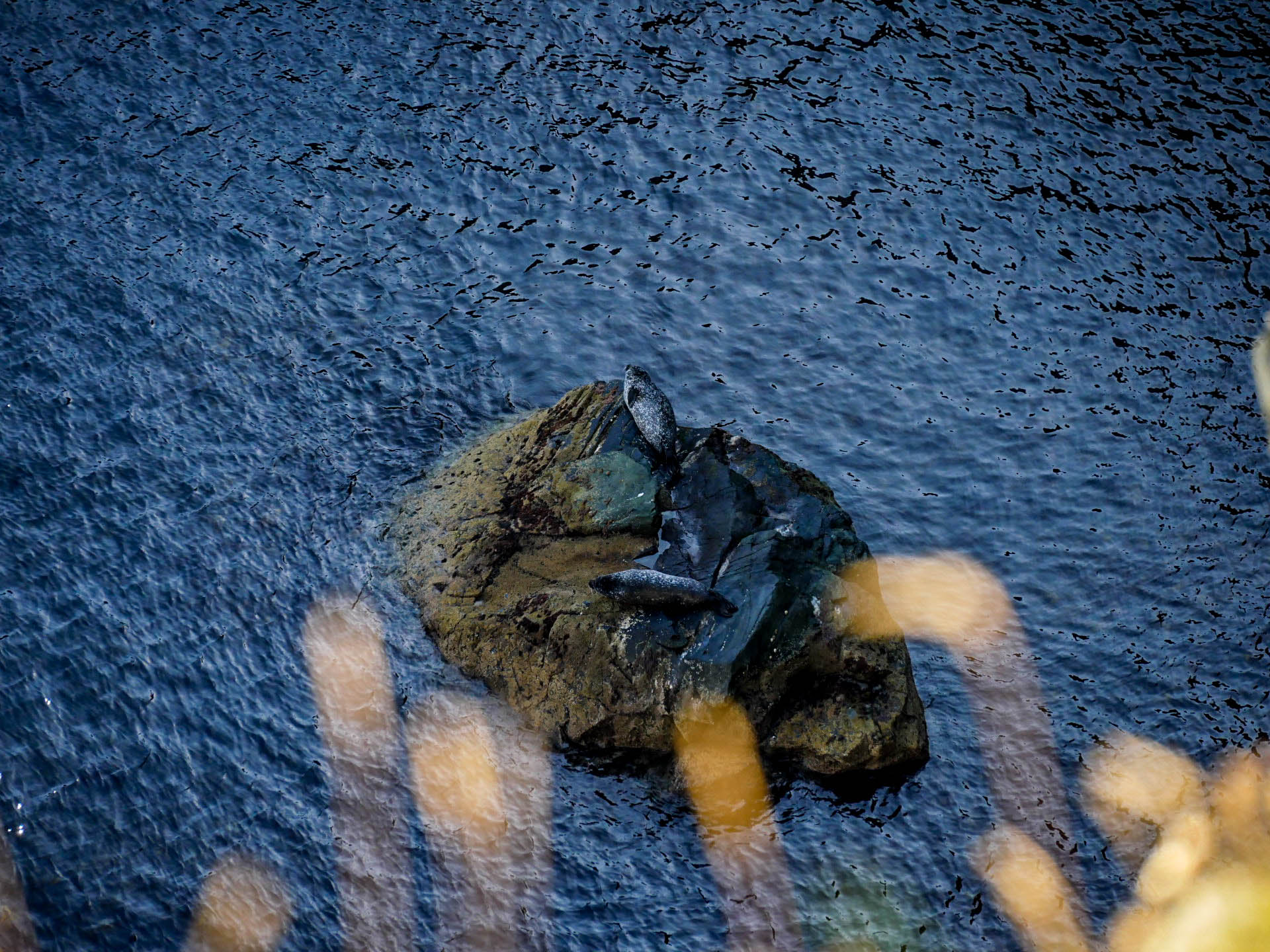 Pour couronner le tout, sur un rocher en contrebas, deux phoques se prélassent paresseusement. On ne sait pas trop pourquoi ils ont choisi de rester à l’ombre mais ils ont l’air de kiffer, nous regardant de temps en temps d’un air placide. Une vraie belle surprise !
