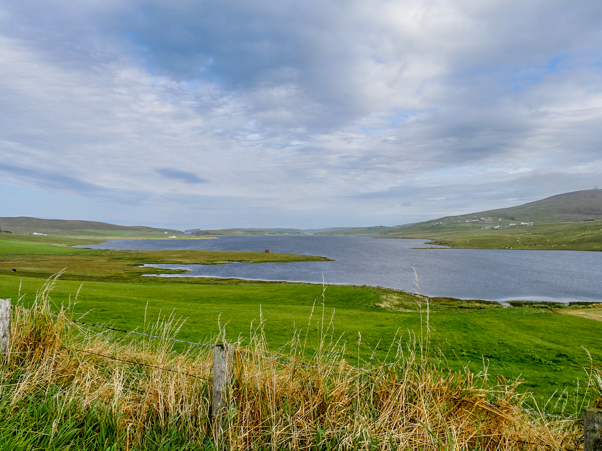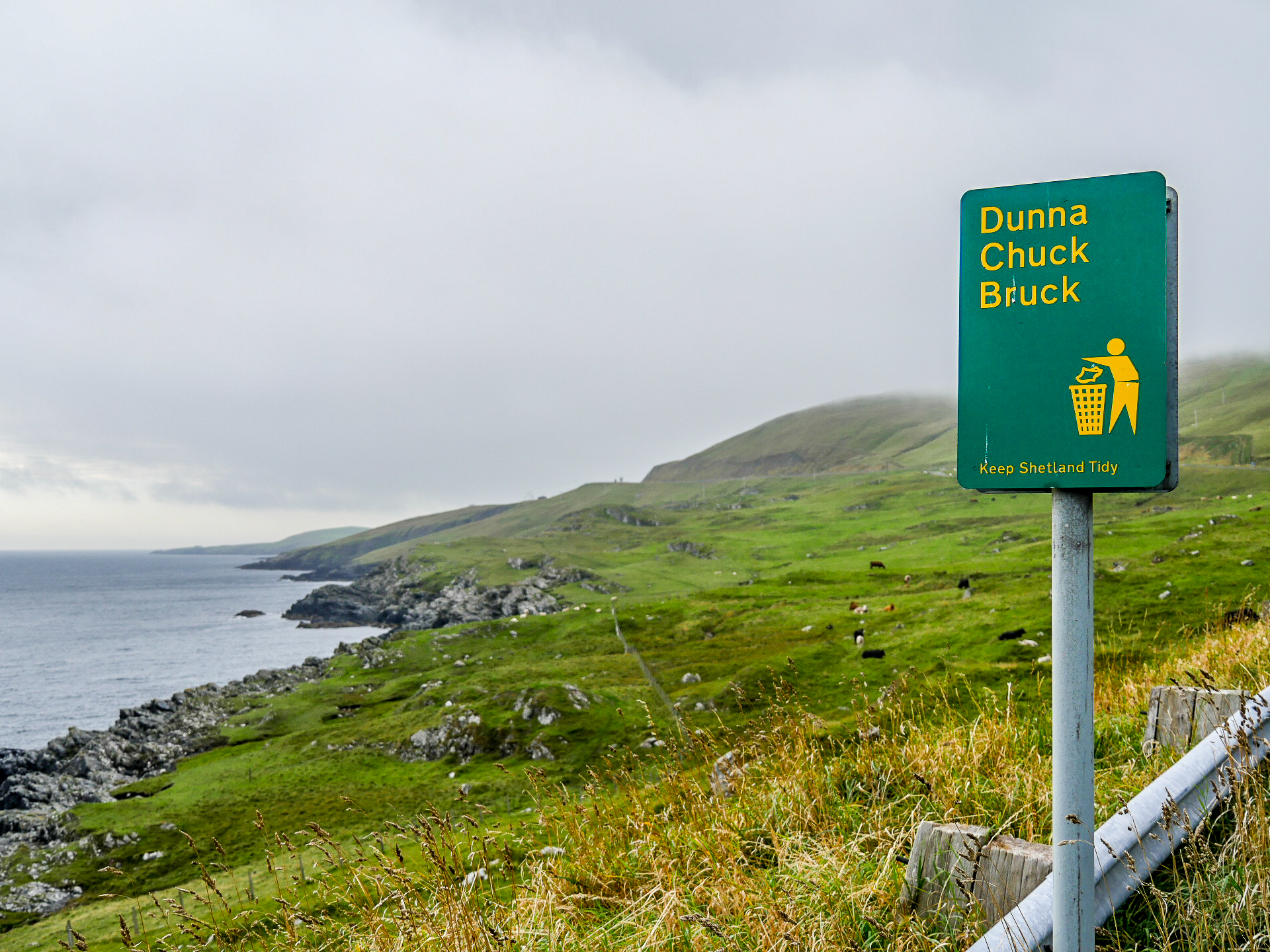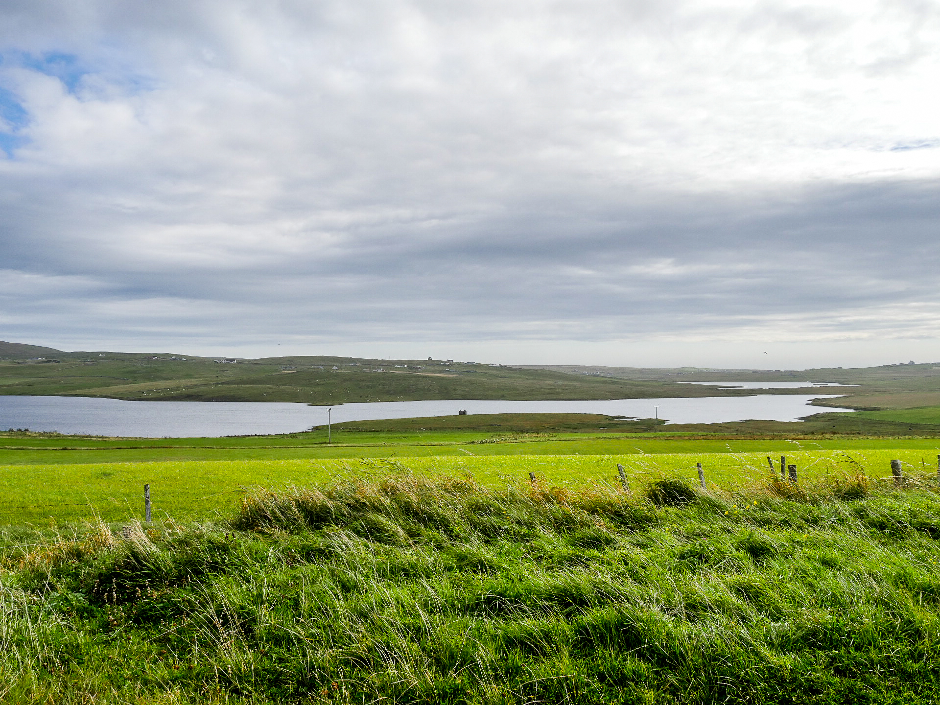 Il fallait bien que cela arrive ! Nous avons eu trop de chance avec la météo depuis le début de ce séjour aux Îles Shetland. Alors que nous allons rejoindre l’île de Yell et retourner vers Mainland, un ciel lourd et bas s’est déployé sur l’archipel. Soudain, nous voilà transportées en plein automne… et nous sommes justement le 1er septembre, c’est comme un drôle de signe du destin. Après un solide petit-déjeuner, on repartons manger du bitume, direction le sud, et prenons congé de Unst, qui restera une de nos étapes préférées.