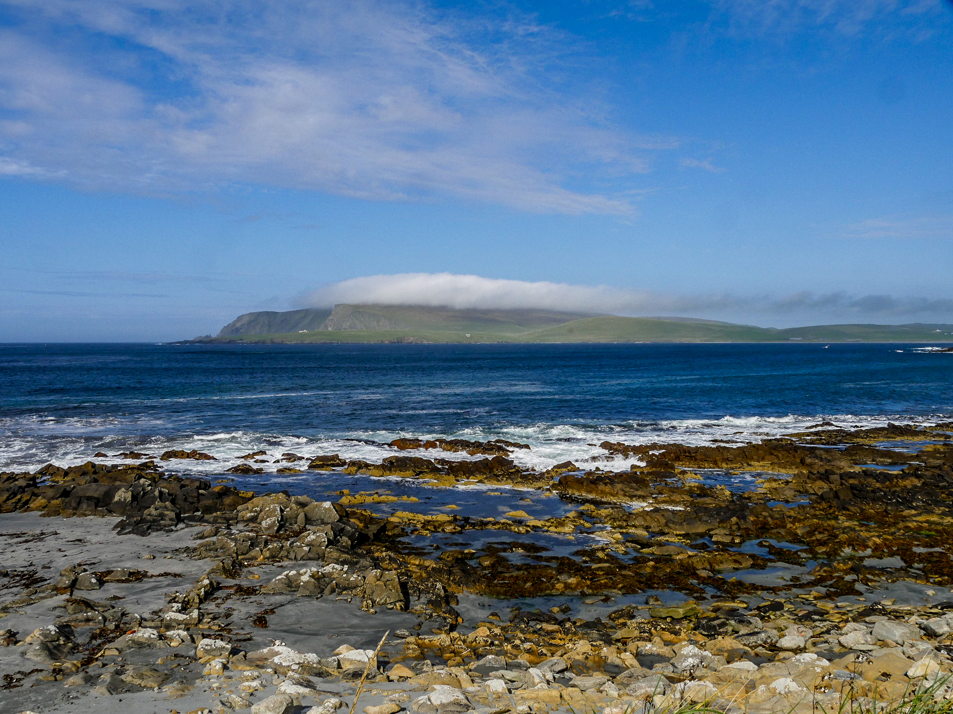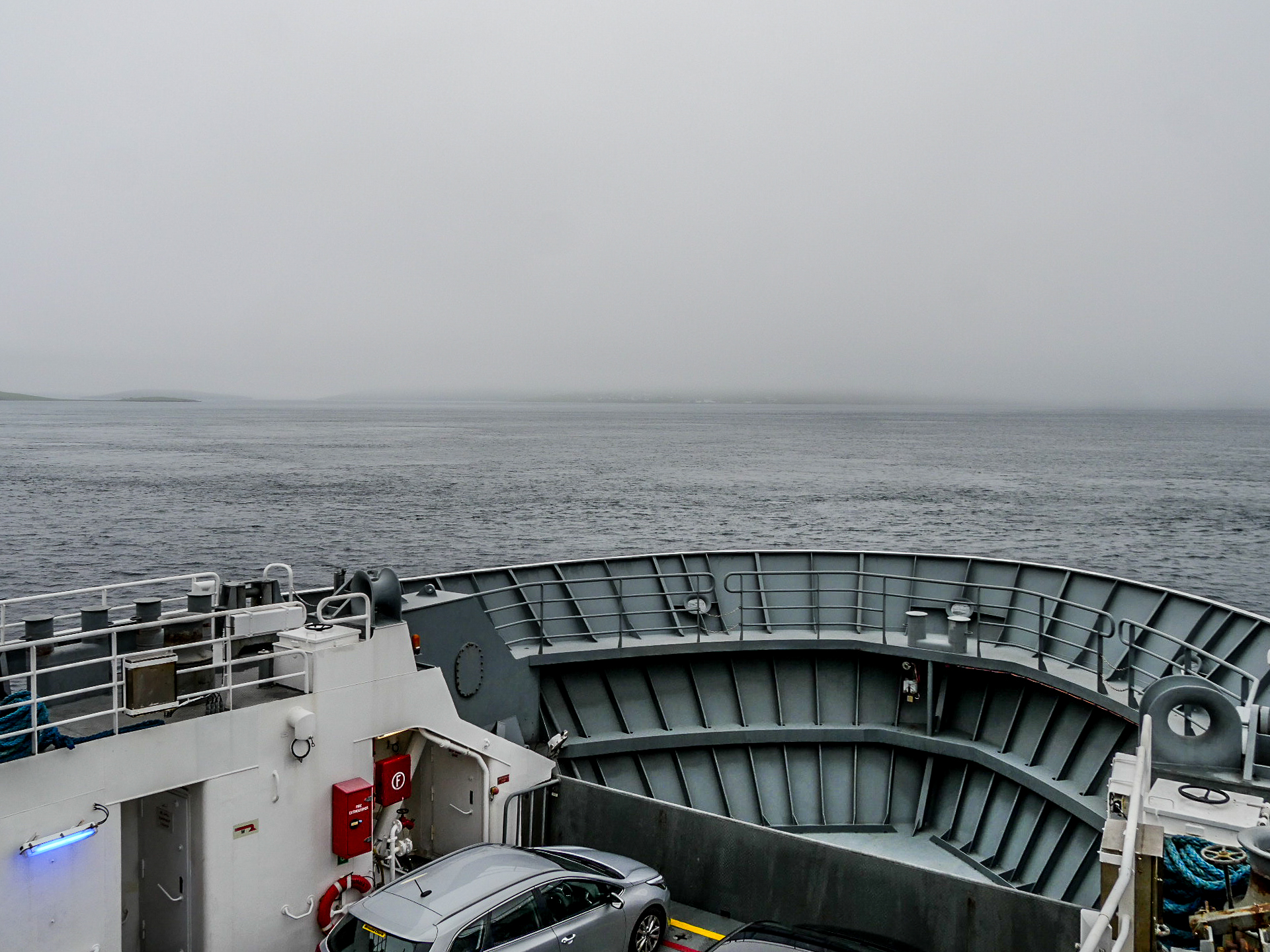 Il pleuvine doucement quand nous remontons à bords de Titinne et continuons vers le sud pour notre dernier arrêt à Yell : the Old Haa.