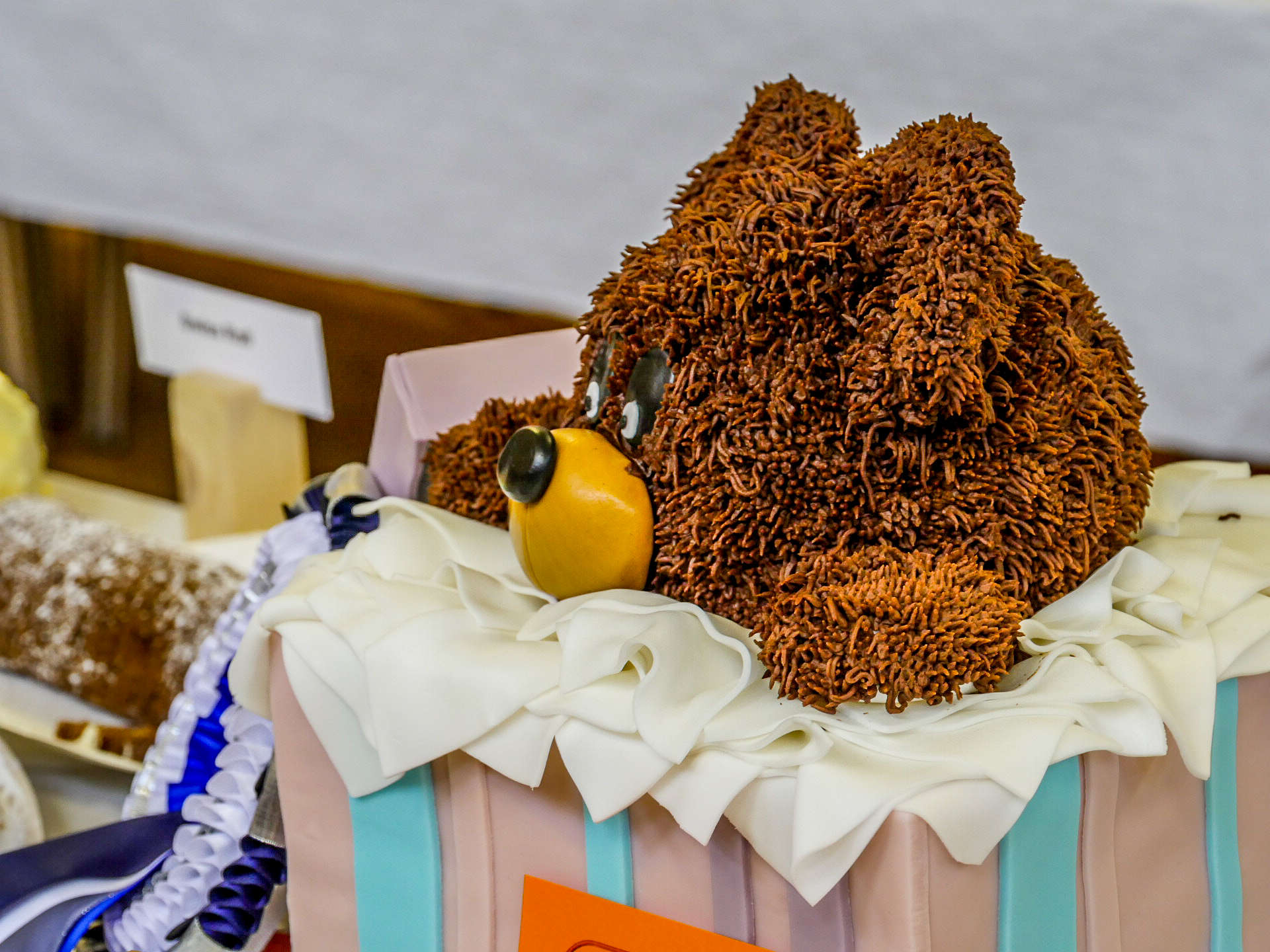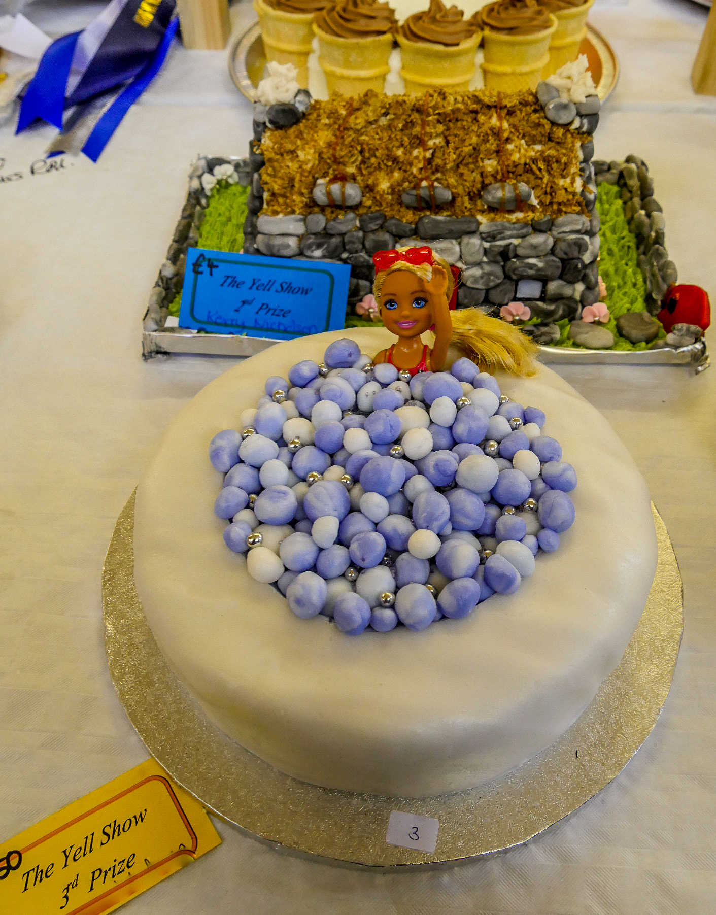 Le hall qui déchire tout, c’est celui de l’exposition de pâtisseries. Tout est classé par catégorie : cupcakes, gâteaux classiques, fantaisies… et là, on est dans un monde aussi coloré que rigolo. Les cupcakes rivalisent en montage mais la section la plus intéressante, c’est celle des gâteaux fantaisies où les pâtissiers/ères ont laissé court à leur plus folle imagination. Un nounours (recouvert de granulés de chocolat pour représenter les poils) qui sort de sa boite ? Check ! Une Barbie dans son jacuzzi (avec des billes de sucres pour figurer des bulles ? Check ! Une maison viking ? Encore check ! C’est simple, j’ai l’impression d’être en plein tournage du « Meilleur pâtissier », puissance mille.