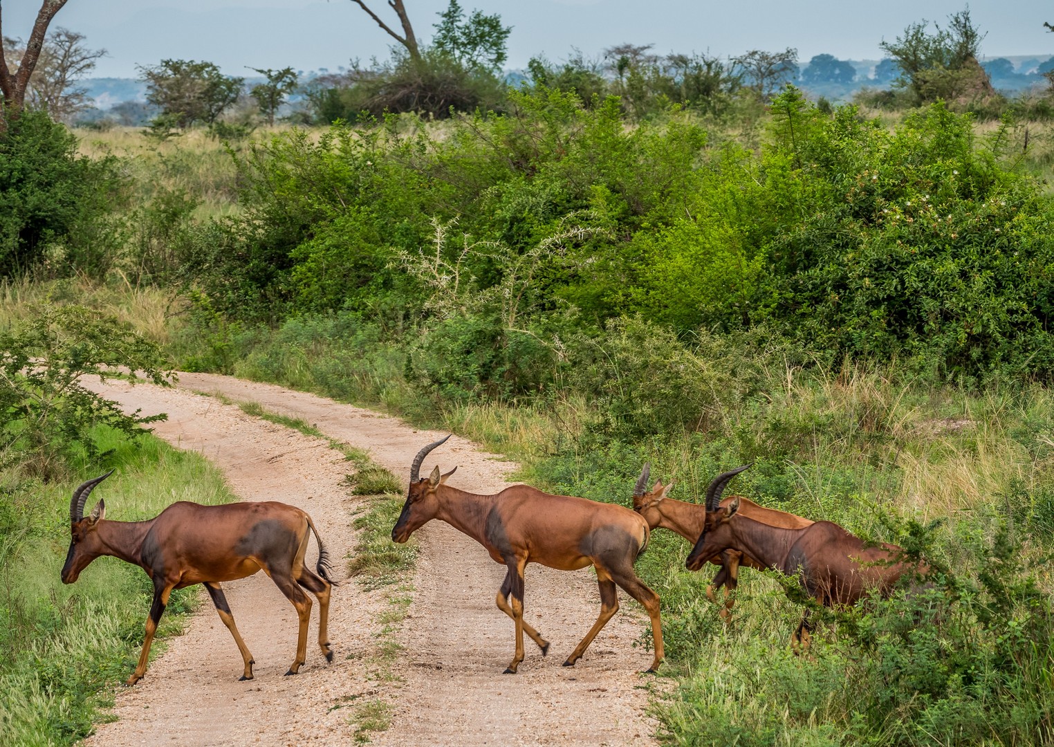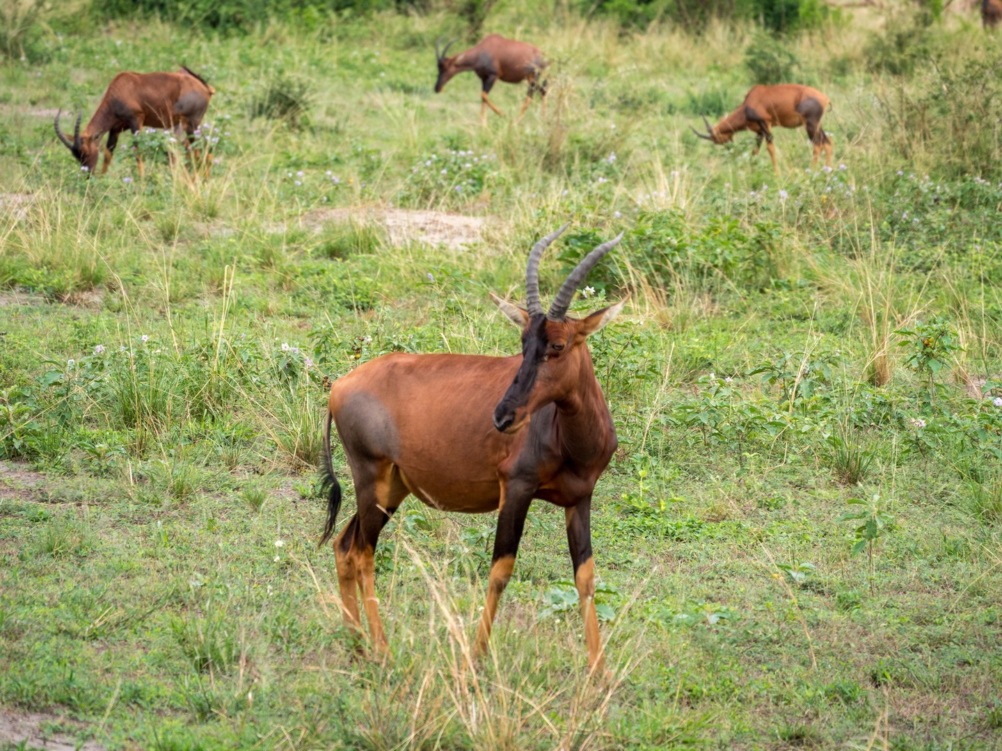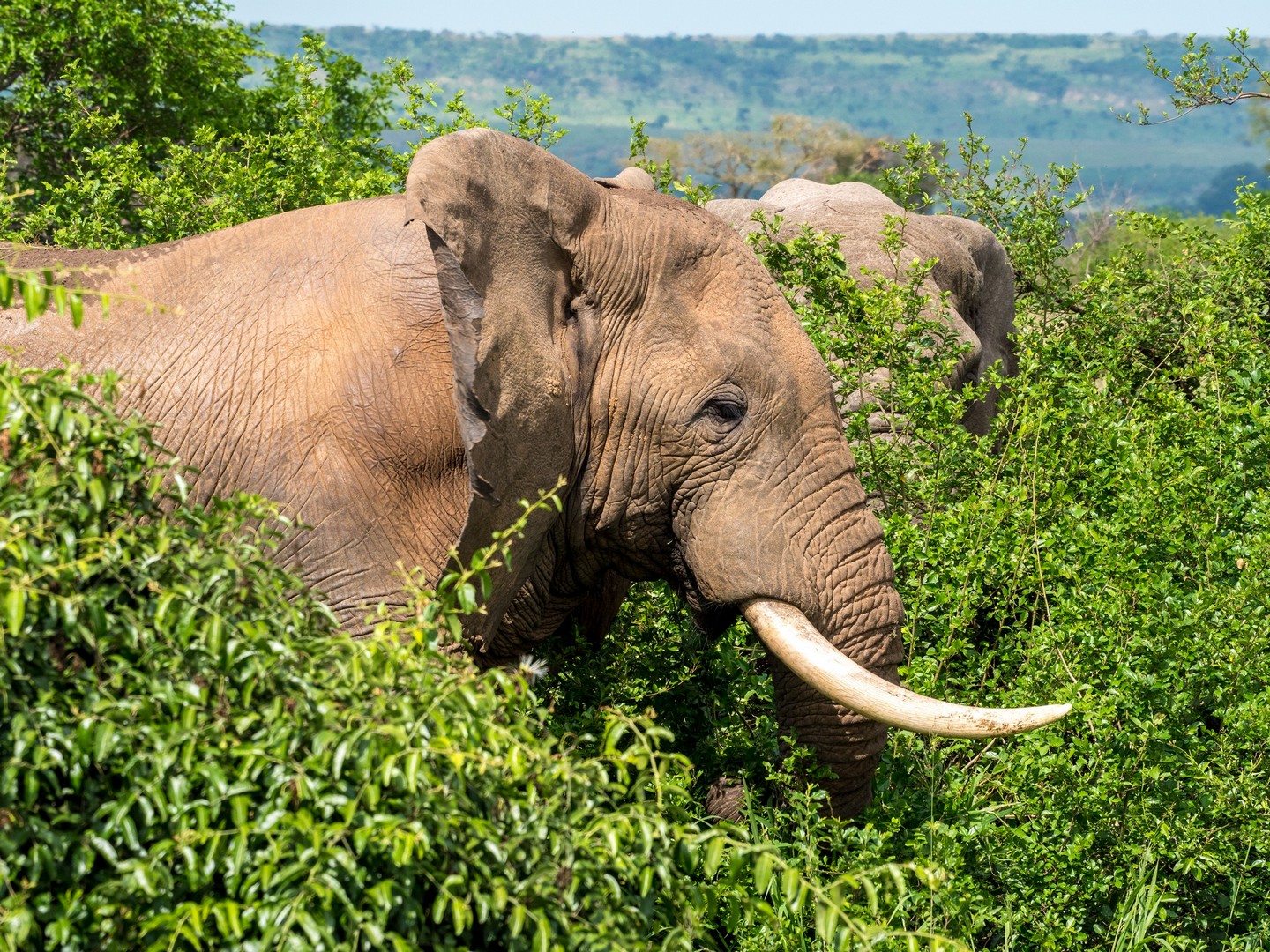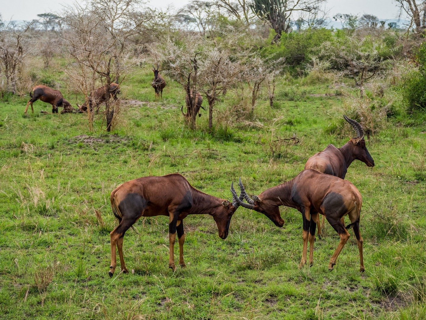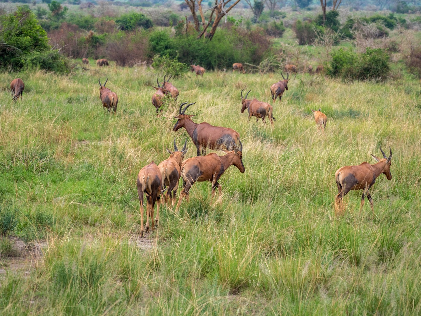 Nous voilà donc lancés en milieu de matinée mais nous allons très vite réaliser que la tâche ne sera pas facile. Comme la matinée est déjà bien avancée, la plupart des animaux ne se montrent pas vraiment. Nous croisons quelques troupeaux de buffles, ce qui est toujours impressionnant, mais pas grand chose d’autre. Chaque arbre aux branches étendues et tortueuses est scruté avec attention mais pas la moindre crinière à l’horizon ! Nous aurons quand même droit à un spectacle qu’on ne voit pas tous les jours… cela commence par un petit groupe d’éléphants qui déboule de derrière de gros buissons. Sauf que d’autres suivent, et suivent encore. Il doit y avoir pas moins de 40 pachydermes, ce qui est exceptionnel ! Le souffle coupé, nous les contemplons. En petits noyaux, mais toujours ensemble, ils se suivent les uns, les autres, marchant comme au ralenti. Protégeant les quelques jeunes entre deux adultes. Où vont-ils ? Seuls la tête du groupe le sait mais cette vision restera l’une des plus impressionnantes de ce voyage en Ouganda.