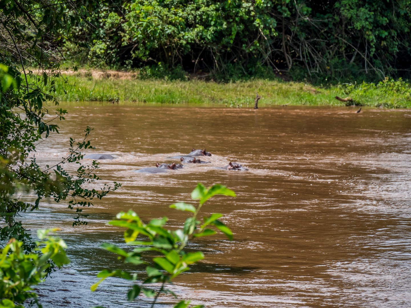 Michael notre guide principal, qui a rejoint notre jeep, nous dit finalement : « Bon, on va aller au Congo ». A voir nos mines sceptiques, il rétorque : « Je ne rigole pas ». Et nous faisons un arrêt près d’un camping le long d’une rivière qu’on pourrait facilement traverser à la nage, si ce n’était pour les petits groupes de hippos qu’il vaut mieux éviter : voilà, de l’autre côté, c’est la République Démocratique du Congo ! Ceux qui ont leurs téléphones allumés reçoivent même des messages de bienvenue de la part du réseau de GSM congolais !