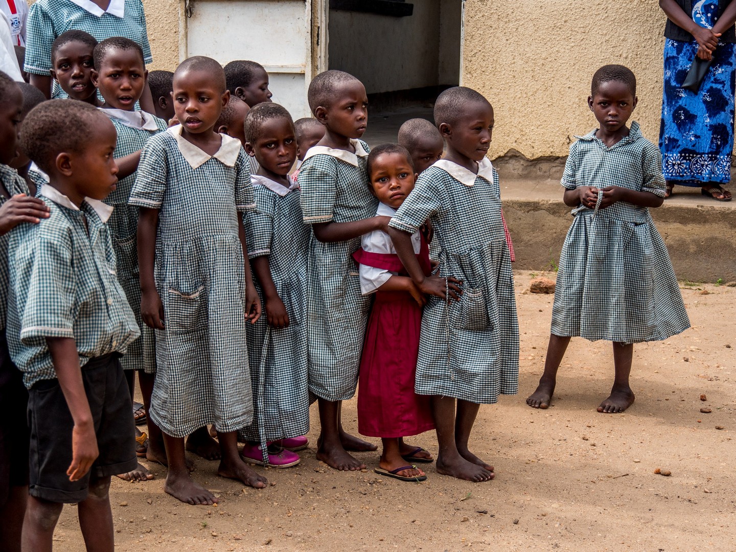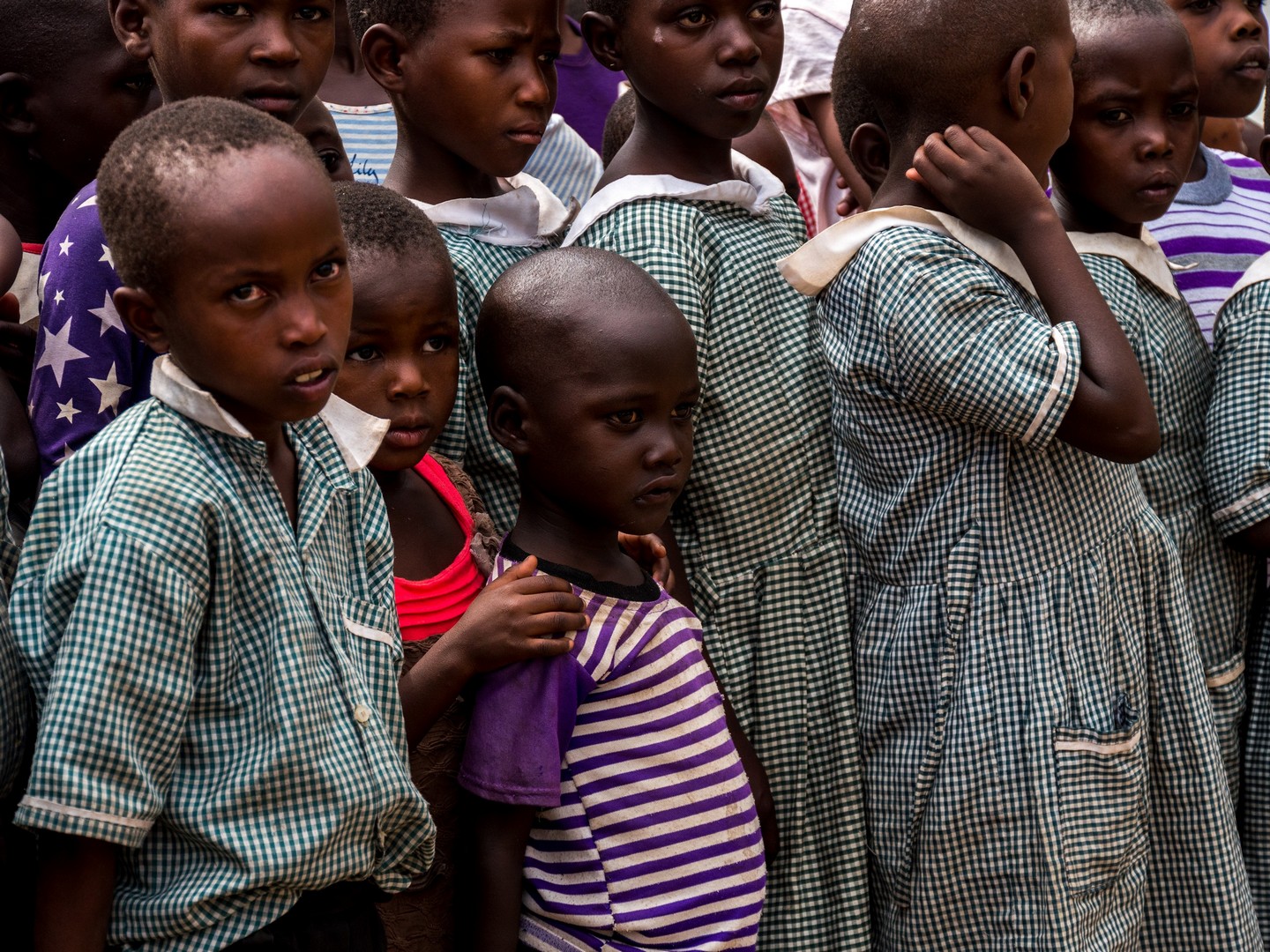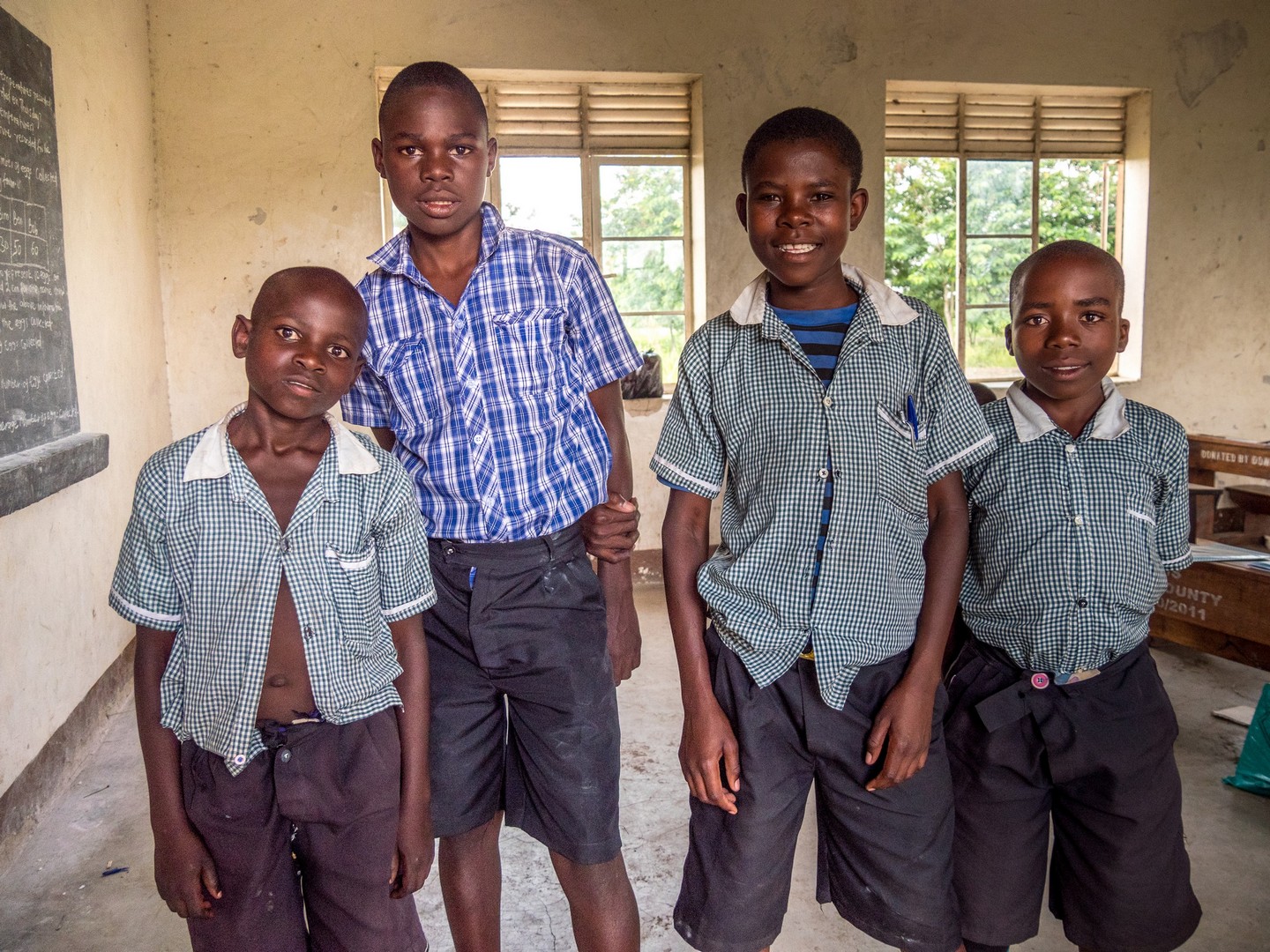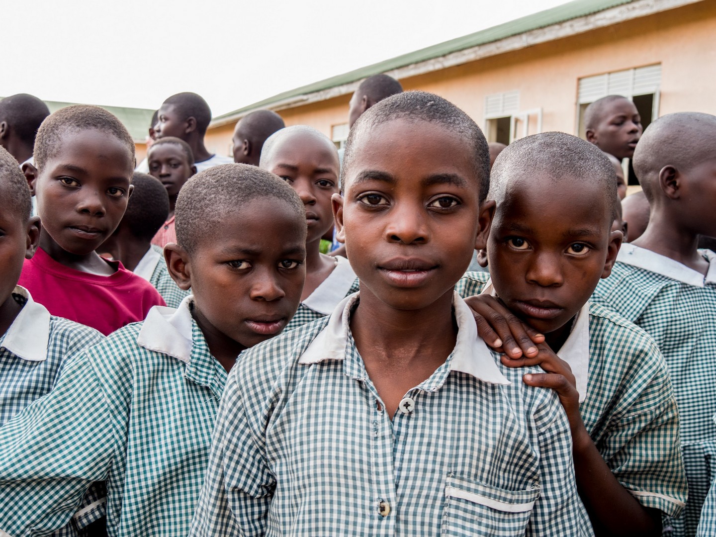 Autant le dire tout de suite, nous étions un peu mal à l’aise devant une scène qui semblait parfaitement répétée. J’ai l’impression de me retrouver dans les cases de Tintin au Congo, lorsque le petit reporter débarque à l’école tenue par les missionnaires. Le moment le plus gênant étant celui où le directeur donnera le signal aux enfants d’aller vers nous. Nous voilà soudain entourés de bambins, mi-timides, mi-curieux, qui ne savent pas trop comment nous appréhender. Ça tombe bien, nous non plus ! Mais je m’avance et j’y vais. Je pose des questions, sur leurs noms, la classe dans laquelle ils sont, ce qu’ils apprennent, de temps en temps, quand je ne regarde pas, je sens une petite main qui vient toucher mes cheveux. Ca me fait sourire. Ici, petits garçons comme petites filles portent les cheveux TRES courts. J’imagine que mes cheveux un peu longs et un peu blonds sont un objet de curiosité. Enfin, je leur demande si je peux voir la classe et me voilà emmenée fissa à l’intérieur avec un groupe de garçons un peu plus âgés, ceux qui sont en dernière classe de primaire. Les plus grands s’apprêtent à passer l’examen de fin de primaire. « Et c’est pas facile ! » me déclare l’un des garçons. Ni une, ni deux, on me place la dernière interro devant les yeux. Voyons comment l’Occidentale va s’en sortir. Disons que sur trois questions très afrio-centrées, elle n’avait la réponse que pour une. Les gamins rigolent de bon cœur. « T’en connais pas beaucoup sur l’Afrique, hein ? » J’admets… mais j’apprends ! De temps en temps, un gamin fait un saut pour me toucher les cheveux en riant. Je sors mon smartphone, et je leur montre Bruxelles. Regards étonnés. C’est grand où je vis. Oui, mais pas tellement, moins grand que Kampala. Mais pour eux, cela reste abstrait. Kampala est loin.