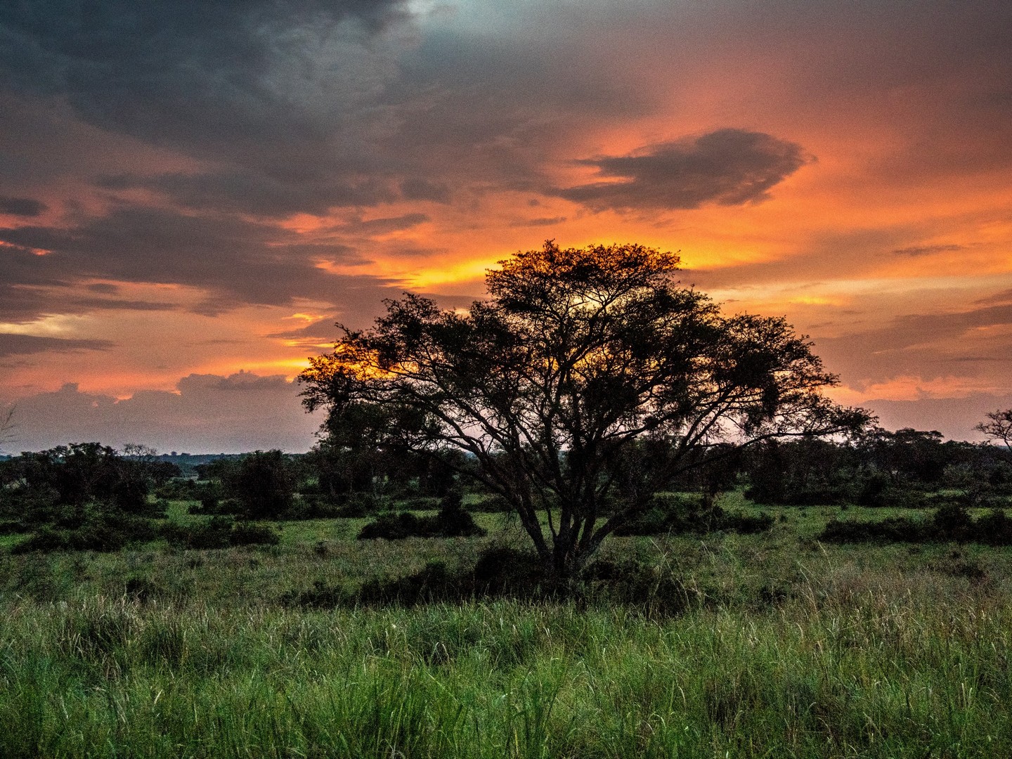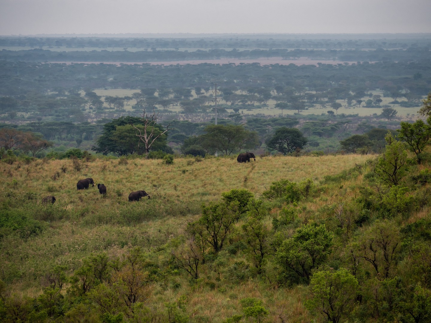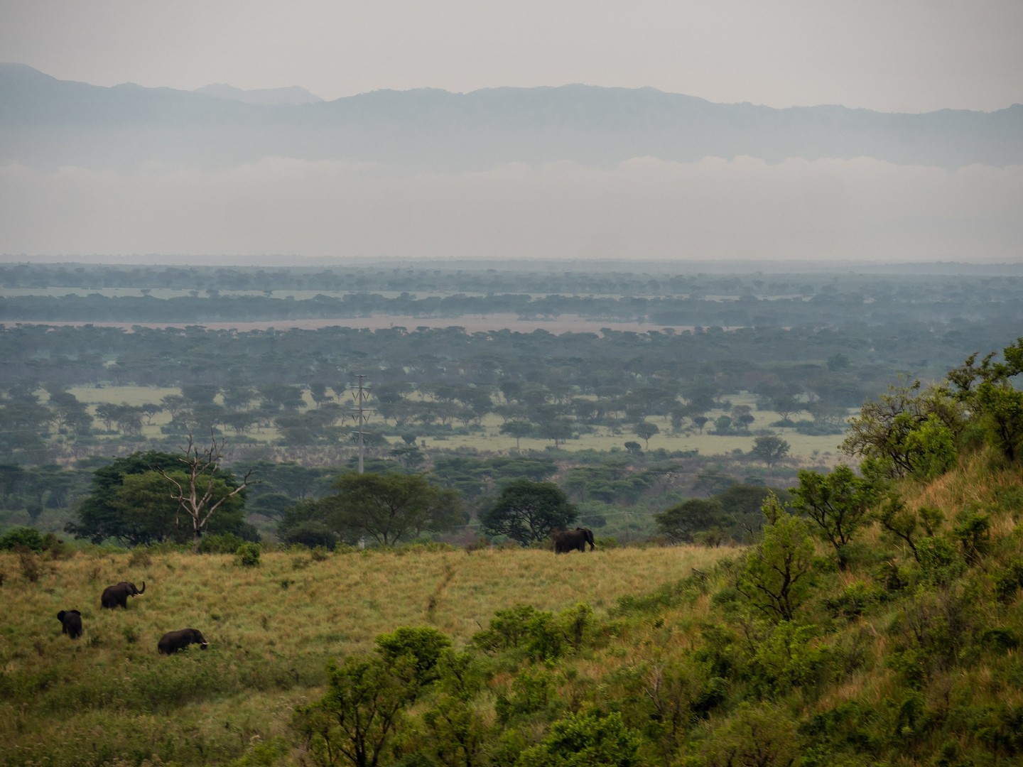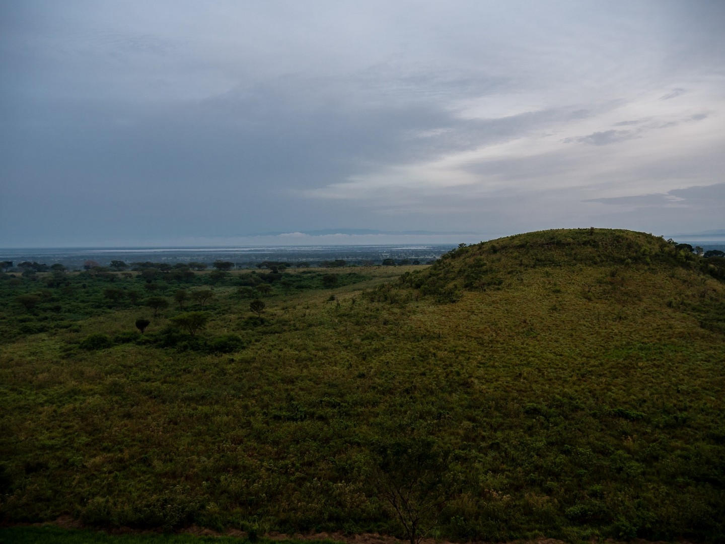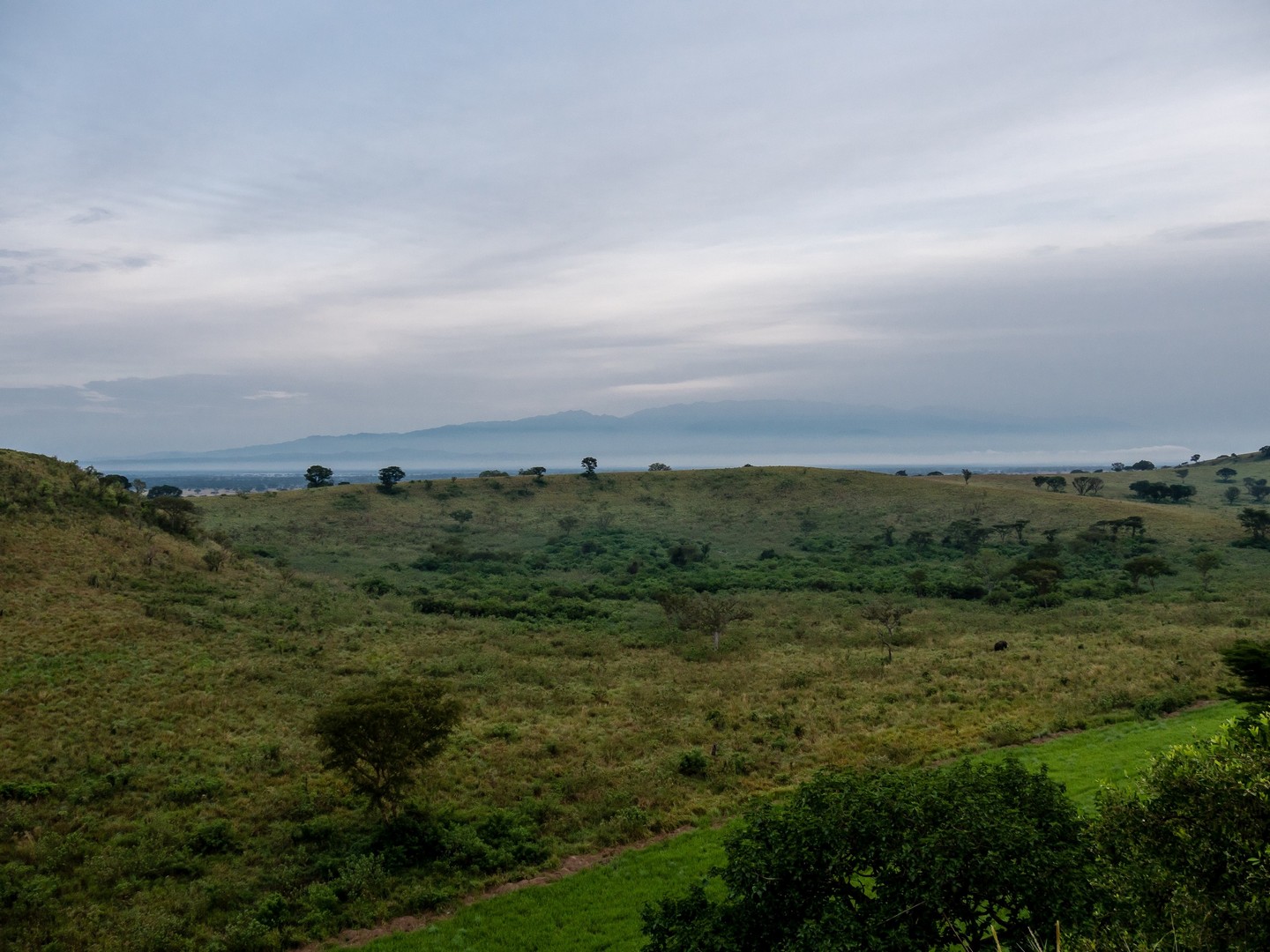 Ce secteur de Queen Elizabeth est un drôle de paysage, fait de savane herbeuse, de quelques arbres et entourée par les Rwenzori Mountains, qui forment comme une grande barrière mais comme nous allons le découvrir, c’est bien plus divers que çà ! Des collines, de lacs, des marais et des rivières traversent le parc. En fin d’après-midi, nous voilà arrivé à notre point de chute pour la nuit : le Mazike Lodge, bien installé sur son petit promontoire surplombant la savane. Mais j’y reviendrai en fin d’article.